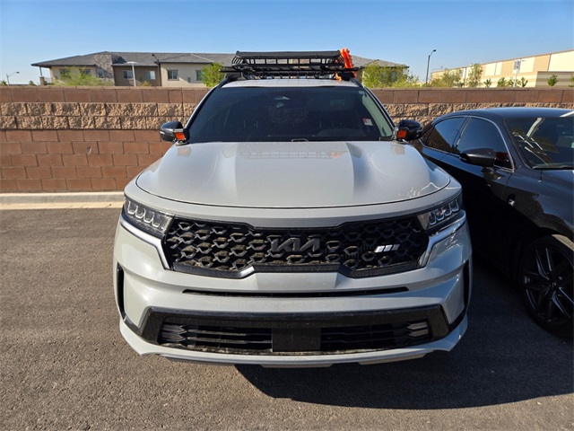 CARFAX One-Owner.Odometer is 1493 miles below market average!22/29 City/Highway MPGWolf Gray 2023 Kia Sorento EX FWD 8-Speed DCT 2.5L I4 DGI Turbocharged DOHC 16V LEV3-ULEV70 281hpIf you don't drive here, you can't save here!Price may not include recon fee. 3.316 Axle Ratio, 3rd row seats: split-bench, 4-Wheel Disc Brakes, 6 Speakers, ABS brakes, Air Conditioning, Alloy wheels, AM/FM radio: SiriusXM, Apple CarPlay & Android Auto, Auto High-beam Headlights, Auto-dimming Rear-View mirror, Automatic temperature control, Brake assist, Bumpers: body-color, Carpet Floor Mats, Delay-off headlights, Driver door bin, Driver vanity mirror, Dual front impact airbags, Dual front side impact airbags, Electronic Stability Control, Emergency communication system, Exterior Parking Camera Rear, Four wheel independent suspension, Front anti-roll bar, Front Bucket Seats, Front Center Armrest, Front dual zone A/C, Front fog lights, Front reading lights, Fully automatic headlights, Heated door mirrors, Heated Front Bucket Seats, Heated front seats, Illuminated entry, Knee airbag, Leather Shift Knob, Leather steering wheel, Low tire pressure warning, Navigation System, Occupant sensing airbag, Outside temperature display, Overhead airbag, Overhead console, Panic alarm, Passenger door bin, Passenger vanity mirror, Power door mirrors, Power driver seat, Power Liftgate, Power passenger seat, Power steering, Power windows, Radio data system, Radio: AM/FM Audio System, Rear air conditioning, Rear anti-roll bar, Rear reading lights, Rear window defroster, Rear window wiper, Remote keyless entry, Roof rack: rails only, Security system, Smart Key w/ Push Button and Remote Start, Speed control, Speed-sensing steering, Split folding rear seat, Spoiler, Steering wheel mounted audio controls, SynTex Artificial Leather Seat Trim, Tachometer, Telescoping steering wheel, Tilt steering wheel, Traction control, Trip computer, Turn signal indicator mirrors, Variably intermittent wipers, and Wheels: 7.5J x 18" Machine-Finished Alloy.