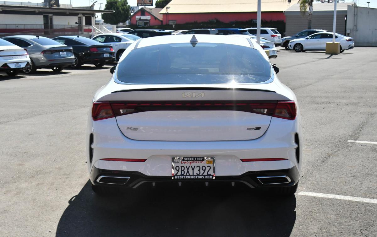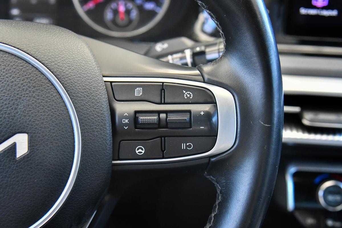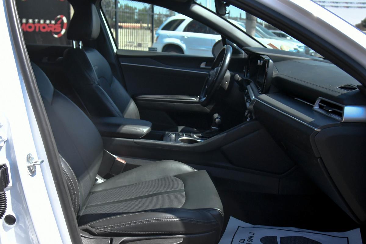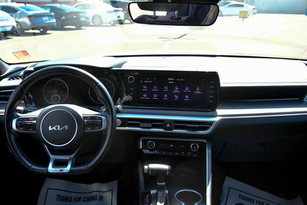 Scores 37 Highway MPG and 27 City MPG! This Kia K5 delivers a Intercooled Turbo Regular Unleaded I-4 1.6 L/98 engine powering this Automatic transmission. GLACIAL WHITE PEARL, CARPETED FLOOR MATS, CARGO MAT.*This Kia K5 Features the Following Options *BLACK, CLOTH/LEATHERETTE SEAT TRIM -inc: GT-Line logo, Window Grid Antenna, Wheels: 7.5J x 18 Gloss Black Machined Finish Alloy, Variable Intermittent Wipers, Urethane Gear Shifter Material, Turn-By-Turn Navigation Directions, Trunk Rear Cargo Access, Trip Computer, Transmission: 8-Speed Automatic -inc: drive mode select system, Transmission w/Sequential Shift Control.