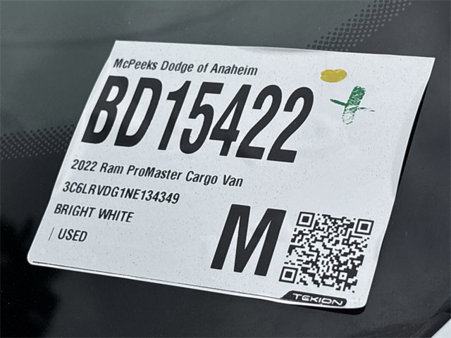 Recent Arrival! Odometer is 32743 miles below market average! CARFAX One-Owner. INTERIOR & EXTERIOR PROFESSIONALLY DETAILED FOR DELIVERY, MCPEEK CHRYSLER DODGE JEEP RAM FAMILY OWNED AND OPERATED SINCE 1961 !!!!!.Bright White Clearcoat 2022 Ram ProMaster 2500 High Roof FWD 9-Speed 948TE AutomaticGet Ready to Reach New Heights with the 2022 Ram ProMaster 2500 High Roof! Designed for maximum versatility and cargo capacity, the Ram ProMaster 2500 High Roof offers an expansive interior that’s perfect for businesses, delivery services, and tradespeople. Its tall roof provides gainful maneuverability for tall equipment and easy access, making hard-to-reach places a breeze. Powered by a reliable engine, this van delivers impressive performance, durability, and efficiency to keep your business moving. With front-wheel drive and a spacious, configurable cargo area, the ProMaster 2500 High Roof is built to handle the biggest jobs with ease. Maximize your workspace. Save time. Get more done — with the 2022 Ram ProMaster 2500 High Roof. McPeek's Dodge of Anahiem 1221 S. Auto Center Drive Anahiem, CA 92806 714-262-4902.