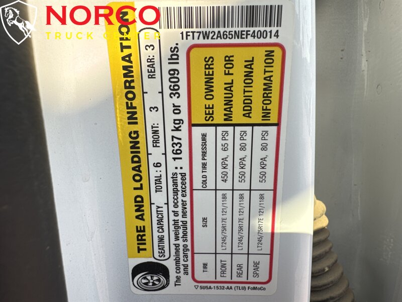 INSTALLED FEATURES: Air filtration, Front air conditioning, Front air conditioning zones: single, Airbag deactivation: passenger switch, Front airbags: dual, Side airbags: front, Side curtain airbags: front / rear, Antenna type: mast, Auxiliary audio input: Bluetooth / USB, Radio: AM/FM / voice operated, Speed sensitive volume control, Total speakers: 4, ABS: 4-wheel, Braking assist, Electronic brakeforce distribution, Front brake type: ventilated disc, Power brakes, Rear brake type: ventilated disc, Armrests: front center, Door sill trim: scuff plate, Floor material: rubber/vinyl, Steering wheel trim: urethane, Assist handle: front / rear, Cupholders: front, Overhead console: front, Power outlet(s): 12V front / USB front / USB-C front, Power steering, Reading lights: front / rear, Rearview mirror: manual day/night, Steering wheel: tilt and telescopic, Steering wheel mounted controls: audio / multi-function / phone / voice control, Storage: accessory hook / door pockets, Vanity mirrors: passenger, Door handle color: black, Front bumper color: black, Grille color: black, Mirror color: black, Pickup bed light, Rear bumper color: black, Tailgate: lift assist / removable, Window trim: black, Connected in-car apps: app marketplace integration, Infotainment: SYNC, Infotainment screen size: 4.2 in., Clock, Digital odometer, External temperature display, Gauge: oil pressure / tachometer / transmission temperature, Instrument cluster screen size: 2.3 in., Powertrain hour meter, Warnings and reminders: low fuel level / maintenance due, Headlights: auto delay off / auto on/off / halogen / quad headlights / wiper activated, Side mirror adjustments: manual / manual folding / manual telescoping, Towing mirrors, Alternator: 157 amps, Battery: maintenance-free, Battery rating: 650 CCA, Battery saver, Automatic hazard warning lights, Camera system: rearview, Child safety door locks, Child seat anchors: LATCH system, Crumple zones: front, Impact sensor: alert system / door unlock / post-collision safety system, Programmable safety key, Rearview monitor: in dash, Emergency locking retractors: front / rear, Front seatbelts: 3-point, Rear seatbelts: 3-point, Seatbelt pretensioners: front, Seatbelt warning sensor: front, Driver seat manual adjustments: 6 / lumbar / reclining, Front headrests: 2 / adjustable, Front seat type: 40-20-40 split bench, Passenger seat manual adjustments: 4 / reclining, Rear headrests: 3 / adjustable, Rear seat folding: folds up / split, Rear seat type: 60-40 split bench, Upholstery: vinyl, Anti-theft system: vehicle immobilizer, Hill holder control, Roll stability control, Stability control, Traction control, Trailer stability control, Front shock type: gas, Front spring type: coil, Front stabilizer bar, Front suspension classification: independent, Front suspension type: twin I-beam, Rear shock type: gas, Rear spring type: leaf, Rear suspension classification: solid live axle, Rear suspension type: multi-leaf, Electronic messaging assistance: voice operated / with read function, Hands-free phone call integration: voice operated, Smart device app compatibility: FordPass Connect, Smart device app function: engine start / lock operation / maintenance status / vehicle location, Wi-Fi: hotspot, Wireless data link: Bluetooth, Tow hooks: front, Trailer hitch, Trailer wiring: 4-pin / 7-pin, Spare tire mount location: underbody, Spare tire size: full-size, Spare wheel type: steel, Tire Pressure Monitoring System, Wheels: painted steel, Front wipers: variable intermittent, Solar-tinted glass: front