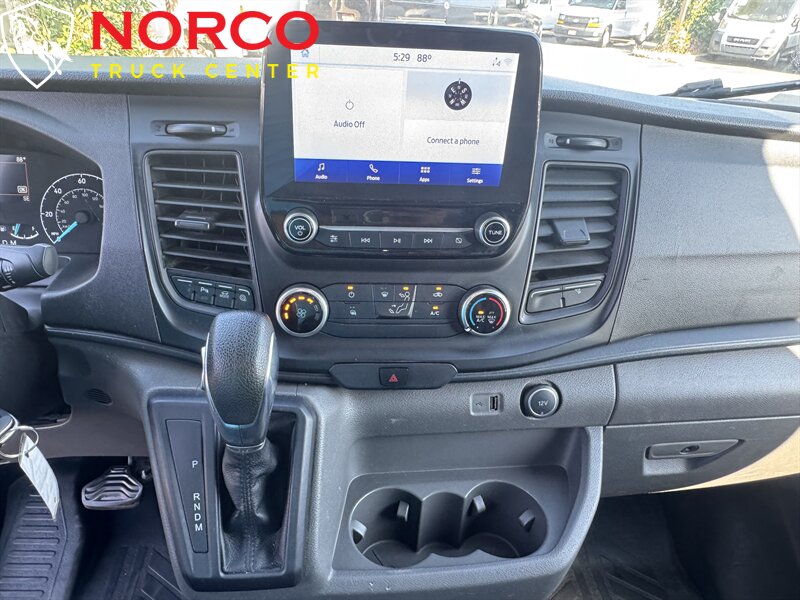 INSTALLED FEATURES: Front air conditioning, Front air conditioning zones: single, Airbag deactivation: passenger switch, Front airbags: dual, Side airbags: front, Side curtain airbags: front, Antenna type: mast, Auxiliary audio input: Bluetooth / USB, Radio: AM/FM, Total speakers: 4, ABS: 4-wheel, Braking assist, Cornering brake control, Electronic brakeforce distribution, Electronic parking brake: auto off, Emergency braking preparation, Front brake type: ventilated disc, Power brakes, Rear brake type: ventilated disc, Armrests: dual front, Floor material: rubber/vinyl, Shift knob trim: urethane, Steering wheel trim: urethane, Assist handle: front / rear, Capless fuel filler system, Cargo area light, Center console: front console with storage, Cupholders: front, Multi-function remote: keyless entry / panic alarm / trunk release, One-touch windows: 1, Power outlet(s): 12V front / USB front, Power steering: variable/speed-proportional, Reading lights: front, Steering wheel: tilt and telescopic, Steering wheel mounted controls: audio / multi-function / phone, Storage: door pockets, Sun visors, Body side moldings: black, Door handle color: black, Front bumper color: black, Grille color: black / black surround, Mirror color: black, Rear bumper color: black, Rear trunk/liftgate: barn, Side door type: passenger-side manual sliding, Window trim: black, Infotainment screen size: 4 in., Clock, Digital odometer, Gauge: tachometer, Trip odometer, Warnings and reminders: coolant temperature warning / low fuel level / low oil pressure, Headlights: auto delay off / auto high beam dimmer / auto on/off / halogen, Side mirror adjustments: manual folding / power, Alternator: 250 amps, Auxiliary transmission fluid cooler, Battery: maintenance-free, Battery rating: 610 CCA, OEM roof height: high, Automatic emergency braking: front / front pedestrian, Camera system: rearview, Driver attention alert system, Impact sensor: door unlock / post-collision safety system, Lane deviation sensors, Pre-collision warning system: audible warning / pedestrian detection / visual warning, Rearview monitor: in dash, Front seatbelts: 3-point, Seatbelt warning sensor: front, Driver seat manual adjustments: 2 / reclining, Front headrests: 2 / adjustable, Front seat type: bucket, Passenger seat manual adjustments: 2 / reclining, Upholstery: vinyl, Anti-theft system: vehicle immobilizer, Power door locks: auto-locking, Crosswind stabilization, Hill holder control, Roll stability control, Stability control, Traction control, Trailer stability control, Front shock type: gas, Front spring type: coil, Front stabilizer bar, Front struts: MacPherson, Front suspension classification: independent, Front suspension type: lower control arms, Rear shock type: gas, Rear spring type: leaf, Rear suspension classification: solid live axle, Rear suspension type: multi-leaf, Hands-free phone call integration, Smart device app compatibility: FordPass Connect, Smart device app function: engine start / lock operation / maintenance status / vehicle location, Wi-Fi: hotspot, Wireless data link: Bluetooth, Spare tire mount location: underbody, Spare tire size: full-size, Spare wheel type: steel, Tire Pressure Monitoring System, Wheel covers: partial, Wheels: painted steel, Front wipers: rain sensing / variable intermittent, Power windows: safety reverse, Solar-tinted glass