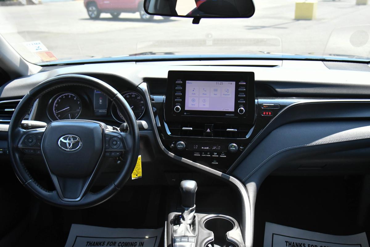 Boasts 39 Highway MPG and 28 City MPG! This Toyota Camry boasts a Regular Unleaded I-4 2.5 L/152 engine powering this Automatic transmission. Variable Intermittent Wipers, Urethane Gear Shifter Material, Trunk Rear Cargo Access.*This Toyota Camry Features the Following Options *Trip Computer, Transmission: 8-Speed Direct Shift ECT-i Automatic -inc: sequential shift mode and paddle shifters, Transmission w/Driver Selectable Mode, Toyota Safety Sense (TSS) 2.5+, Tires: 235/45R18 AS, Tire Pressure Monitor System (TPMS) Tire Specific Low Tire Pressure Warning, Strut Front Suspension w/Coil Springs, Steel Spare Wheel, Single Stainless Steel Exhaust w/Chrome Tailpipe Finisher, Side Impact Beams.