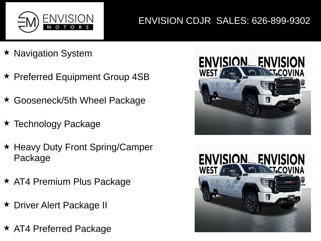 WE SPECIALIZE IN ALL CREDIT PROFILES! See what we can do for you! Call to find out (626) 899-9302.Clean CARFAX.Odometer is 16006 miles below market average! 10-Speed Automatic, 4WD, Jet Black With Kalahari Accents Leather, 12-Volt Rear Auxiliary Power Outlet, 120-Volt Bed Mounted Power Outlet, 120-Volt Instrument Panel Power Outlet, 2 USB Ports (First Row), 2 USB Ports Inside Console, 2-Speed Active Transfer Case, 20" Machined Aluminum Wheels, 2nd Row Dual USB Charge-Only Ports, 4.2" Diagonal Color Display Driver Info Center, 8" Driver Information Center, AT4 Preferred Package, AT4 Premium Plus Package, Auto-Dimming Inside Rearview Mirror w/Camera, Automatic Emergency Braking, Bed View Camera w/2 Trailer Camera Provisions, Bose Premium 7 Speaker Sound System, Compass Located In Instrument Cluster, Deep-Tinted Glass, Driver Alert Package I, Driver Alert Package II, Electric Rear-Window Defogger, Electrical Lock Control Steering Column, Floor-Mounted Center Console, Following Distance Indicator, Forward Collision Alert, GMC Connected Access Capable, Gooseneck/5th Wheel Package, Gooseneck/5th Wheel Prep Package, HD Rear Vision Camera, HD Surround Vision w/2 Trailer View Camera Provisions, Heated 2nd Row Outboard Seats, Heated Driver & Front Outboard Passenger Seats, Heavy Duty Front Spring/Camper Package, Hill Descent Control, Hitch Guidance w/Hitch View, Hitch Package (LPO), In-Vehicle Trailering System App, Integrated Trailer Brake Controller, IntelliBeam Automatic High Beam On/Off, Keyless Open & Start, Lane Change Alert w/Side Blind Zone Alert, Lane Departure Warning System, LED Cargo Area Lighting, LED Smoked Amber Roof Marker Lamps, Manual Tilt-Wheel/Telescoping Steering Column, Multicolor 15" Diagonal Head-Up Display, Navigation System, Off-Road High Clearance Step (LPO), OnStar & GMC Connected Services Capable, Painted Blk Surround Grille w/High Gloss Blk Mesh, Perimeter Lighting, Power Door Locks, Power Front Passenger Windows w/Express Up/Down, Power Front Windows w/Driver Express Up/Down, Power Rear Windows w/Express Down, Power Sliding Rear Window w/Defogger, Power Sunroof, Preferred Equipment Group 4SB, Prem Front Floor Liners w/Removable Carpet Insert, Prem Rear Floor Liners w/Removable Carpet Insert, ProGrade Trailering System, Radio: AM/FM w/Prem GMC Infotainment System & Navi, Rear Cross Traffic Alert, Rear Wheelhouse Liners, Red Recovery Hooks, Remote Vehicle Starter System, Safety Alert Seat, Spray-On Pickup Bed Liner w/AT4 Logo, Steering Wheel Audio Controls, Technology Package, Ultrasonic Front & Rear Park Assist, Unauthorized Entry Theft-Deterrent System, Universal Home Remote, Ventilated Driver & Front Passenger Seats, Wi-Fi Hotspot Capable, Wireless Charging, Wireless Phone Projection, X31 Off-Road Package.Summit White2023 GMC Sierra 3500HD AT4 4WD 10-Speed Automatic Duramax 6.6L V8 Turbodiesel**********All Pricing and Advertised Prices for any/all vehicles offered for sale does not include dealer installed accessories which can be purchased for an additional cost.********** The Factory Rebates may not be available on this vehicle if you elect to take advantage of a Special Alternative APR or Special Lease program. Some Factory Rebates are California Resident specific and may vary for residents of other states. NO sales to Dealers, Brokers or Exporters. For out of state purchase, customers must be present to purchase. If shipping is required, dealership must facilitate; no exceptions. Please contact us for special Multi-Vehicle or Fleet pricing. Prices are plus government fees and taxes, any finance charges, $85 documentary fee, $29 electronic registration fee, any emission testing charge and $1.75 per new tire state tire fee. *** We make every effort to provide accurate information, but please verify before purchasing. Leasing & financing available on approved credit. Trade-ins accepted. Subject to prior sale.