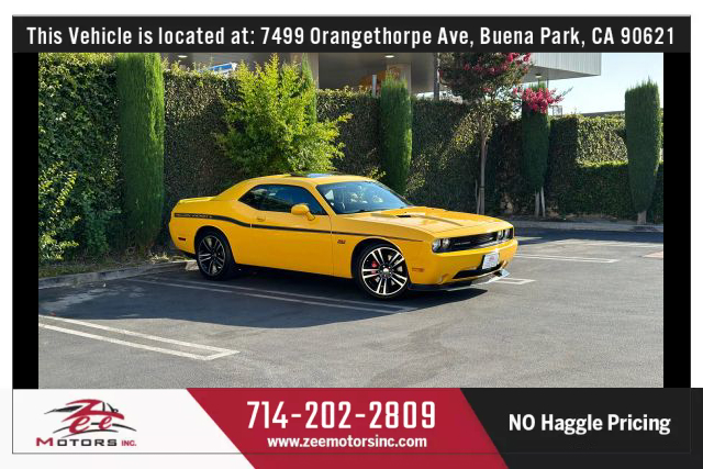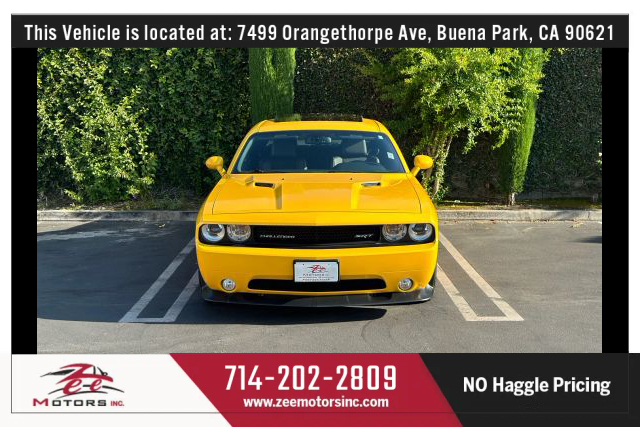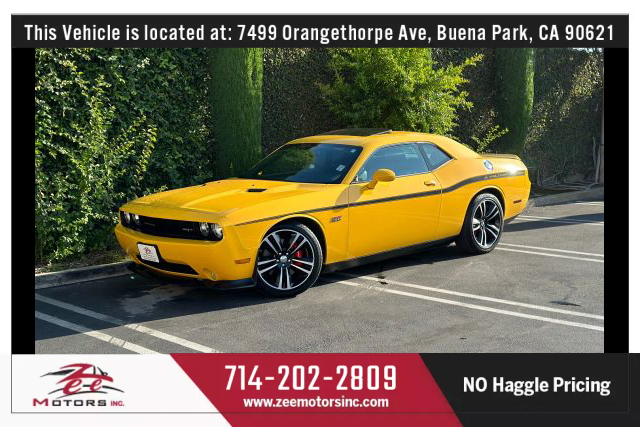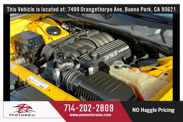 THIS VEHICLE IS LOCATED AT OUR BUENA PARK LOCATION: 7479 ORANGETHORPE AVE, BUENA PARK CA 90621. Please Call us at 657-255-4555 or 714-202-2809 or email us at BUENAPARK@ZEEMOTORSINC.COM To Check Availability. In 2012, only 1,310 Dodge Challenger SRT8 392 Yellow Jackets were produced. Of those, 641 were equipped with a 6-speed manual transmission, making them particularly rare* 1-OWNER* Clean Title. * Clean Carfax. * No Accidents.* Very Well Maintained Vehicle, Service records available on CARFAX. * Very Clean Inside and Outside.* Passed Safety inspection and Smog Check.Attention to all buyers: All special prices are cash price and it does not include sales tax, license and registration fee, documentation fee, smog fee or any dealer add-ons / accessories. Additional financing charges may apply on approved credit. While great effort is made to ensure the accuracy of the information provided on this site, errors do occur so please verify information with a team member. This is easily done by contacting us via phone or email (Call or Text 657-346-8544) **** THIS VEHCILE IS EQUIPPED WITH ANTI-THEFT DEVICE AND GPS TRACKING SYSTEM ****All our Vehicles are sold as is where is with no warranty expressed written or implied. The Seller shall not be responsible for the correct description authenticity genuineness or defects herein and makes no warranty in connection therewith. No allowance or set a side will be made on account of any incorrectness imperfection defect or damage. Any descriptions or representations are for identification purposes only and are not to be construed as a warranty of any type. It is the responsibility of the buyer to have thoroughly inspected the vehicle and to have satisfied himself or herself as to the condition and value and to buy based upon that judgement solely. The seller shall and will make every reasonable effort to disclose any known defects associated with this vehicle at the buyer's request prior to the close of sale. Seller assumes no responsibility for any repairs regardless of any oral statements about the vehicle.