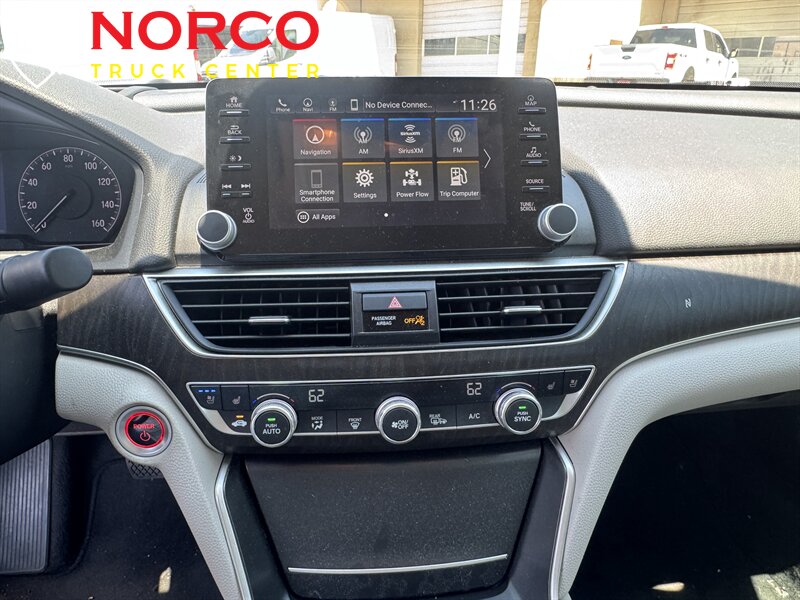 INSTALLED FEATURES: Air filtration, Front air conditioning: automatic climate control, Front air conditioning zones: dual, Rear vents: second row, Airbag deactivation: occupant sensing passenger, Front airbags: dual, Knee airbags: dual front, Side airbags: front, Side curtain airbags: front / rear, Antenna type: diversity / mast, Auxiliary audio input: Bluetooth / iPod/iPhone / USB, Internet radio app: Pandora, Premium brand, Radio: AM/FM / HD radio / touch screen display / voice operated, Radio data system, Satellite radio: SiriusXM, Speed sensitive volume control, Subwoofer: 1, Total speakers: 9, Watts: 450, ABS: 4-wheel, Braking assist, Cornering brake control, Electronic brakeforce distribution, Electronic parking brake: auto off, Front brake type: ventilated disc, Power brakes, Rear brake type: disc, Regenerative braking system, Armrests: rear center with cupholders / rear folding, Dash trim: simulated wood, Door trim: simulated wood, Floor mat material: carpet, Floor material: carpet, Floor mats: front / rear, Shift knob trim: leather, Steering wheel trim: leather, Adaptive cruise control, Adaptive stop and go cruise control: semi-automatic, Ambient lighting, Assist handle: front / rear, Autonomous lane guidance: lane centering, Capless fuel filler system, Cargo area light, Center console: front console with armrest and storage, Courtesy lights: door, Cupholders: front / rear, Memorized settings: 2 driver / driver seat, Multi-function remote: panic alarm / proximity entry system / trunk release / vehicle and key memory, One-touch windows: 2, Power outlet(s): 12V front, Power steering: variable/speed-proportional, Power windows: lockout button, Push-button start, Reading lights: front, Rearview mirror: auto-dimming, Remote engine start, Steering wheel: tilt and telescopic, Steering wheel mounted controls: audio / cruise control / multi-function / phone / voice control, Storage: cargo tie-down anchors and hooks / door pockets / front seatback / sunglasses holder, Universal remote transmitter: Homelink - garage door opener, Vanity mirrors: dual illuminating, Wireless charging station: front, Active grille shutters, Door handle color: body-color with chrome accents, Exhaust: dual tip / integrated, Exhaust tip color: chrome, Front bumper color: body-color, Grille color: chrome, Mirror color: body-color, Rear bumper color: body-color, Window trim: chrome, Connected in-car apps: Google POIs / Google search, Infotainment: HondaLink, Infotainment screen size: 8 in., Smartphone integration: Android Auto / Apple CarPlay, Clock, Compass, Digital odometer, External temperature display, Fuel economy display: MPG / range, Gauge: tachometer, Head-up display, Instrument cluster screen size: 7 in., Multi-function display, Powertrain hour meter, Trip odometer, Warnings and reminders: low battery / low fuel level / maintenance due, Daytime running lights: LED, Front fog lights: LED, Headlights: auto delay off / auto high beam dimmer / auto on/off / LED / wiper activated, Taillights: LED, Side mirror adjustments: manual folding / power / reverse gear tilt, Side mirrors: heated / integrated turn signals, Auto start/stop, Battery: maintenance-free, Battery saver, Drive mode selector, Electric motor battery type: lithium ion, EV battery capacity: 1.3 kWh, Moonroof / Sunroof: anti-trapping / one-touch open/close / power glass / sliding sunshade / tilt/slide, Automatic emergency braking: front / front pedestrian, Blind spot safety: sensor/alert, Camera system: rear multi-view, Child safety door locks, Child seat anchors: LATCH system, Cross traffic alert: rear, Crumple zones: front, Driver attention alert system, Emergency interior trunk release, Impact absorbing seats: dual front, Lane deviation sensors, Lane keeping assist, Parking sensors: front / rear, Pre-collision warning system: audible warning / pedestrian detection / visual warning, Rearview monitor: in dash, Traffic sign recognition, Emergency locking retractors: front / rear, Front seatbelts: 3-point, Rear seatbelts: 3-point, Seatbelt force limiters: front, Seatbelt pretensioners: front, Seatbelt warning sensor: front, Driver seat: heated / ventilated, Driver seat power adjustments: 12 / 4-way power lumbar / height / reclining, Front headrests: 2 / adjustable, Front seat type: bucket, Passenger seat: heated / ventilated, Passenger seat power adjustments: 4 / reclining, Rear headrests: 3 / adjustable, Rear seat: heated, Rear seat folding: split, Rear seat type: 60-40 split bench, Upholstery: leather-trimmed, Anti-theft system: alarm / vehicle immobilizer, Power door locks: anti-lockout / auto-locking, Hill holder control, Stability control, Traction control, Driver adjustable suspension: ride control, Front shock type: gas, Front spring type: coil, Front stabilizer bar: diameter 27 mm, Front struts: MacPherson, Front suspension classification: independent, Front suspension type: lower control arms, Rear shock type: gas, Rear spring type: coil, Rear stabilizer bar: diameter 17 mm, Rear suspension classification: independent, Rear suspension type: multi-link, Suspension control: electronic, Driver assistance app: roadside assistance, Electronic messaging assistance: with read function, Hands-free phone call integration: voice operated, Navigation data: real time traffic / send destination to vehicle, Navigation system: touch screen display / voice operated, Satellite communications: voice guided directions, Smart device app compatibility: HondaLink, Smart device app function: engine start / lock operation / maintenance scheduling / maintenance status / vehicle location, Wi-Fi: hotspot, Wireless data link: Bluetooth, Spare tire kit: inflator kit / tire sealant, Tire Pressure Monitoring System, Wheels: aluminum alloy, Front wipers: rain sensing / variable intermittent, Laminated glass: acoustic windshield, Power windows: safety reverse, Window defogger: rear