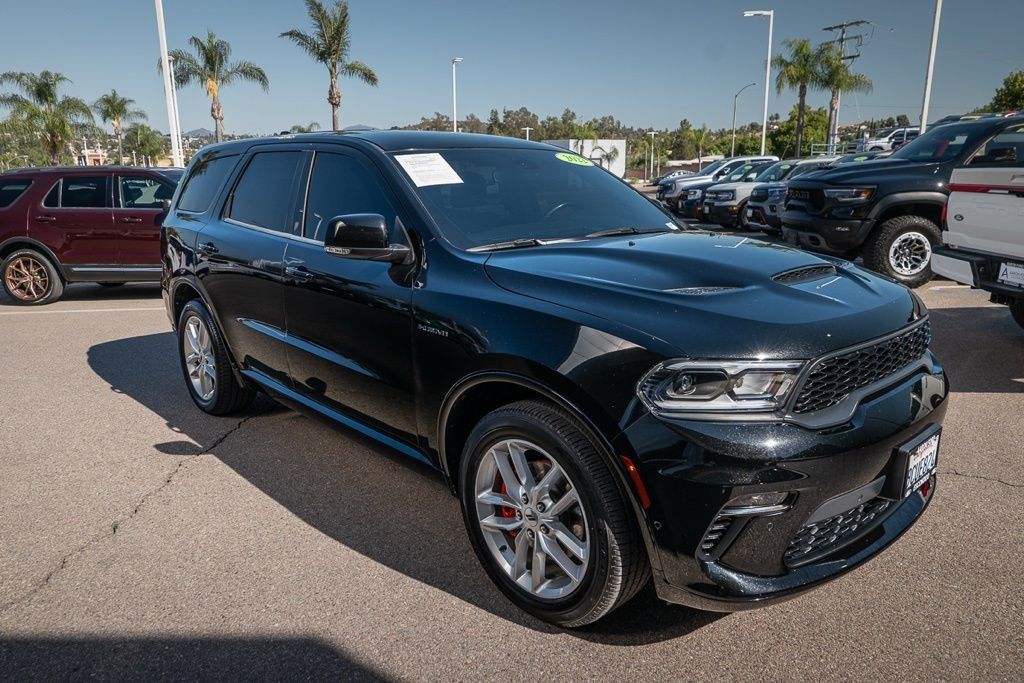 DB Black Crystal Clearcoat 2022 Dodge Durango R/T AWD 8-Speed Automatic HEMI 5.7L V8 Multi Displacement VVT AWD, 9 Speakers, Alloy wheels, Brake assist, Front dual zone A/C, Heated front seats, Heated rear seats, Navigation system: TomTom, Panic alarm, ParkView Rear Back-Up Camera, Power Liftgate, Quick Order Package 22S R/T, Radio: Uconnect 5 Nav w/10.1" Display, Rain sensing wipers, Spoiler, Wheels: 20" x 8.0" Fine Silver.Odometer is 27041 miles below market average!