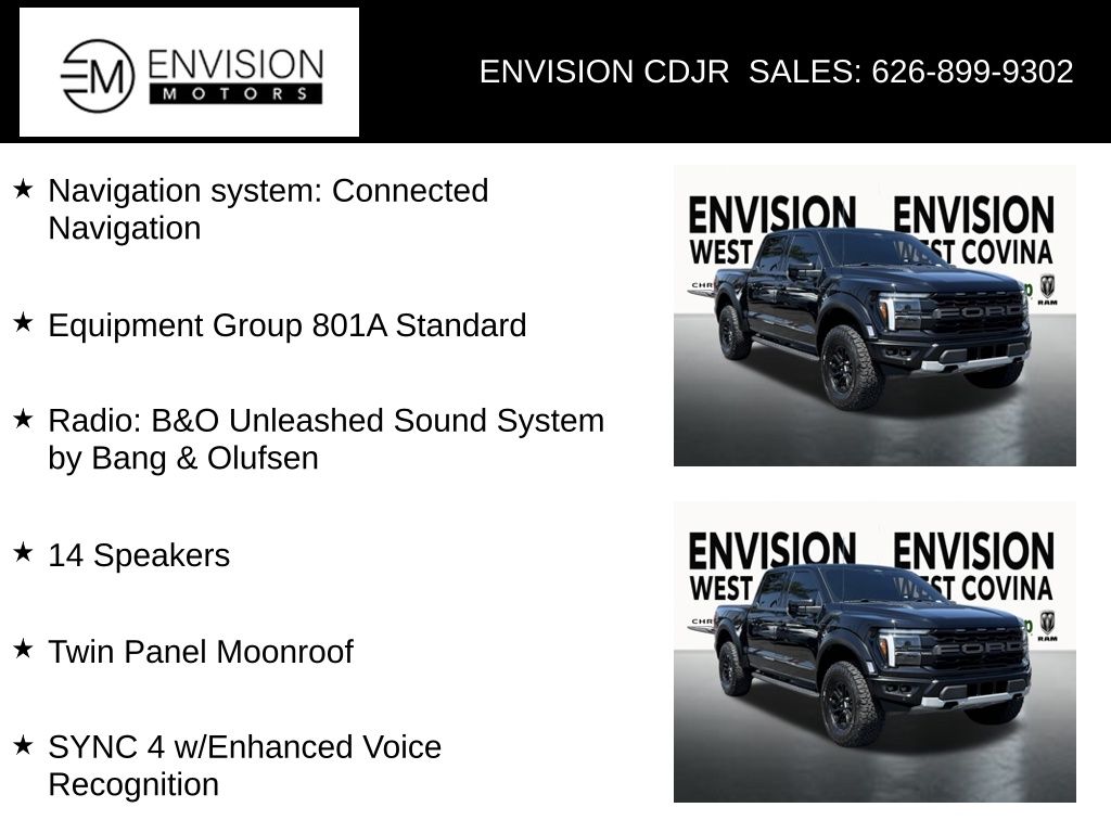 WE SPECIALIZE IN ALL CREDIT PROFILES! See what we can do for you! Call to find out (626) 899-9302.Odometer is 3499 miles below market average! 4WD, 14 Speakers, Equipment Group 801A Standard, Navigation system: Connected Navigation, Radio: B&O Unleashed Sound System by Bang & Olufsen, SYNC 4 w/Enhanced Voice Recognition, Twin Panel Moonroof.Agate Black Metallic2024 Ford F-150 Raptor 4WD 10-Speed Automatic 3.5L V6 EcoBoost**********All Pricing and Advertised Prices for any/all vehicles offered for sale does not include dealer installed accessories which can be purchased for an additional cost.********** The Factory Rebates may not be available on this vehicle if you elect to take advantage of a Special Alternative APR or Special Lease program. Some Factory Rebates are California Resident specific and may vary for residents of other states. NO sales to Dealers, Brokers or Exporters. For out of state purchase, customers must be present to purchase. If shipping is required, dealership must facilitate; no exceptions. Please contact us for special Multi-Vehicle or Fleet pricing. Prices are plus government fees and taxes, any finance charges, $85 documentary fee, $29 electronic registration fee, any emission testing charge and $1.75 per new tire state tire fee. *** We make every effort to provide accurate information, but please verify before purchasing. Leasing & financing available on approved credit. Trade-ins accepted. Subject to prior sale.