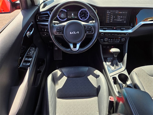 Recent Arrival!CARFAX One-Owner.Priced below KBB Fair Purchase Price!Odometer is 19252 miles below market average!51/46 City/Highway MPGSolar Orange 2022 Kia Niro LXS FWD 6-Speed Automatic 1.6L I4 DGI Hybrid DOHC 16V LEV3-SULEV30 1.6L I4 DGI Hybrid DOHC 16V LEV3-SULEV30.If you don't drive here, you can't save here!Price may not include recon fee. 1.6L I4 DGI Hybrid DOHC 16V LEV3-SULEV30, 3.23 Axle Ratio, 4-Wheel Disc Brakes, 6 Speakers, ABS brakes, Air Conditioning, Alloy wheels, AM/FM radio, Auto High-beam Headlights, Automatic temperature control, Bodyside moldings, Brake assist, Bumpers: body-color, Carpet Floor Mats, Delay-off headlights, Driver door bin, Driver vanity mirror, Dual front impact airbags, Dual front side impact airbags, Electronic Stability Control, Exterior Parking Camera Rear, Four wheel independent suspension, Front anti-roll bar, Front Bucket Seats, Front Center Armrest, Front dual zone A/C, Front reading lights, Fully automatic headlights, Illuminated entry, Knee airbag, Leather Shift Knob, Low tire pressure warning, Occupant sensing airbag, Outside temperature display, Overhead airbag, Overhead console, Panic alarm, Passenger door bin, Passenger vanity mirror, Power door mirrors, Power steering, Power windows, Radio: AM/FM/HD, Rear anti-roll bar, Rear seat center armrest, Rear window defroster, Rear window wiper, Remote keyless entry, Roof rack: rails only, Security system, Speed control, Speed-sensing steering, Split folding rear seat, Spoiler, Steering wheel mounted audio controls, Telescoping steering wheel, Tilt steering wheel, Traction control, Trip computer, Variably intermittent wipers, and Wheels: 16" Alloy w/Partial Cover.