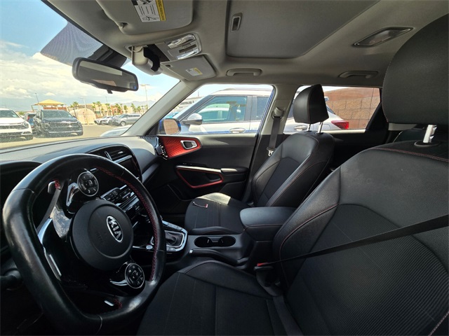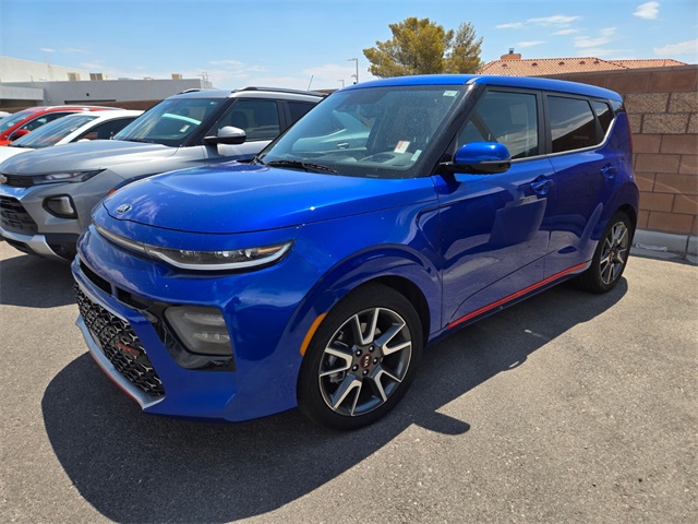 Recent Arrival!CARFAX One-Owner.Odometer is 2357 miles below market average!27/32 City/Highway MPGNeptune Blue 2020 Kia Soul GT-Line Turbo FWD 7-Speed Automatic 1.6L I4 DGI Turbocharged DOHC 16V LEV3-ULEV70 201hpIf you don't drive here, you can't save here!Awards: * JD Power Initial Quality Study (IQS) * 2020 KBB.com 10 Coolest New Cars Under $20,000 * 2020 KBB.com 10 Favorite New-for-2020 CarsPrice may not include recon fee. 10-Way Power Adjustable Driver's Seat, 4-Wheel Disc Brakes, 8 Speakers, ABS brakes, Air Conditioning, Alloy wheels, AM/FM radio: SiriusXM, Apple CarPlay & Android Auto, Automatic temperature control, Brake assist, Bumpers: body-color, Cargo Tray, Carpeted Floor Mats, Delay-off headlights, Driver door bin, Driver vanity mirror, Dual front impact airbags, Dual front side impact airbags, Electronic Stability Control, Emergency communication system: UVO link, Exterior Parking Camera Rear, Front anti-roll bar, Front Bucket Seats, Front Center Armrest, Front dual zone A/C, Front fog lights, Front reading lights, Front wheel independent suspension, Fully automatic headlights, Heads-Up Display, Heated door mirrors, Heated Front Bucket Seats, Heated front seats, Heated steering wheel, Leather Shift Knob, Leather steering wheel, Leatherette & Cloth Seat Trim, Low tire pressure warning, Navigation System, Occupant sensing airbag, Outside temperature display, Overhead airbag, Overhead console, Passenger door bin, Passenger vanity mirror, Power door mirrors, Power driver seat, Power moonroof, Power steering, Power windows, Radio: AM/FM/MP3 UVO Link Audio System, Rear seat center armrest, Rear window defroster, Rear window wiper, Remote keyless entry, Speed control, Speed-sensing steering, Split folding rear seat, Sport steering wheel, Steering wheel mounted audio controls, Tachometer, Telescoping steering wheel, Tilt steering wheel, Traction control, Trip computer, Turn signal indicator mirrors, Variably intermittent wipers, and Wheels: 18" x 7.5 Alloy.