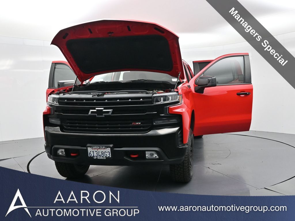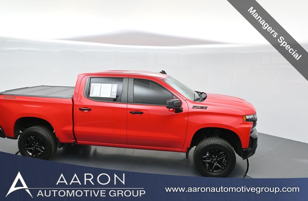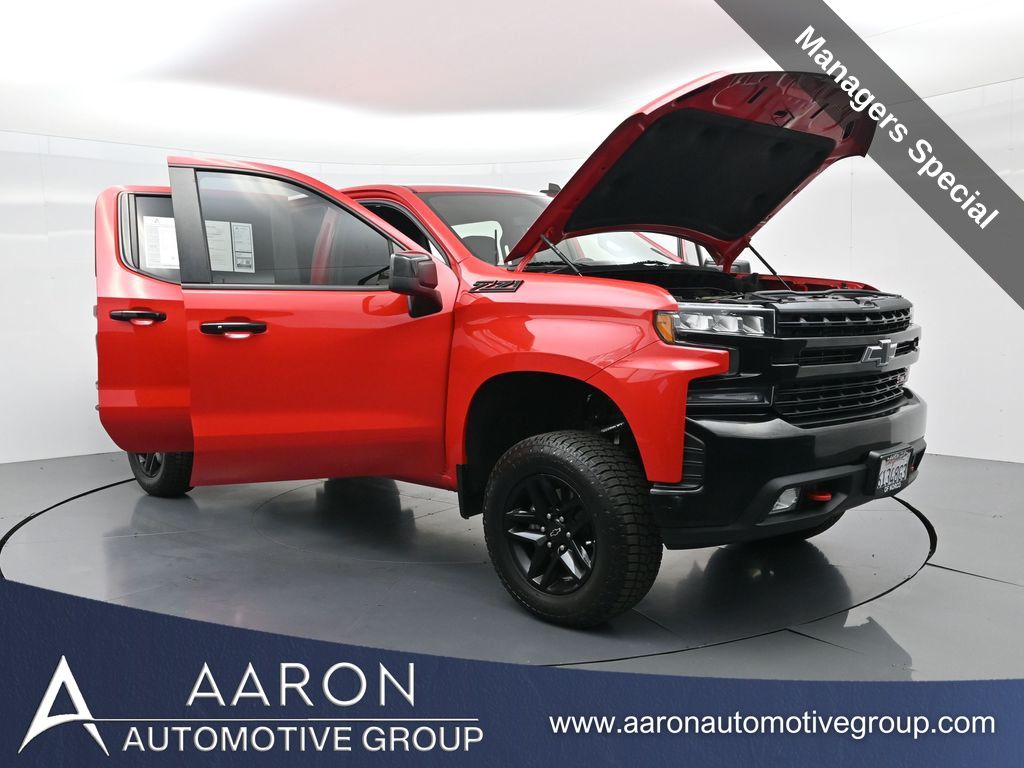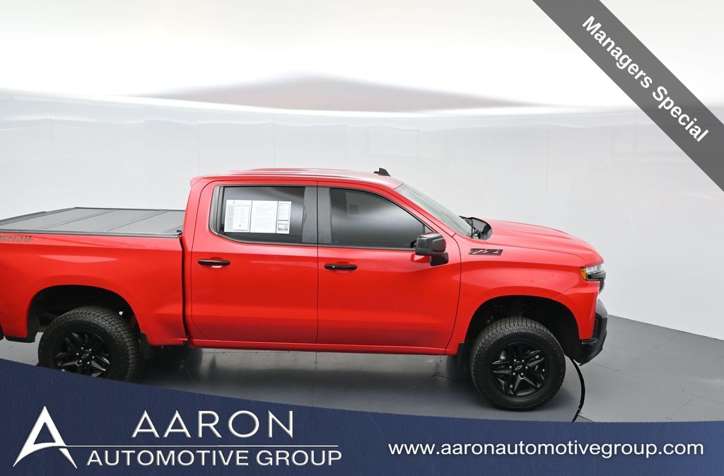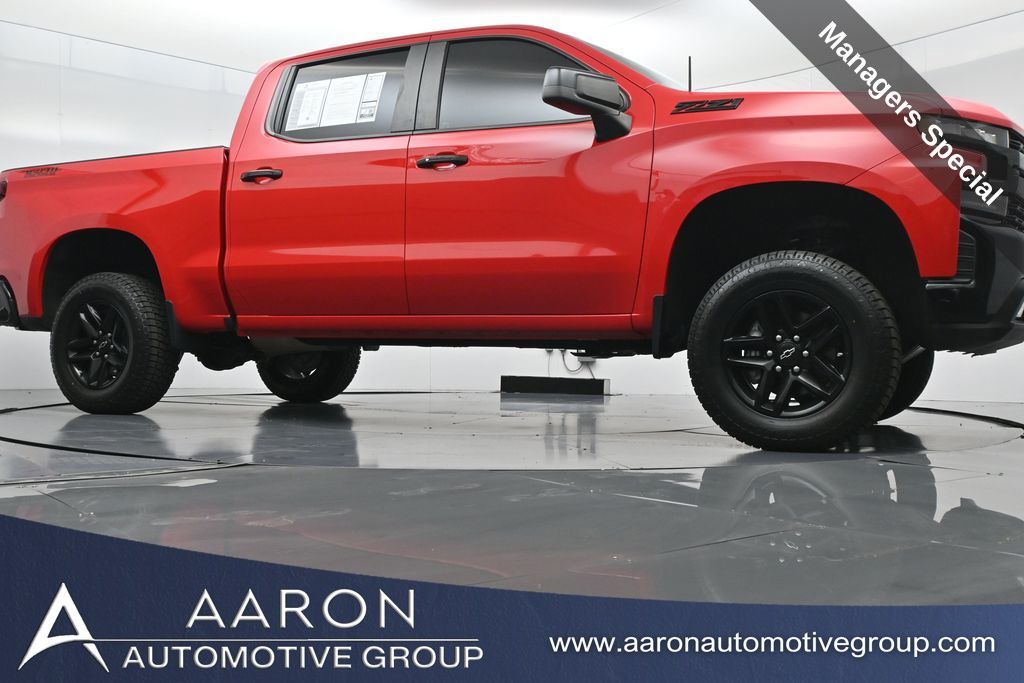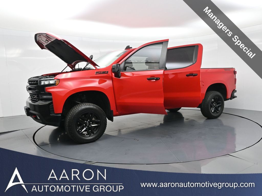 This 2020 Chevrolet Silverado 1500 LT Trail Boss Crew Cab 4x4 in eye-catching Red Hot delivers rugged off-road capability, full-size truck utility, and everyday comfort. Powered by the robust 5.3L EcoTec3 V8 paired with a smooth-shifting 10-speed automatic transmission, its equipped to handle heavy loads, challenging terrain, and long highway hauls with ease. The Trail Boss package adds Z71 off-road suspension with Rancho shocks, skid plates, hill descent control, a two-speed transfer case, and Goodyear Wrangler Duratrac off-road tires mounted on painted aluminum wheels. Its bold exterior is accented by black badging, recovery hooks, LED signature lighting, dual exhaust with polished tips, and a factory spray-in bedliner for durability. Inside, the Jet Black cabin offers heated front seats, a heated steering wheel, dual-zone automatic climate control, and a Chevrolet Infotainment 3 system with 8-inch touchscreen, Apple CarPlay, Android Auto, Bluetooth, and 4G LTE Wi-Fi hotspot capability. Additional convenience features include a remote start system, rear window defogger, rear seat storage package, trailer brake controller, and multiple USB ports. Safety is supported by a rear vision camera, tire pressure monitoring, StabiliTrak stability control, and Teen Driver mode. With 48,033 miles, a clean CARFAX history, and documented service records, this Silverado LT Trail Boss is in excellent condition and ready for its next adventure. Combining the comfort and technology you want with the off-road prowess you need, this Trail Boss is equally at home on job sites, trails, or the open road. Come see how it can work and play as hard as you do.