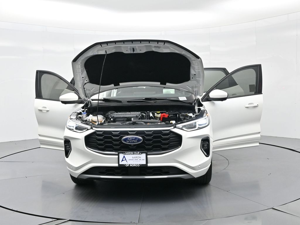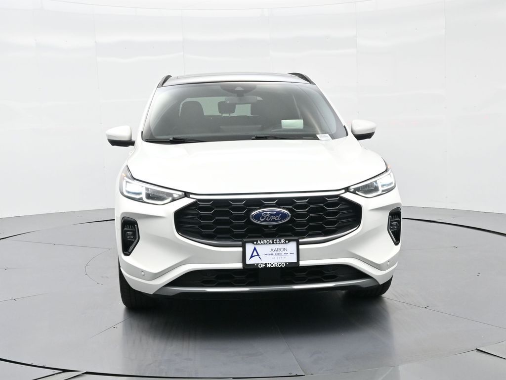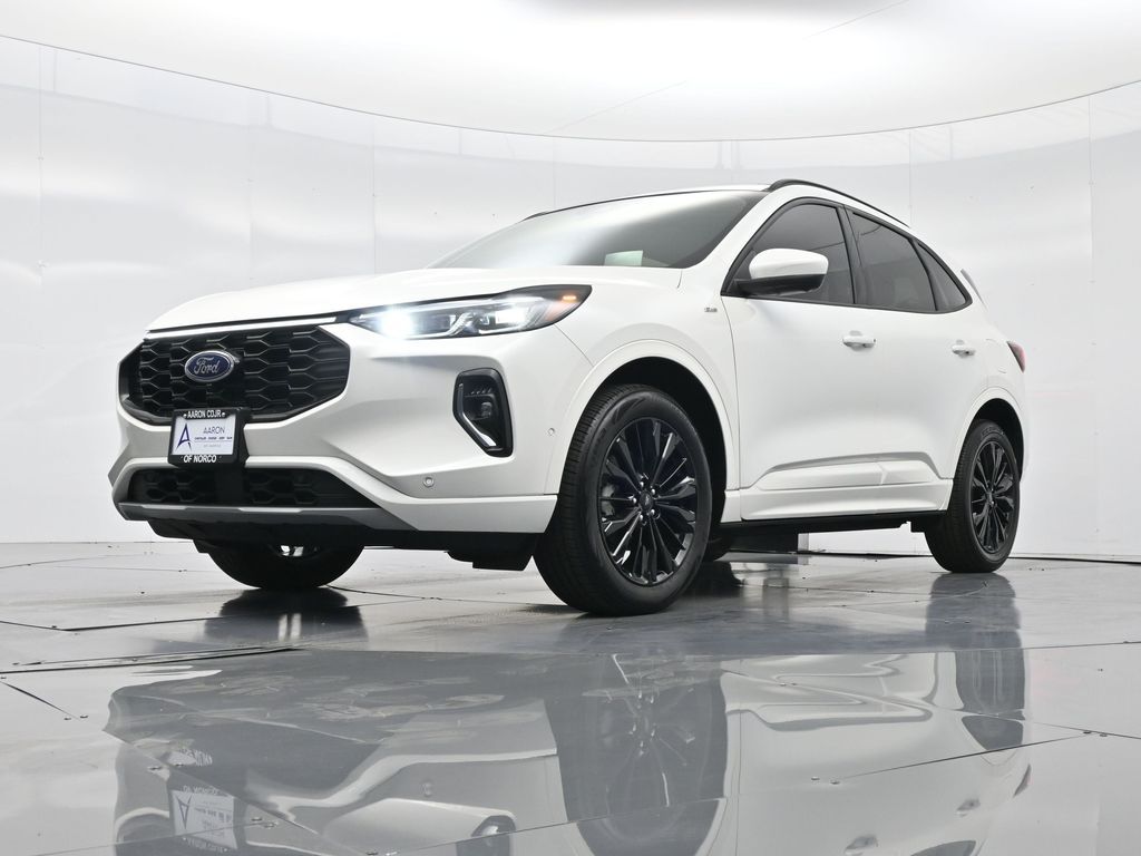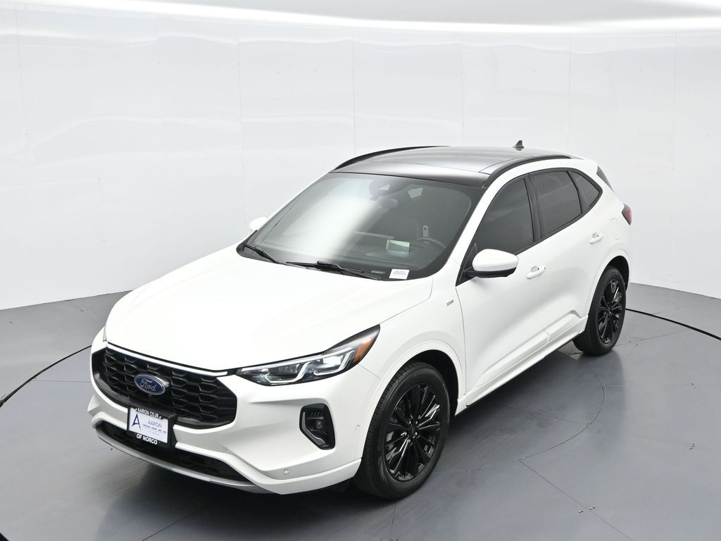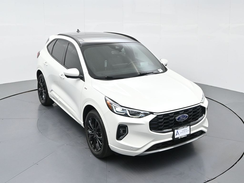 Star White Metallic Tri-Coat 2023 Ford Escape ST-Line Elite AWD 8-Speed Automatic EcoBoost 2.0L I4 GTDi DOHC Turbocharged VCT AWD, Active Park Assist 2.0, Alloy wheels, Black Roof-Rack Side Rails, Equipment Group 501A, Exposed Wheel Locking Lug Nut Kit, Front fog lights, HD Radio, Head-Up Display, Heated front seats, Heated Leather-Trimmed Front Sport Contour Seats, Memory seat, Navigation system: Connected Navigation, Panoramic Vista Roof, Power driver seat, Power Liftgate, Power passenger seat, Power steering, Premium Technology Package, Radio: B&O Sound System by Bang & Olufsen, SYNC 4 w/Enhanced Voice Recognition, Wheels: 19" Ebony-Painted Aluminum, Wheels: 19" Machined-Face Ebony-Painted Aluminum.Recent Arrival! 23/31 City/Highway MPG