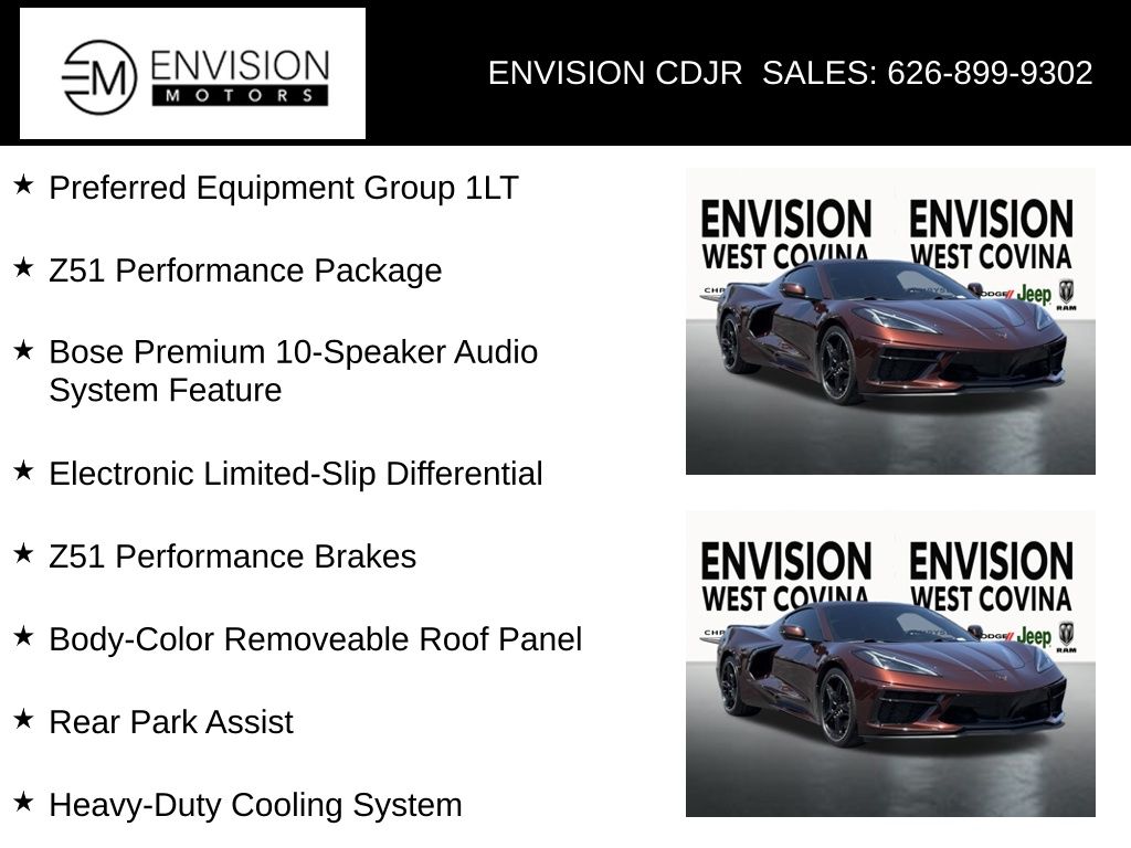 WE SPECIALIZE IN ALL CREDIT PROFILES! See what we can do for you! Call to find out (626) 899-9302.Body-Color Removeable Roof Panel, Bose Premium 10-Speaker Audio System Feature, Electronic Limited-Slip Differential, Heavy-Duty Cooling System, Performance Exhaust w/Stainless-Steel Tips, Performance Rear Axle Ratio, Preferred Equipment Group 1LT, Rear Park Assist, Rear Z51 Spoiler, Wheels: 19" x 8.5" Fr/20" x 11" Rr Carbon Flash, Z51 Performance Brakes, Z51 Performance Package, Z51 Performance Suspension.Caffeine Metallic2022 Chevrolet Corvette Stingray RWD 8 Speed Dual Clutch 6.2L V8**********All Pricing and Advertised Prices for any/all vehicles offered for sale does not include dealer installed accessories which can be purchased for an additional cost.********** The Factory Rebates may not be available on this vehicle if you elect to take advantage of a Special Alternative APR or Special Lease program. Some Factory Rebates are California Resident specific and may vary for residents of other states. NO sales to Dealers, Brokers or Exporters. For out of state purchase, customers must be present to purchase. If shipping is required, dealership must facilitate; no exceptions. Please contact us for special Multi-Vehicle or Fleet pricing. Prices are plus government fees and taxes, any finance charges, $85 documentary fee, $29 electronic registration fee, any emission testing charge and $1.75 per new tire state tire fee. *** We make every effort to provide accurate information, but please verify before purchasing. Leasing & financing available on approved credit. Trade-ins accepted. Subject to prior sale.Awards: * Car and Driver 10 BestCar and Driver, January 2017.