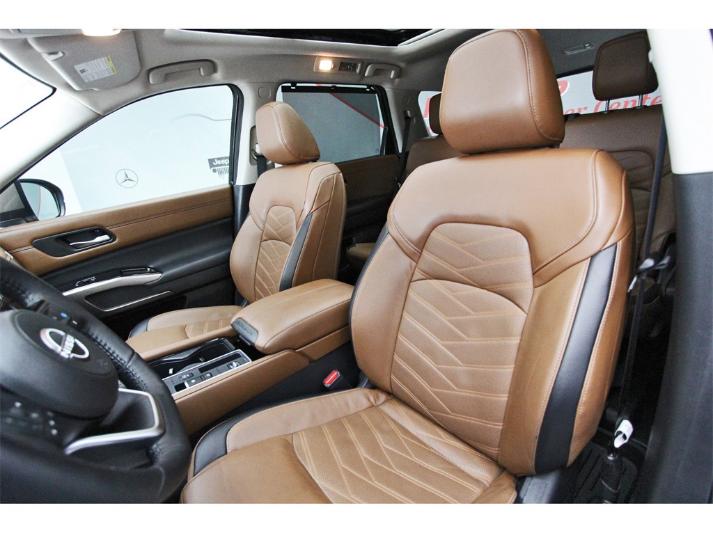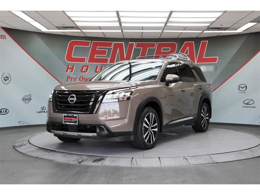 Central Houston Nissan is proud to present you with another True Market Priced Pre-Owned Vehicle. This 2024 Nissan Pathfinder Platinum is loaded with the following Factory Options: Black Appearance Package (Black Grille (K10) and Black Liftgate Emblems), Cargo Package (Cargo Area Protector, Cargo Net, and First Aid Kit), Tow Delete Package (Delete Tow Hitch Receiver & Harness), 13 Speakers, 3rd row seats: bench, 4-Wheel Disc Brakes, ABS brakes, Air Conditioning, Alloy wheels, AM/FM radio: SiriusXM, Auto High-beam Headlights, Auto tilt-away steering wheel, Auto-dimming Rear-View mirror, Automatic temperature control, Axle Ratio: 4.334, Bench Seat Carpeted Floor Mats (Set of 4), Black Splash Guards (Set of 4), Bodyside moldings, Bose Premium Audio System, Brake assist, Bumpers: body-color, Cross Bars, Delay-off headlights, Driver door bin, Driver vanity mirror, Dual front impact airbags, Dual front side impact airbags, Electronic Stability Control, Emergency communication system, Exterior Parking Camera Rear, Four wheel independent suspension, Front anti-roll bar, Front Bucket Seats, Front Center Armrest, Front dual zone A/C, Front reading lights, Fully automatic headlights, Garage door transmitter: HomeLink, Heads-Up Display, Heated & Cooled Front Bucket Seats, Heated door mirrors, Heated front seats, Heated rear seats, Heated steering wheel, Illuminated entry, Knee airbag, Leather steering wheel, Low tire pressure warning, Memory seat, Navigation system: NissanConnect with Navigation and Services, NissanConnect featuring Apple CarPlay and Android Auto, NissanConnect w/Navigation & Services, Occupant sensing airbag, Outside temperature display, Overhead airbag, Overhead console, Panic alarm, Passenger door bin, Passenger vanity mirror, Power door mirrors, Power driver seat, Power Liftgate, Power moonroof, Power passenger seat, Power steering, Power windows, Radio data system, Radio: AM/FM Audio System, Rain sensing wipers, Rear air conditioning, Rear anti-roll bar, Rear reading lights, Rear seat center armrest, Rear side impact airbag, Rear window defroster, Rear window wiper, Reclining 3rd row seat, Remote keyless entry, Security system, Semi-Aniline Leather-Appointed Seating Surfaces, Speed control, Speed-sensing steering, Speed-Sensitive Wipers, Split folding rear seat, Spoiler, Steering wheel memory, Steering wheel mounted audio controls, Tachometer, Telescoping steering wheel, Tilt steering wheel, Traction control, Trip computer, Turn signal indicator mirrors, Variably intermittent wipers, Ventilated front seats, and Wheels: 20" x 8J Machined Alloy!!Central Houston Nissan is more than just your typical car dealership. When our customers visit us, our goal is to provide quality vehicles, exceptional service and a friendly atmosphere. Our staff has been trained to create ease during your purchase or service experience and we are always making sure you get everything you want and deserve out of your visit. Our vision and mission is an employee-centered and customer-focused environment. Vehicles may be subject to prep package and market adjustment. When you buy from Central Houston Nissan, we'll make it the best car buying experience you've ever had. When you purchase a New Nissan or a qualifying Pre-Owned vehicle from Central Houston Nissan, you are automatically enrolled into our Central Houston Nissan Central Care Program at no cost to you. You can’t beat that! Vehicles may be subject to prep package and market adjustment. Stop by 2901 S Loop W, Houston, Texas 77054 today!!!
