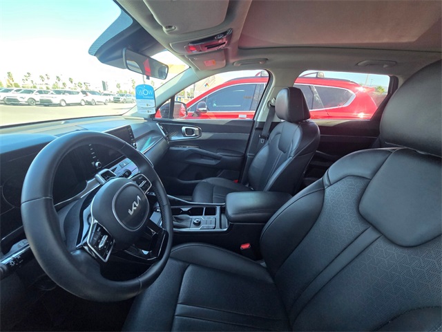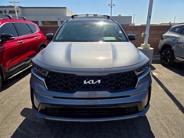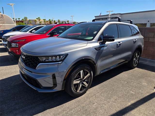 Priced below KBB Fair Purchase Price!24/29 City/Highway MPGEverlasting Silver 2023 Kia Sorento S FWD 8-Speed Automatic 2.5L I4 DGI DOHC 16V LEV3-ULEV70 191hpIf you don't drive here, you can't save here!Price may not include recon fee. Panoramic Sunroof Package (LED Interior Lighting and Panoramic Power Sunroof w/Power Sunshade), 3.798 Axle Ratio, 3rd row seats: split-bench, 4-Wheel Disc Brakes, 6 Speakers, ABS brakes, Air Conditioning, Alloy wheels, AM/FM radio: SiriusXM, Apple CarPlay & Android Auto, Auto High-beam Headlights, Automatic temperature control, Brake assist, Bumpers: body-color, Cargo Cover, Cargo Net, Carpet Floor Mats, Carpeted Cargo Mat w/Seatback Protection, Cross Bars, Delay-off headlights, Driver door bin, Driver vanity mirror, Dual front impact airbags, Dual front side impact airbags, Electronic Stability Control, Emergency communication system, Exterior Parking Camera Rear, Four wheel independent suspension, Front anti-roll bar, Front Bucket Seats, Front Center Armrest, Front dual zone A/C, Front reading lights, Fully automatic headlights, Heated door mirrors, Heated Front Bucket Seats, Heated front seats, Illuminated entry, Knee airbag, Leather Shift Knob, Leather steering wheel, Low tire pressure warning, Navigation System, Occupant sensing airbag, Outside temperature display, Overhead airbag, Overhead console, Panic alarm, Passenger door bin, Passenger vanity mirror, Power door mirrors, Power driver seat, Power steering, Power windows, Radio data system, Radio: AM/FM Audio System, Rear air conditioning, Rear anti-roll bar, Rear reading lights, Rear seat center armrest, Rear window defroster, Rear window wiper, Remote keyless entry, Roof rack: rails only, Security system, Smart Key w/ Push Button and Remote Start, Speed control, Speed-sensing steering, Split folding rear seat, Spoiler, Steering wheel mounted audio controls, SynTex Artificial Leather Seat Trim, Tachometer, Telescoping steering wheel, Tilt steering wheel, Traction control, Trip computer, Turn signal indicator mirrors, Variably intermittent wipers, and Wheels: 7.5J x 18" Machine-Finished Alloy.