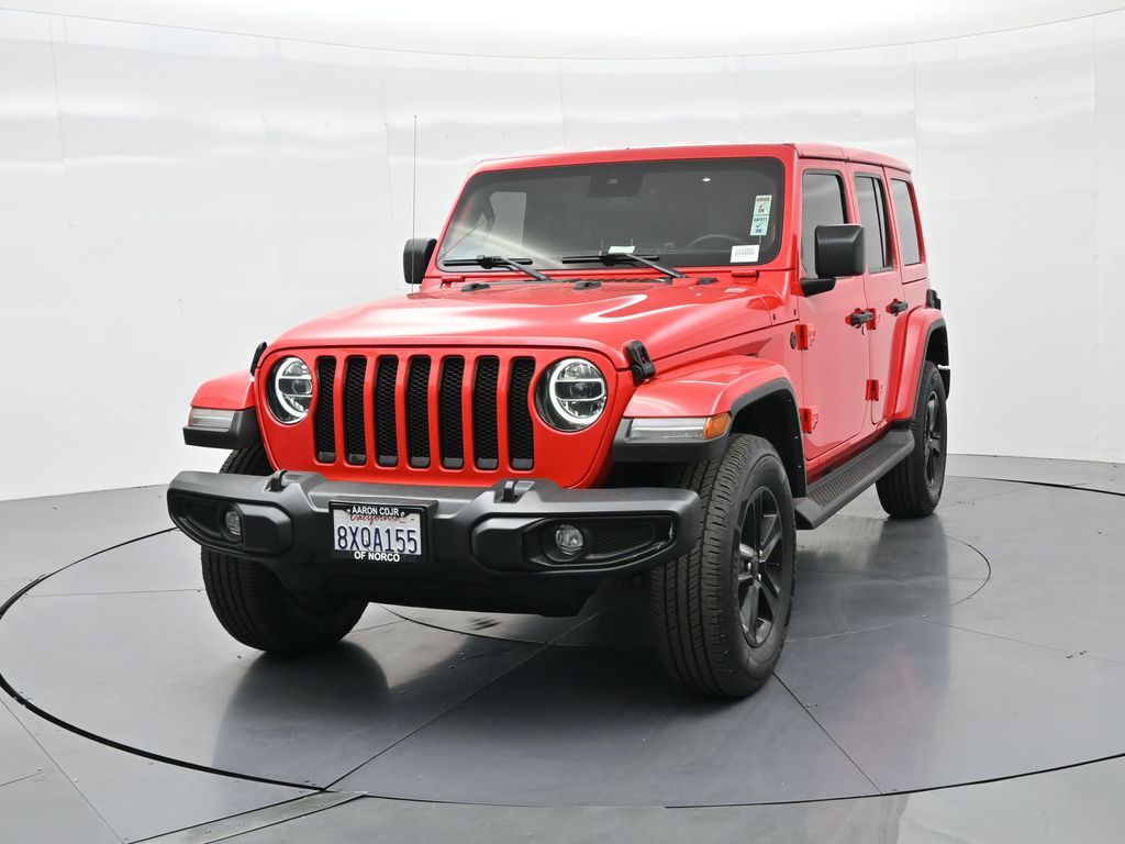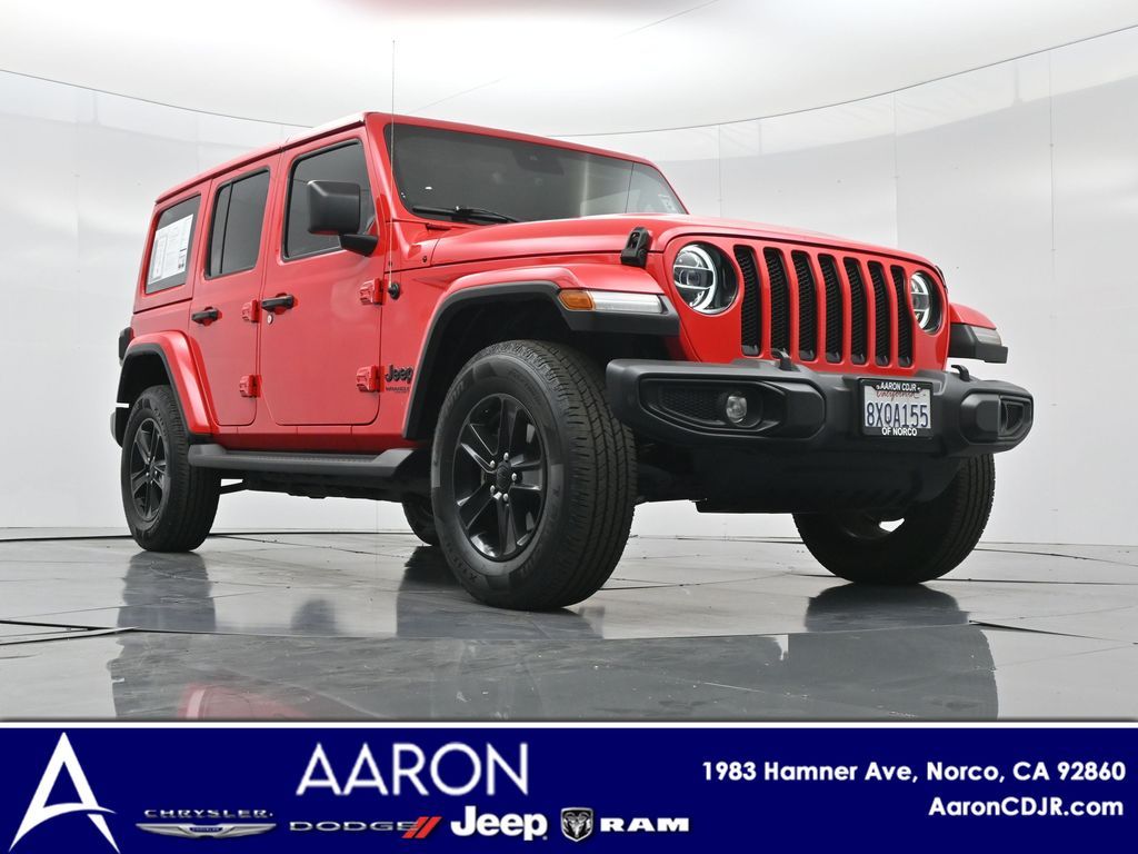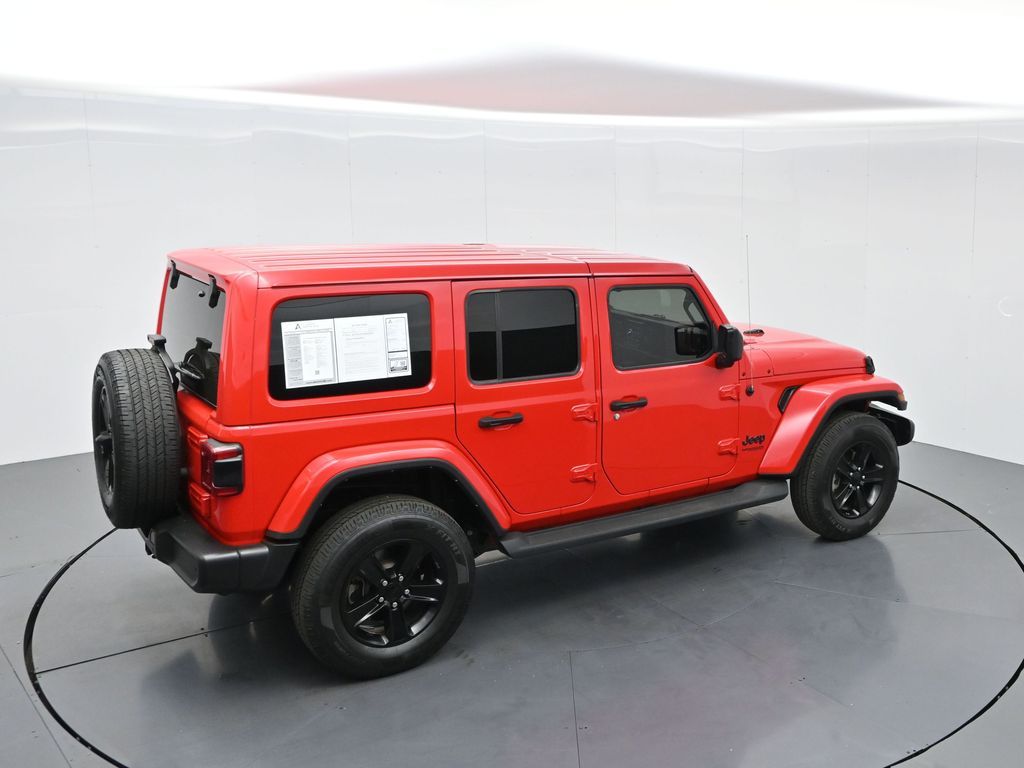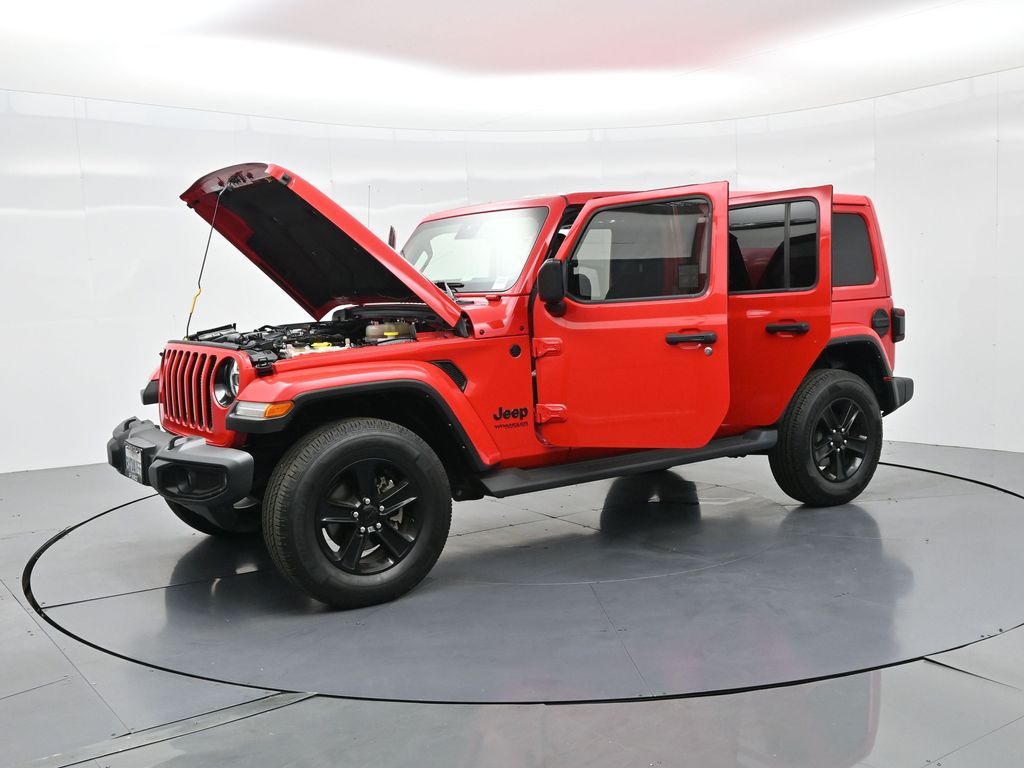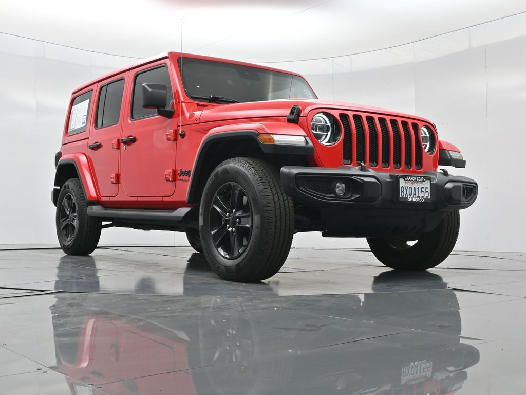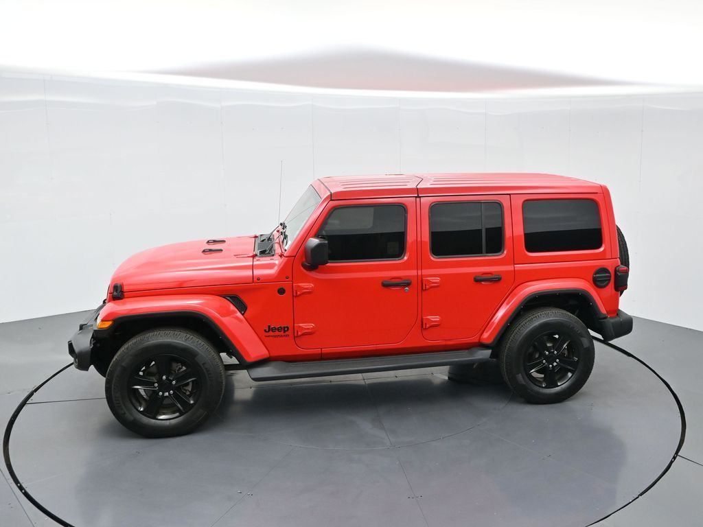 Boldly styled and exceptionally equipped, this 2021 Jeep Wrangler Unlimited Sahara Altitude offers the perfect blend of off-road capability, urban refinement, and everyday comfort, finished in Firecracker Red Clearcoat over a sleek Black interior and showing just 49,628 miles. Under the hood, a 3.6 liter V6 24V VVT engine delivers robust performance paired with an eight speed automatic transmission and Jeeps proven Command Trac four wheel drive system for outstanding traction on any terrain. This Sahara Altitude trim is loaded with features including heated leather trimmed bucket seats, heated steering wheel, remote start, and dual zone automatic climate control for year-round comfort. The cabin includes a leather wrapped dash and shift knob, ambient LED lighting, a seven inch digital driver display, and the Uconnect 4C NAV system with an 8.4 inch touchscreen, premium Alpine audio, integrated navigation, Apple CarPlay, Android Auto, and voice command. Exterior upgrades include the Altitude Appearance Package with 18 inch gloss black aluminum wheels wrapped in all terrain tires, black three piece hardtop, black grille and exterior accents, body color fenders and bumpers, LED headlights and taillamps, and proximity keyless entry. Safety and convenience are enhanced with ParkSense rear park assist, blind spot monitoring, rear cross path detection, trailer tow package with four and seven pin wiring, Class II hitch, backup camera, and a 240 amp alternator. Interior versatility includes fold flat 60 40 rear seats, rear cargo storage tray, Mopar all weather floor mats, and multiple USB ports for passenger connectivity. With a clean one owner Carfax, regular oil changes, recent maintenance including new filters, and personal lease history, this Wrangler Sahara Altitude stands ready for both weekend escapes and daily commutes. Visit us today and discover why the Wrangler continues to set the benchmark for open air adventure and everyday capability.