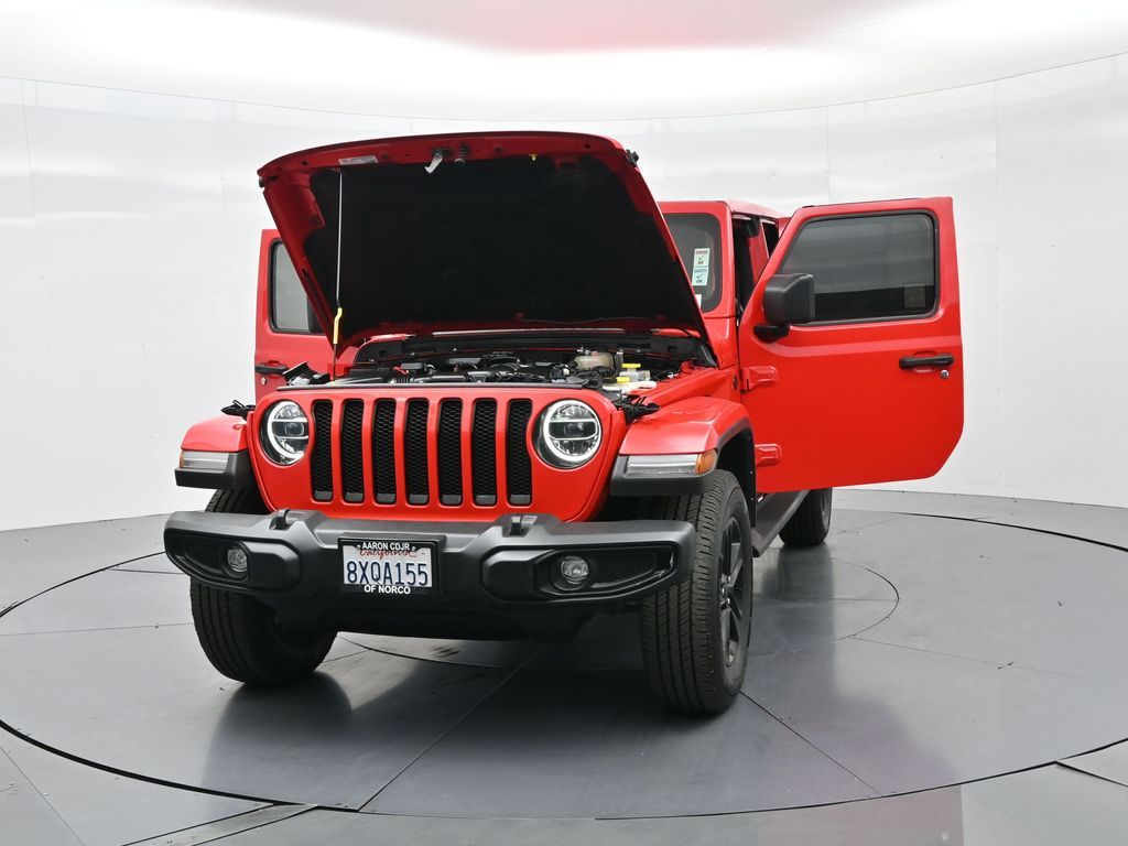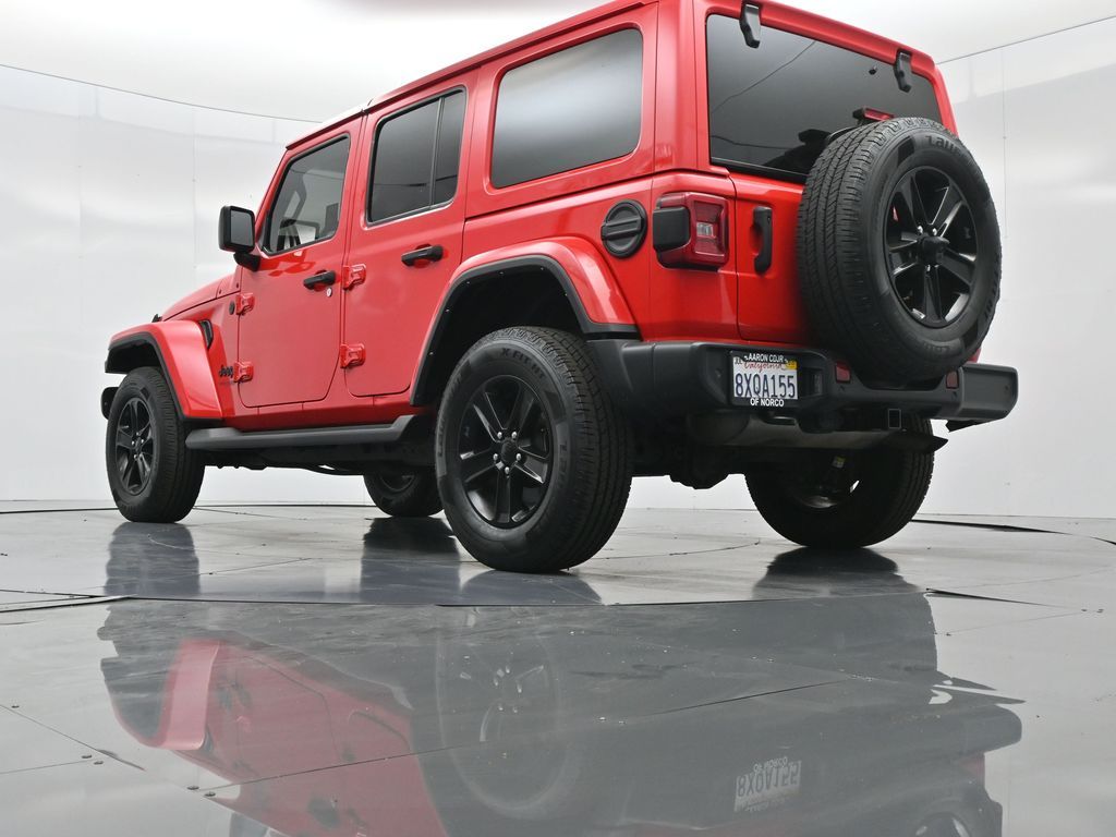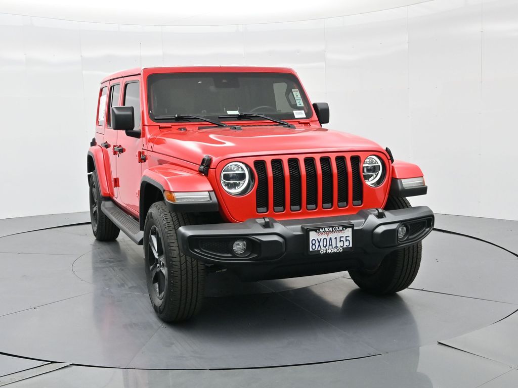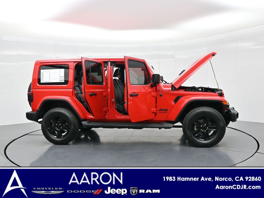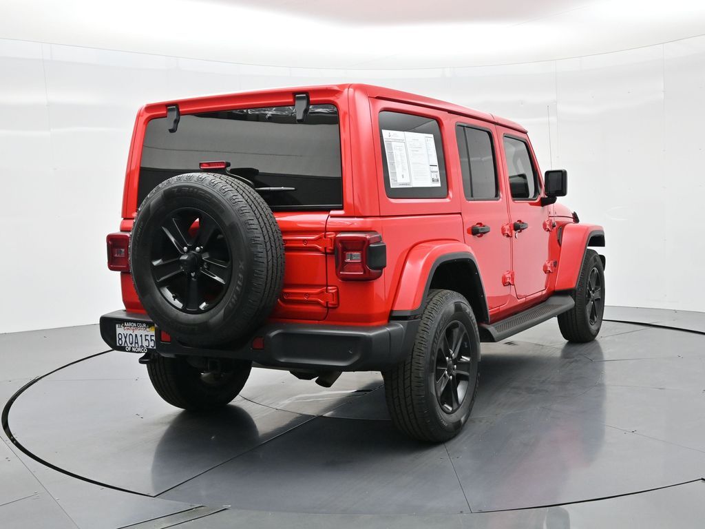 Boldly styled and exceptionally equipped, this 2021 Jeep Wrangler Unlimited Sahara Altitude offers the perfect blend of off-road capability, urban refinement, and everyday comfort, finished in Firecracker Red Clearcoat over a sleek Black interior and showing just 49,628 miles. Under the hood, a 3.6 liter V6 24V VVT engine delivers robust performance paired with an eight speed automatic transmission and Jeeps proven Command Trac four wheel drive system for outstanding traction on any terrain. This Sahara Altitude trim is loaded with features including heated leather trimmed bucket seats, heated steering wheel, remote start, and dual zone automatic climate control for year-round comfort. The cabin includes a leather wrapped dash and shift knob, ambient LED lighting, a seven inch digital driver display, and the Uconnect 4C NAV system with an 8.4 inch touchscreen, premium Alpine audio, integrated navigation, Apple CarPlay, Android Auto, and voice command. Exterior upgrades include the Altitude Appearance Package with 18 inch gloss black aluminum wheels wrapped in all terrain tires, black three piece hardtop, black grille and exterior accents, body color fenders and bumpers, LED headlights and taillamps, and proximity keyless entry. Safety and convenience are enhanced with ParkSense rear park assist, blind spot monitoring, rear cross path detection, trailer tow package with four and seven pin wiring, Class II hitch, backup camera, and a 240 amp alternator. Interior versatility includes fold flat 60 40 rear seats, rear cargo storage tray, Mopar all weather floor mats, and multiple USB ports for passenger connectivity. With a clean one owner Carfax, regular oil changes, recent maintenance including new filters, and personal lease history, this Wrangler Sahara Altitude stands ready for both weekend escapes and daily commutes. Visit us today and discover why the Wrangler continues to set the benchmark for open air adventure and everyday capability.