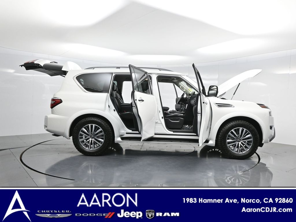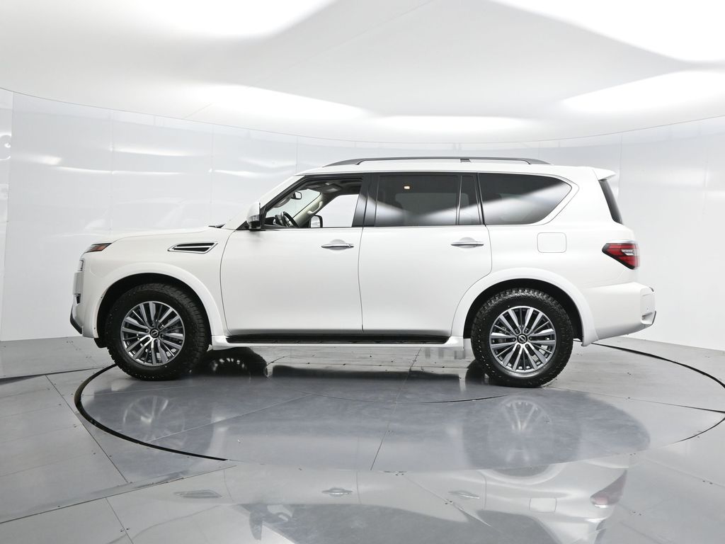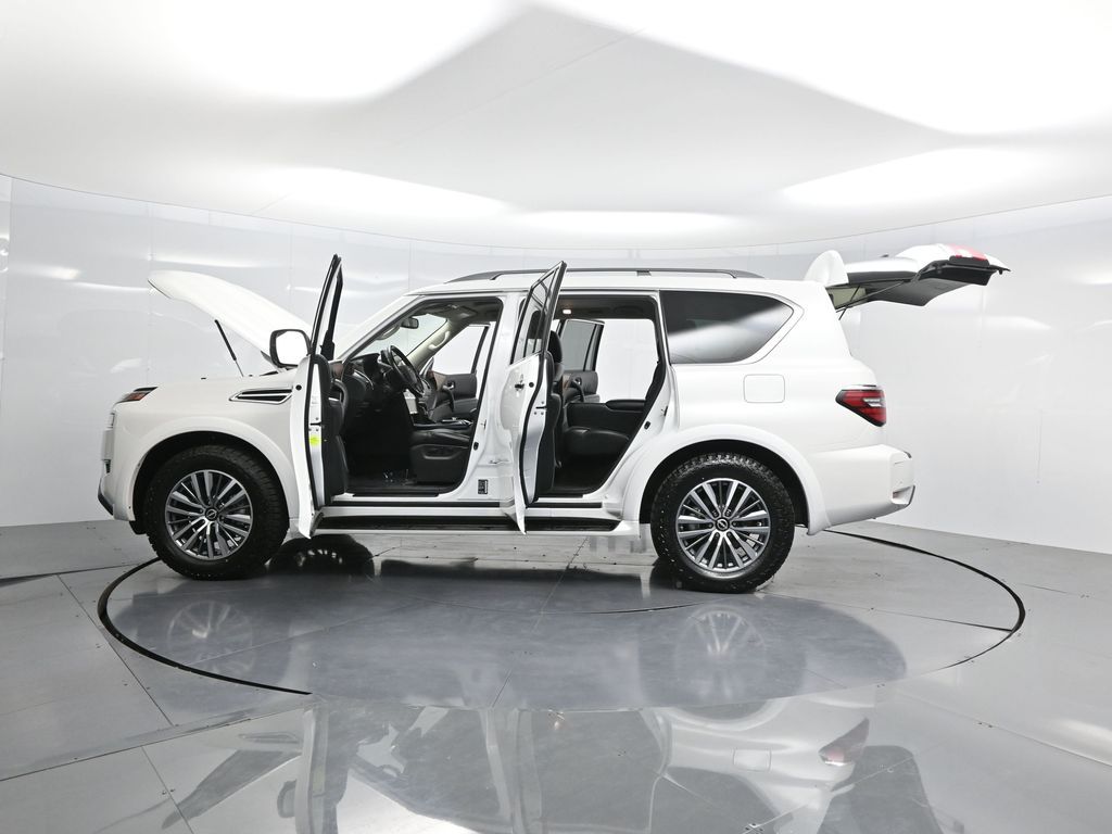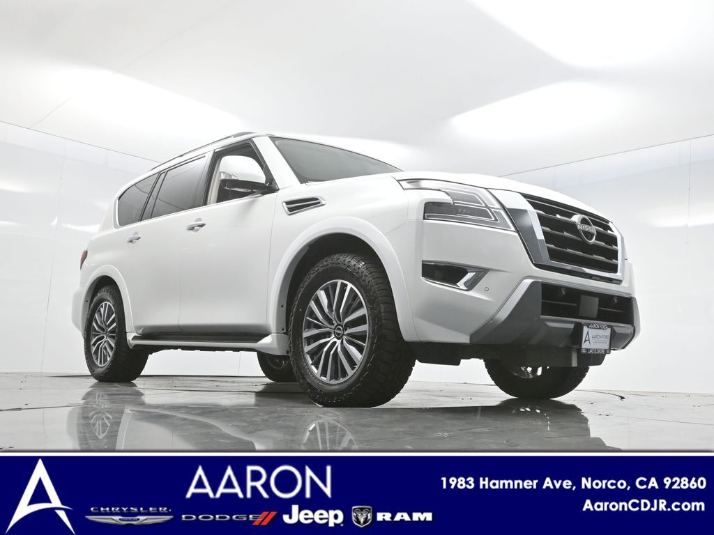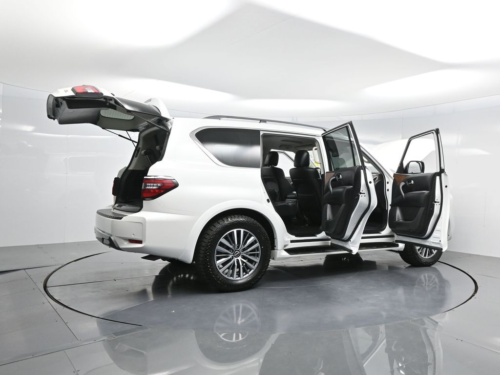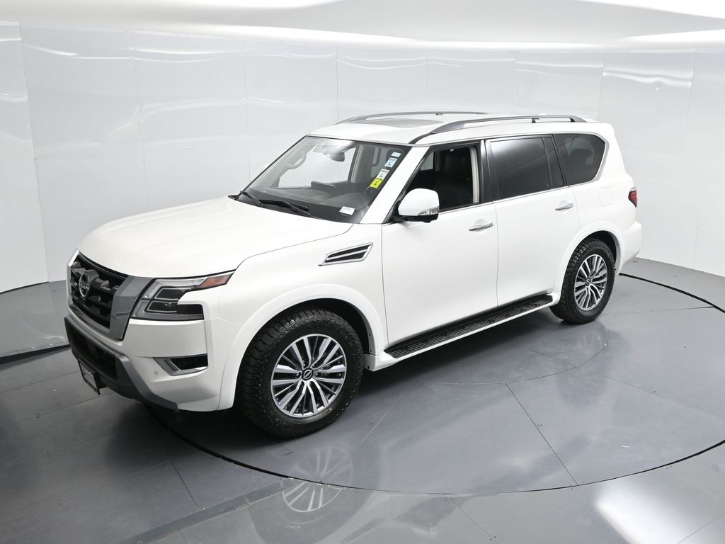 Command the road in full-size comfort and power with this 2023 Nissan Armada SL, finished in Aspen White TriCoat over a Charcoal leather interior and driven just 66,669 miles. Under the hood lies a robust 5.6 liter Endurance V8 engine producing 400 horsepower and 413 pound feet of torque, paired with a seven speed automatic transmission and rear wheel drive for responsive performance and confident towing. This SL trim offers an elevated driving experience with second row captains chairs, a power folding third row, heated front seats, heated leather wrapped steering wheel, dual zone automatic climate control, and power lift-gate for convenience and comfort. Inside the cabin, technology takes center stage with a 12.3 inch color touchscreen infotainment system, navigation, Apple CarPlay and Android Auto, SiriusXM radio with Traffic and Travel Link, Wi-Fi hotspot, and a 13 speaker premium Bose audio system with surround sound clarity. Nissan Safety Shield 360 surrounds you with driver assistance features including automatic emergency braking with pedestrian detection, lane departure warning, blind spot warning, rear cross traffic alert, rear automatic braking, intelligent forward collision warning, high beam assist, and an intelligent around view monitor with moving object detection. The exterior is equally refined, with 20 inch alloy wheels, LED lighting, fog lamps, roof rails, and power folding heated mirrors with LED turn signal indicators. Thoughtful features like remote engine start, trailer sway control, a tow hitch receiver, HomeLink universal garage door transmitter, and rear privacy glass enhance both capability and convenience. With a clean Carfax report, no accidents, one owner history, and consistent service records, this Armada is well cared for and ready for your next family adventure. Spacious, powerful, and equipped with the technology and features modern drivers demand, this 2023 Nissan Armada SL is a premium full-size SUV that blends luxury with long-haul confidence. Schedule your test drive today and experience the refinement and strength that sets the Armada apart.