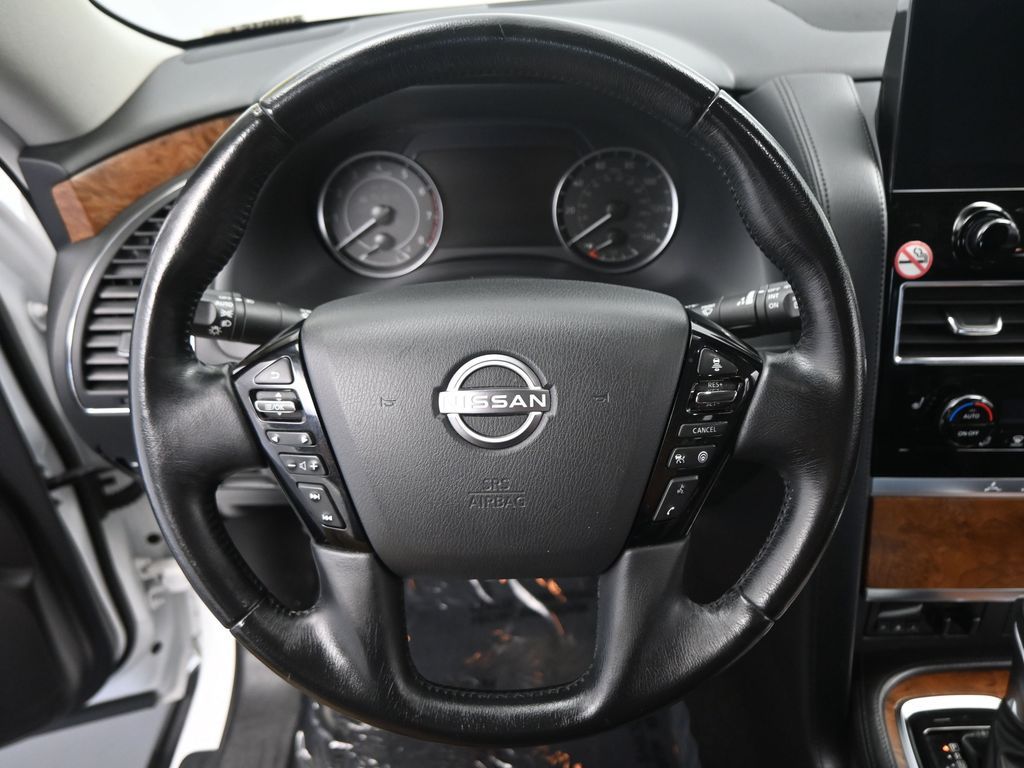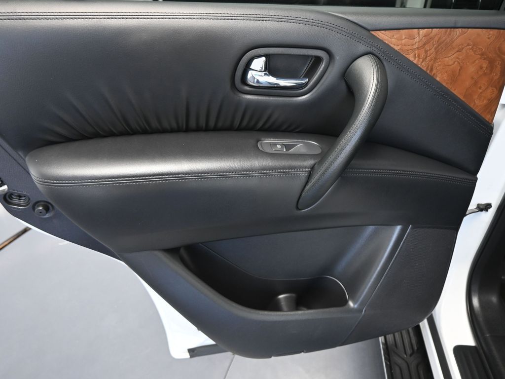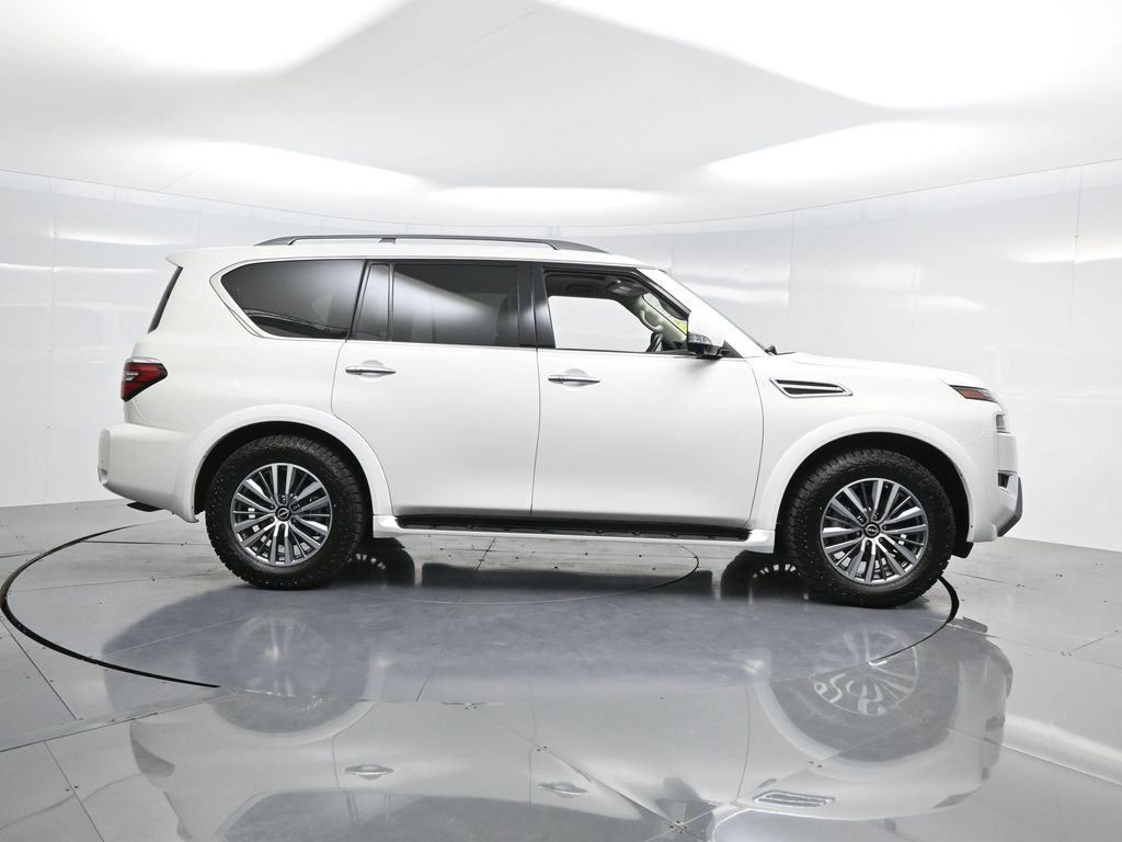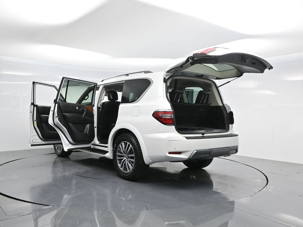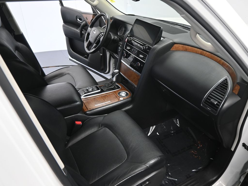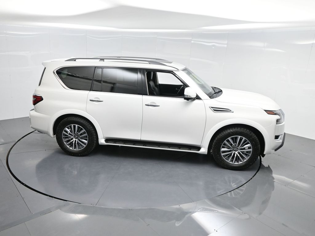 Command the road in full-size comfort and power with this 2023 Nissan Armada SL, finished in Aspen White TriCoat over a Charcoal leather interior and driven just 66,669 miles. Under the hood lies a robust 5.6 liter Endurance V8 engine producing 400 horsepower and 413 pound feet of torque, paired with a seven speed automatic transmission and rear wheel drive for responsive performance and confident towing. This SL trim offers an elevated driving experience with second row captains chairs, a power folding third row, heated front seats, heated leather wrapped steering wheel, dual zone automatic climate control, and power lift-gate for convenience and comfort. Inside the cabin, technology takes center stage with a 12.3 inch color touchscreen infotainment system, navigation, Apple CarPlay and Android Auto, SiriusXM radio with Traffic and Travel Link, Wi-Fi hotspot, and a 13 speaker premium Bose audio system with surround sound clarity. Nissan Safety Shield 360 surrounds you with driver assistance features including automatic emergency braking with pedestrian detection, lane departure warning, blind spot warning, rear cross traffic alert, rear automatic braking, intelligent forward collision warning, high beam assist, and an intelligent around view monitor with moving object detection. The exterior is equally refined, with 20 inch alloy wheels, LED lighting, fog lamps, roof rails, and power folding heated mirrors with LED turn signal indicators. Thoughtful features like remote engine start, trailer sway control, a tow hitch receiver, HomeLink universal garage door transmitter, and rear privacy glass enhance both capability and convenience. With a clean Carfax report, no accidents, one owner history, and consistent service records, this Armada is well cared for and ready for your next family adventure. Spacious, powerful, and equipped with the technology and features modern drivers demand, this 2023 Nissan Armada SL is a premium full-size SUV that blends luxury with long-haul confidence. Schedule your test drive today and experience the refinement and strength that sets the Armada apart.
