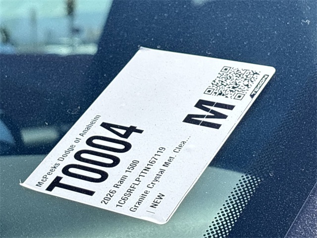 Granite Crystal Metallic Clearcoat 2026 Ram 1500 Rebel 4WD 8-Speed Automatic 3.0L I6 INTERIOR & EXTERIOR PROFESSIONALLY DETAILED FOR DELIVERY, MCPEEK CHRYSLER DODGE JEEP RAM FAMILY OWNED AND OPERATED SINCE 1961 !!!!!.All prices are subject to change without notice. All vehicles subject to prior sale. Advertised price does not include Dealer Installed Accessories or Commercial Bed/Body Upfits. Please contact dealer to receive the most up to date pricing information and complete details. Price includes: $3500 - 2026 National Retail Consumer Cash . Exp. 02/02/2026