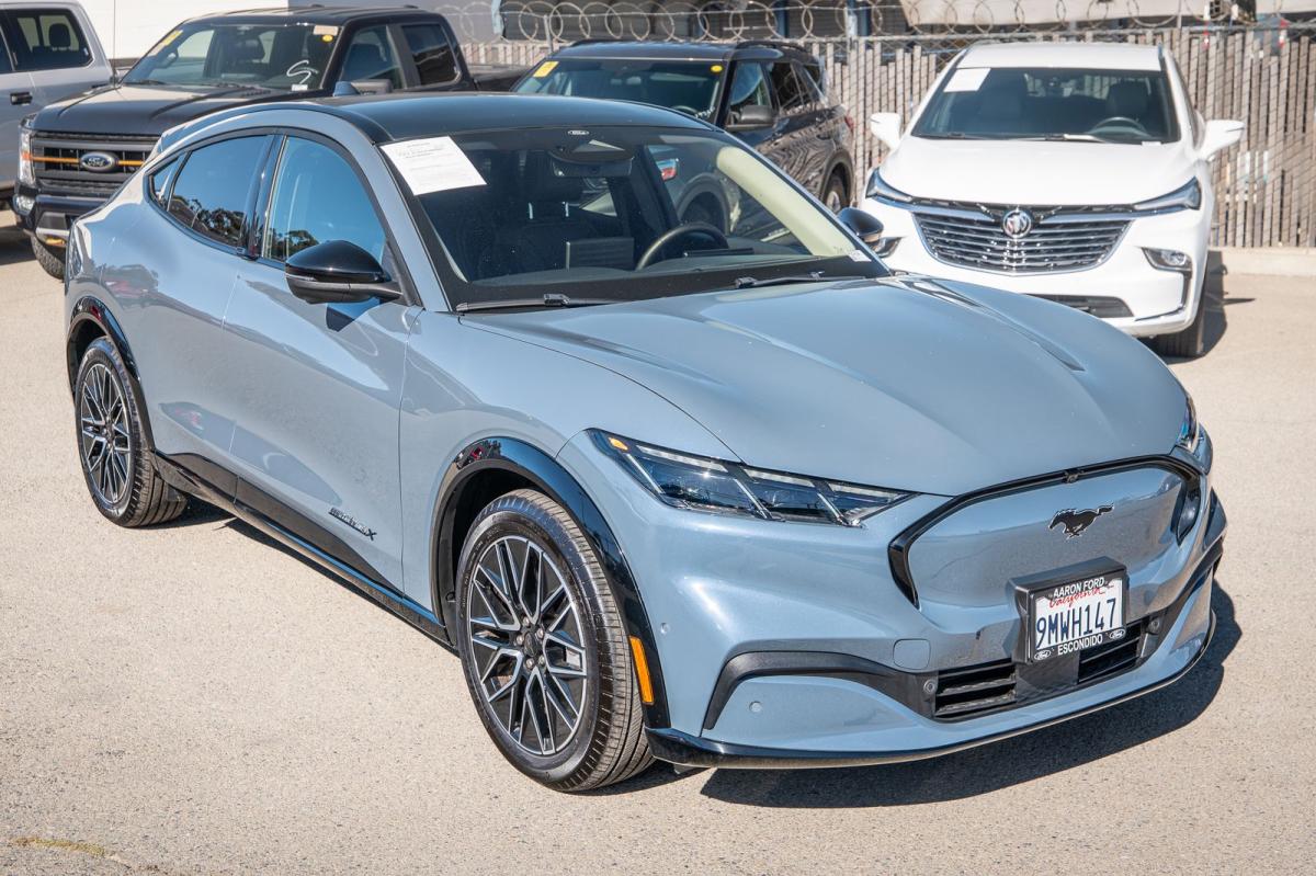 Vapor Blue 2024 Ford Mustang Mach-E Premium AWD Single-Speed Automatic Electric Motor 91KWH USABLE EXT NCM BATT, 1st & 2nd Row Floor Liners w/o Carpet Mats, Cargo Area Cover, Cargo Floor Liner, Equipment Group 300A, Interior Protection Package (Pre-Installed), Panoramic Fixed-Glass Roof.103/94 City/Highway MPG