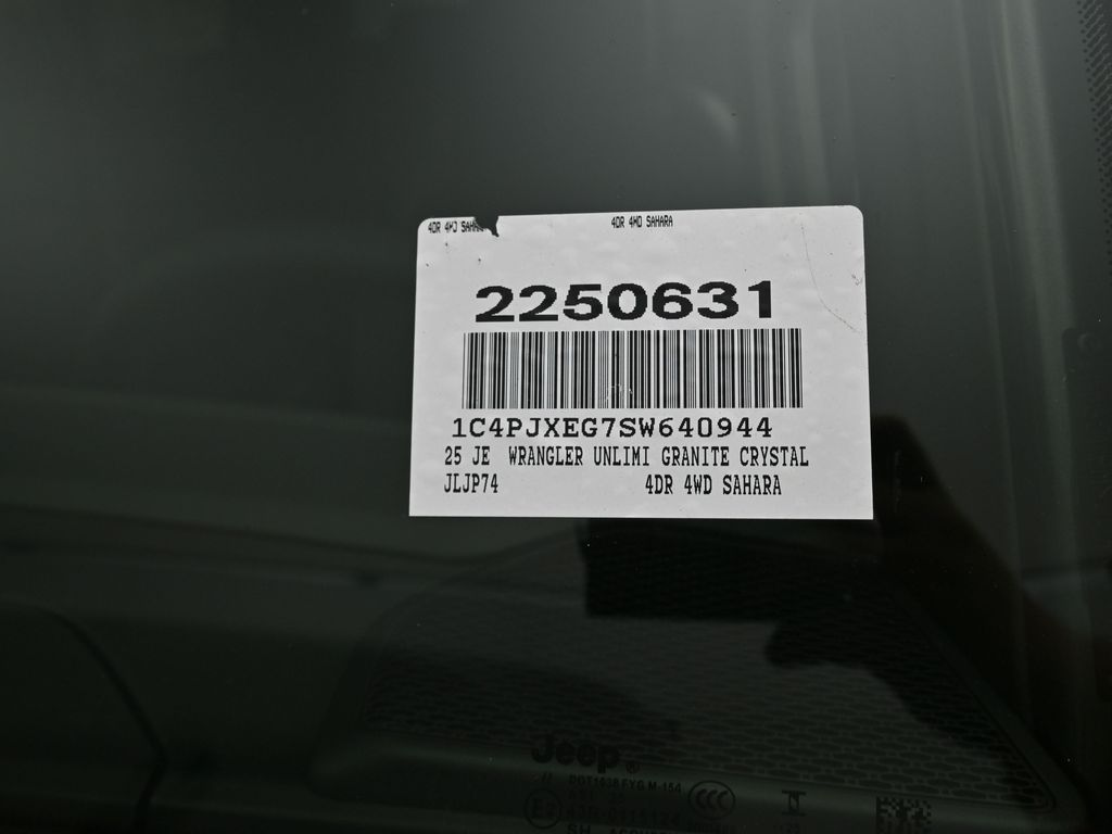 2025 Jeep Wrangler Sahara Granite Crystal Metallic ClearcoatFactory MSRP: $62,455 Dealer Discount of $7,000 off MSRP12.3" Touchscreen Display, 4G LTE Wi-Fi Hot Spot, Alpine Premium Audio System, Apple CarPlay, Auto High Beam Headlamp Control, Auto-Dimming Rear-View Mirror, Blind Spot & Cross Path Detection, Connected Travel & Traffic Services, Connectivity - US/Canada, Google Android Auto, GPS Navigation, HD Radio, Integrated Off-Road Camera, Integrated Voice Command w/Bluetooth, ParkSense Rear Park Assist System, Quick Order Package 24G Sahara, Radio: Uconnect 5 Nav w/12.3" Display, Safety Group, SiriusXM Radio Service, SiriusXM w/360L, Technology Group, Universal Garage Door Opener. 18/23 City/Highway MPG 4WD 8-Speed Automatic 3.6L V6 24V VVT Price includes: $2000 - 2025 National Holiday Select Inventory Bonus Cash. Exp. 01/05/2026 $2500 - 2025 National Retail Bonus Cash . Exp. 01/05/2026