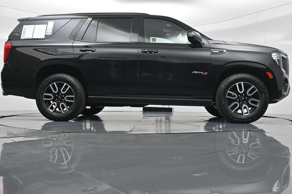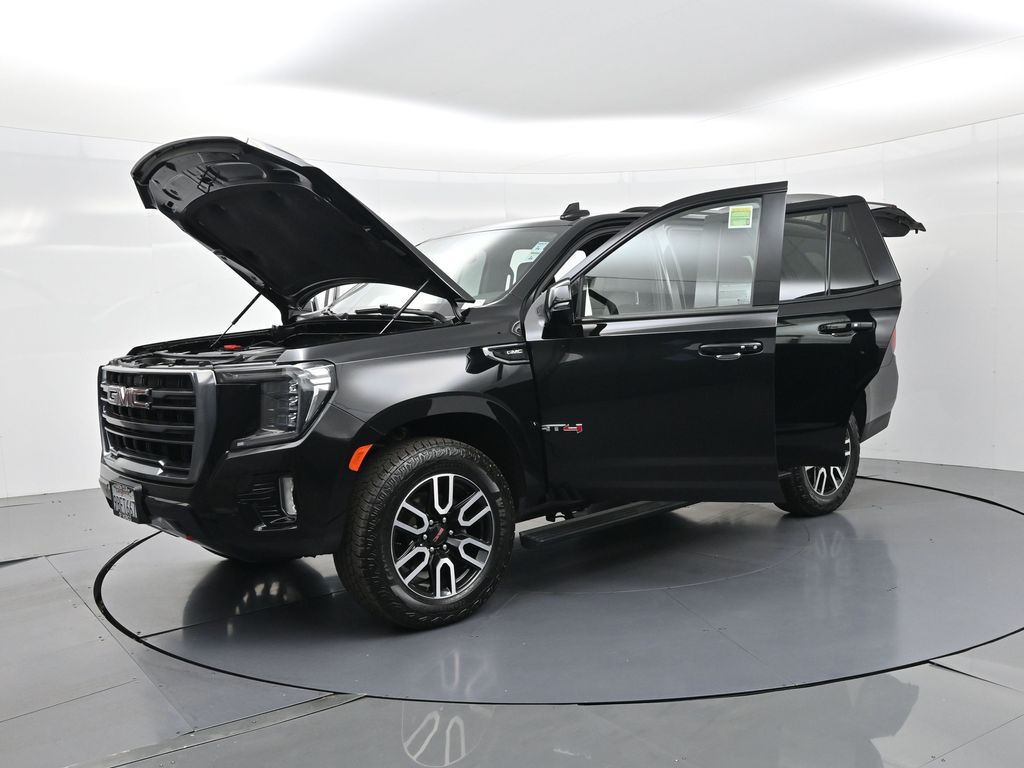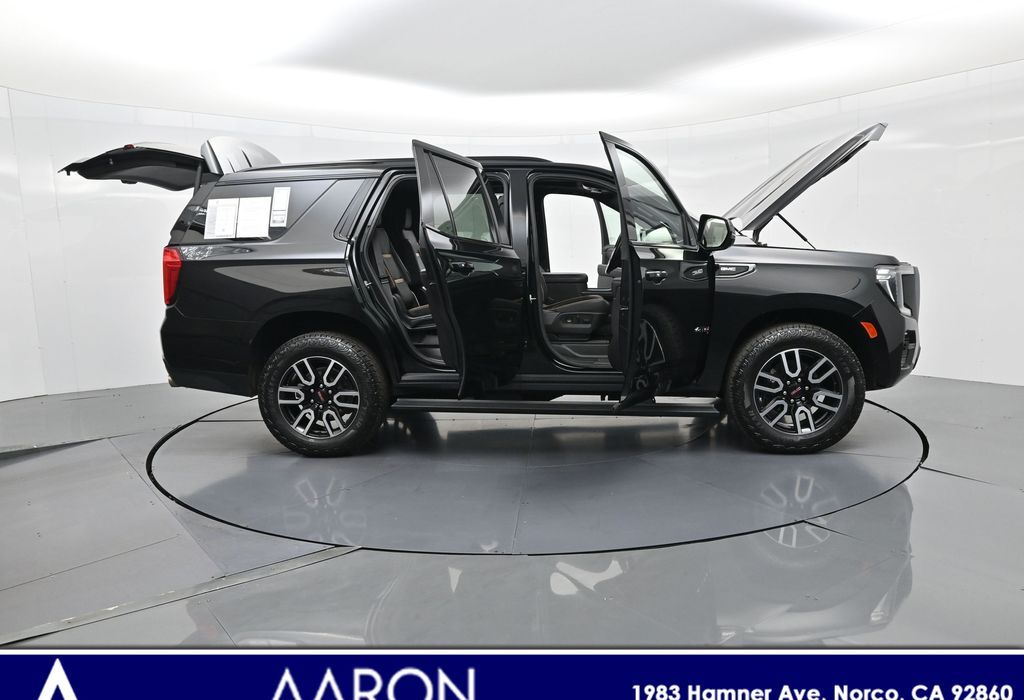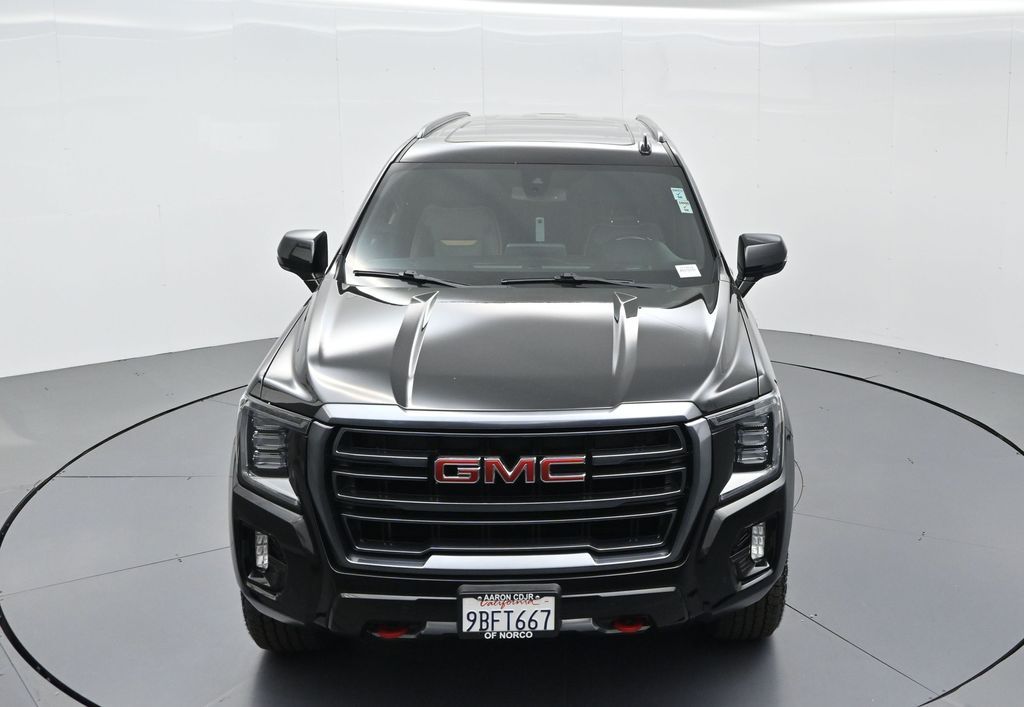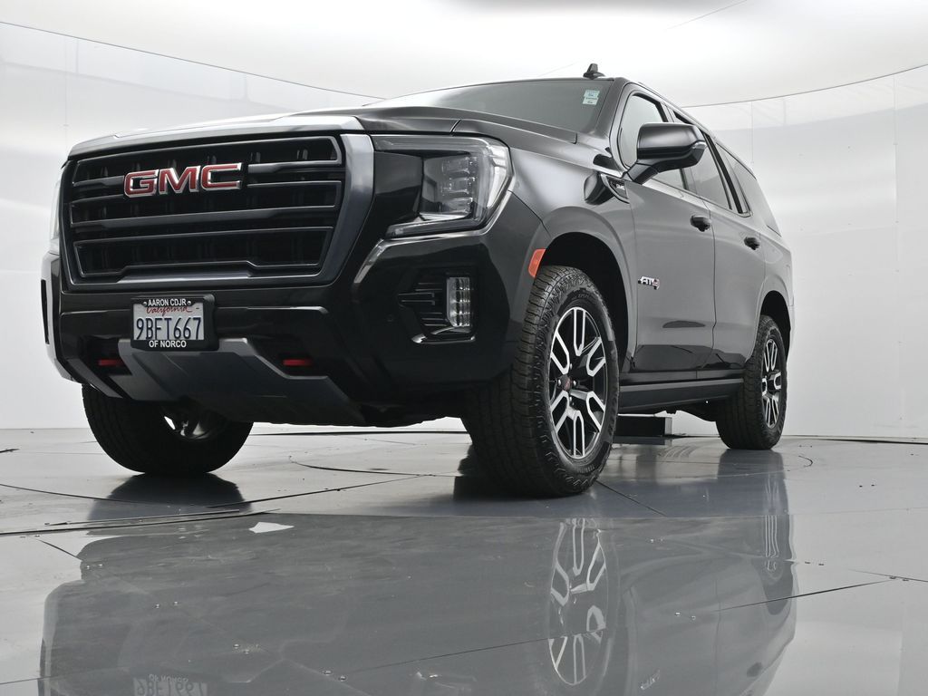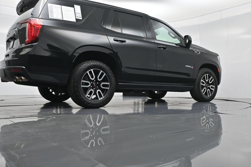 This 2022 GMC Yukon AT4 in striking Onyx Black is a premium full-size SUV that combines off-road capability, refined luxury, and advanced technology. Powered by the robust 6.2L EcoTec3 V8 paired with a smooth 10-speed automatic transmission, it delivers confident acceleration, 4WD capability, and the strength to handle towing and challenging terrain with ease. The AT4 trim is designed for adventure with a mechanical limited-slip differential, two-speed transfer case, hill descent control, skid plates, and 20-inch aluminum wheels with all-terrain tires. Exterior highlights include LED headlamps and taillamps, a bold black and chrome grille, recovery hooks, a power liftgate, and a panoramic power sunroof for open-air driving enjoyment. Inside, the Jet Black interior features heated and ventilated front bucket seats, heated second-row outboard seats, a heated steering wheel, and premium perforated leather upholstery. The 10.2-inch GMC Premium Infotainment System with Google Built-In offers navigation, wireless Apple CarPlay, Android Auto, Bluetooth, SiriusXM, and a premium Bose audio system. Added features like a head-up display, HD surround vision, rear pedestrian alert, and a rear camera mirror enhance safety and convenience. With 32,665 miles and a clean CARFAX history showing regular maintenance, this Yukon AT4 is well-cared-for and ready for its next chapter. Perfect for those who need the space and versatility of a three-row SUV without sacrificing luxury or off-road readiness, this Yukon AT4 offers the capability to handle rugged trails and the refinement to make every mile comfortable. Experience the premium all-terrain difference today.