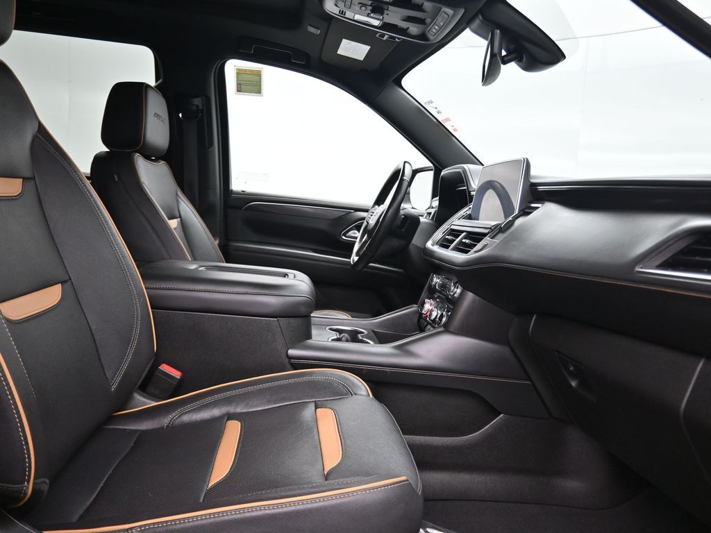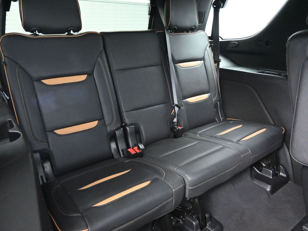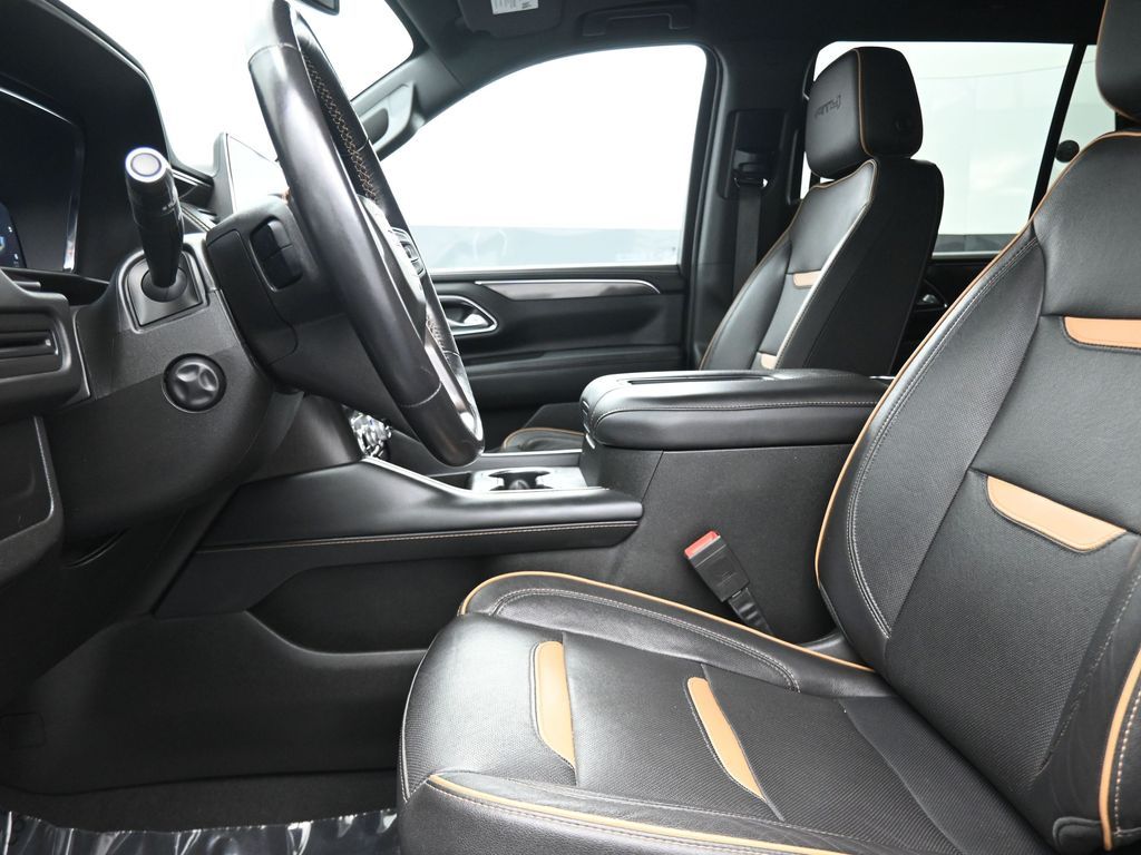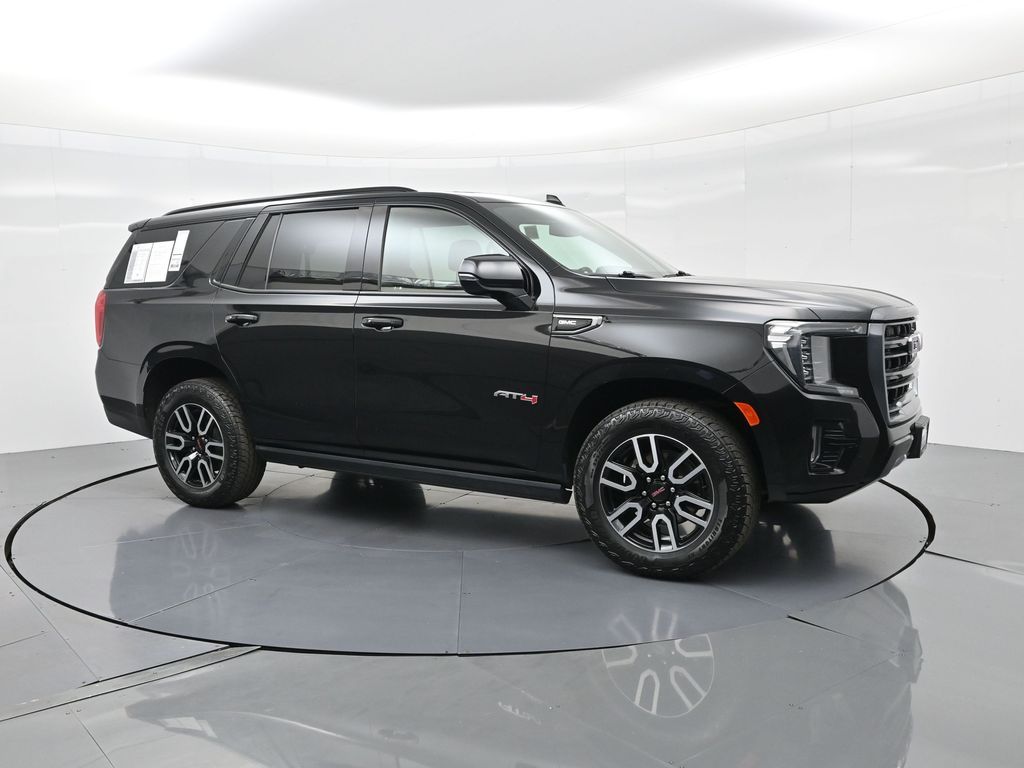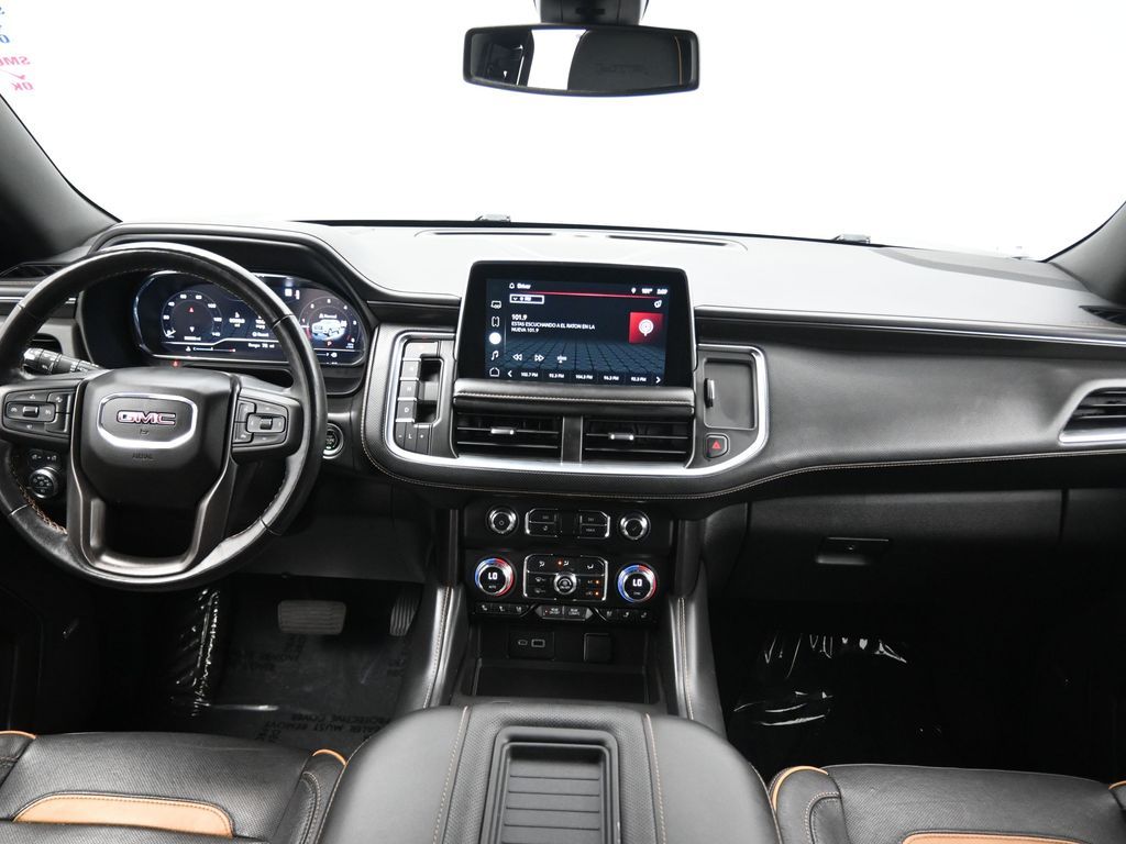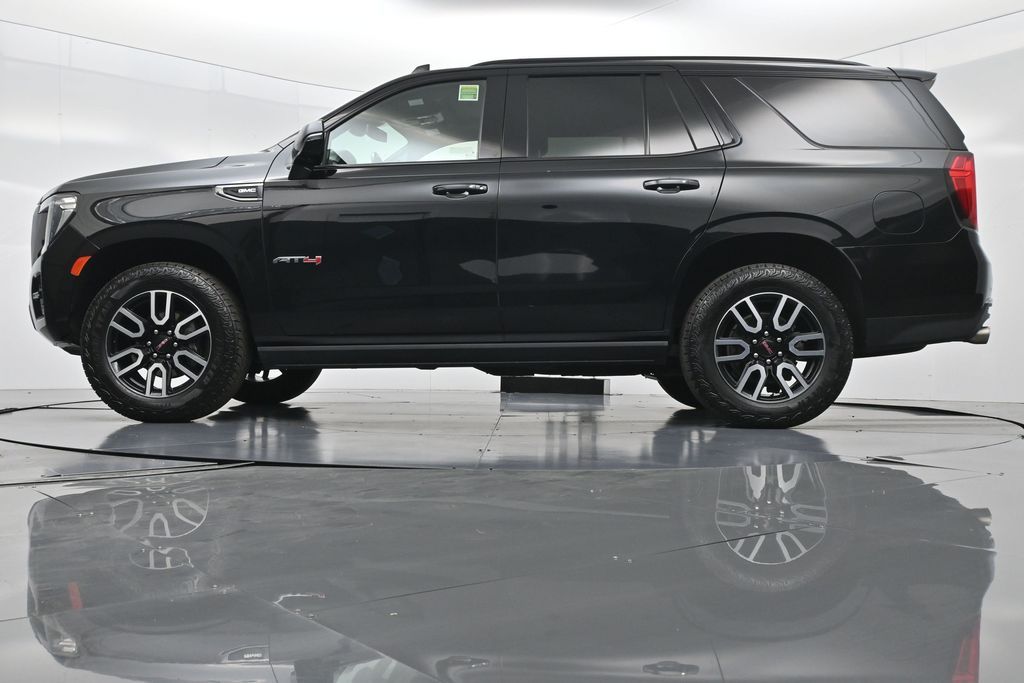 This 2022 GMC Yukon AT4 in striking Onyx Black is a premium full-size SUV that combines off-road capability, refined luxury, and advanced technology. Powered by the robust 6.2L EcoTec3 V8 paired with a smooth 10-speed automatic transmission, it delivers confident acceleration, 4WD capability, and the strength to handle towing and challenging terrain with ease. The AT4 trim is designed for adventure with a mechanical limited-slip differential, two-speed transfer case, hill descent control, skid plates, and 20-inch aluminum wheels with all-terrain tires. Exterior highlights include LED headlamps and taillamps, a bold black and chrome grille, recovery hooks, a power liftgate, and a panoramic power sunroof for open-air driving enjoyment. Inside, the Jet Black interior features heated and ventilated front bucket seats, heated second-row outboard seats, a heated steering wheel, and premium perforated leather upholstery. The 10.2-inch GMC Premium Infotainment System with Google Built-In offers navigation, wireless Apple CarPlay, Android Auto, Bluetooth, SiriusXM, and a premium Bose audio system. Added features like a head-up display, HD surround vision, rear pedestrian alert, and a rear camera mirror enhance safety and convenience. With 32,665 miles and a clean CARFAX history showing regular maintenance, this Yukon AT4 is well-cared-for and ready for its next chapter. Perfect for those who need the space and versatility of a three-row SUV without sacrificing luxury or off-road readiness, this Yukon AT4 offers the capability to handle rugged trails and the refinement to make every mile comfortable. Experience the premium all-terrain difference today.