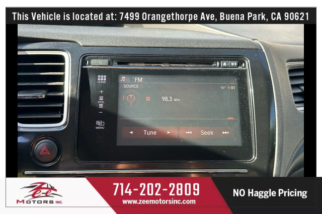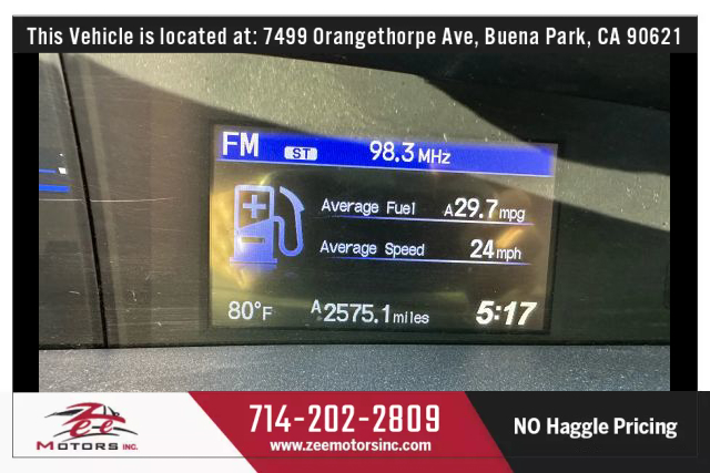 THIS VEHICLE IS LOCATED AT OUR BUENA PARK LOCATION: 7479 ORANGETHORPE AVE, BUENA PARK CA 90621. Please Call us at 657-255-4555 or 714-202-2809 or email us at BUENAPARK@ZEEMOTORSINC.COM To Check Availability. * 2-Owners. * Clean Title. * Clean Carfax. * No Accidents.* Very Well Maintained Vehicle, Service records available on CARFAX. * Very Clean Inside and Outside.* Passed Safety inspection and Smog Check.Attention to all buyers: All special prices are cash price and it does not include sales tax, license and registration fee, documentation fee, smog fee or any dealer add-ons / accessories. Additional financing charges may apply on approved credit. While great effort is made to ensure the accuracy of the information provided on this site, errors do occur so please verify information with a team member. This is easily done by contacting us via phone or email (Call or Text 657-346-8544) **** THIS VEHCILE IS EQUIPPED WITH ANTI-THEFT DEVICE AND GPS TRACKING SYSTEM ****All our Vehicles are sold as is where is with no warranty expressed written or implied. The Seller shall not be responsible for the correct description authenticity genuineness or defects herein and makes no warranty in connection therewith. No allowance or set a side will be made on account of any incorrectness imperfection defect or damage. Any descriptions or representations are for identification purposes only and are not to be construed as a warranty of any type. It is the responsibility of the buyer to have thoroughly inspected the vehicle and to have satisfied himself or herself as to the condition and value and to buy based upon that judgement solely. The seller shall and will make every reasonable effort to disclose any known defects associated with this vehicle at the buyer's request prior to the close of sale. Seller assumes no responsibility for any repairs regardless of any oral statements about the vehicle.