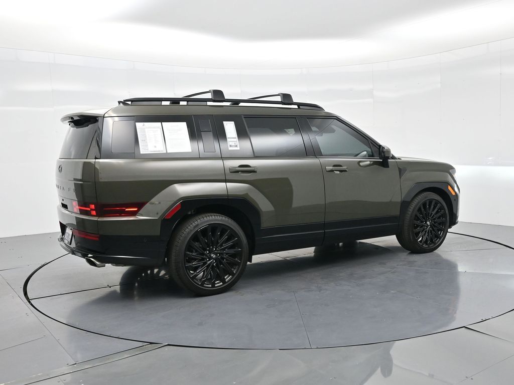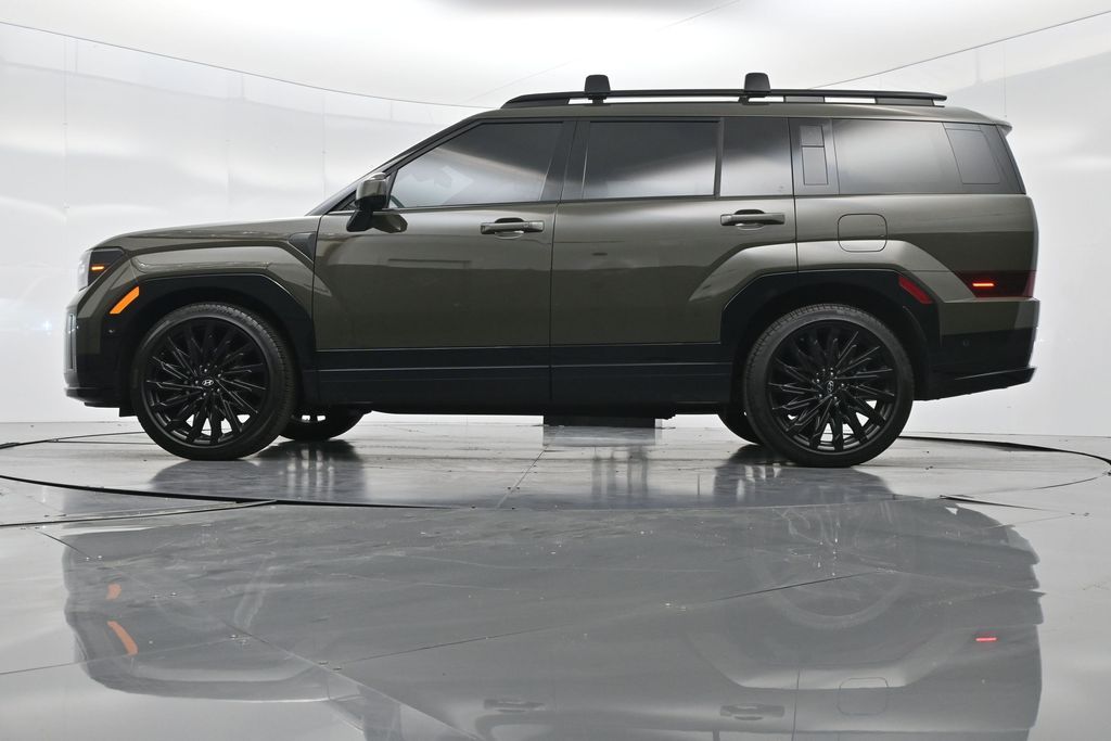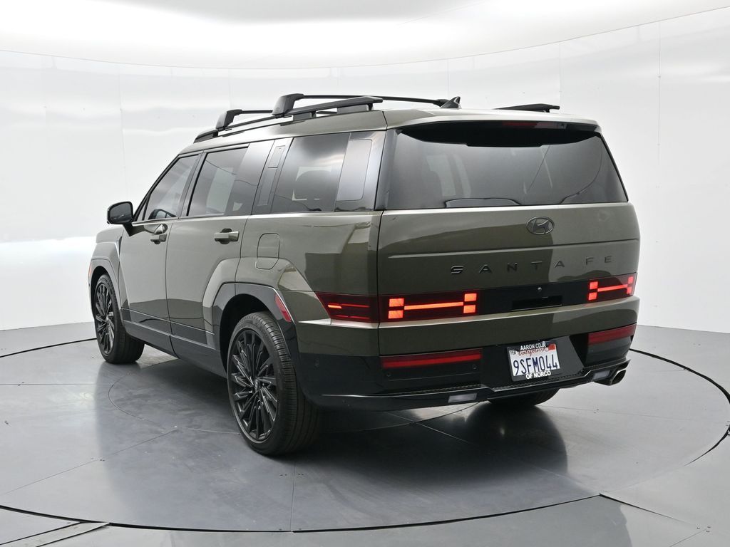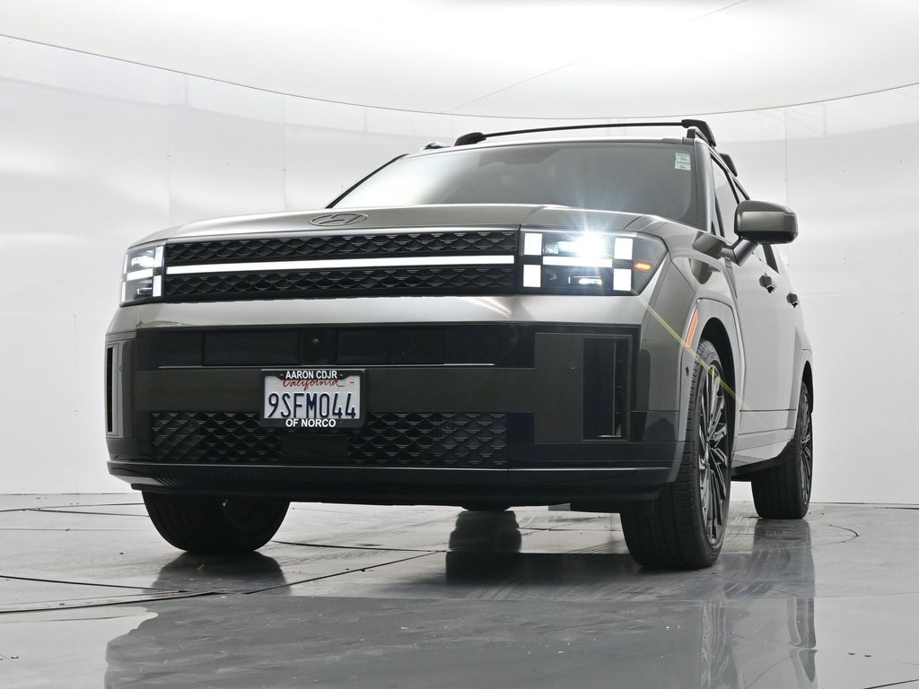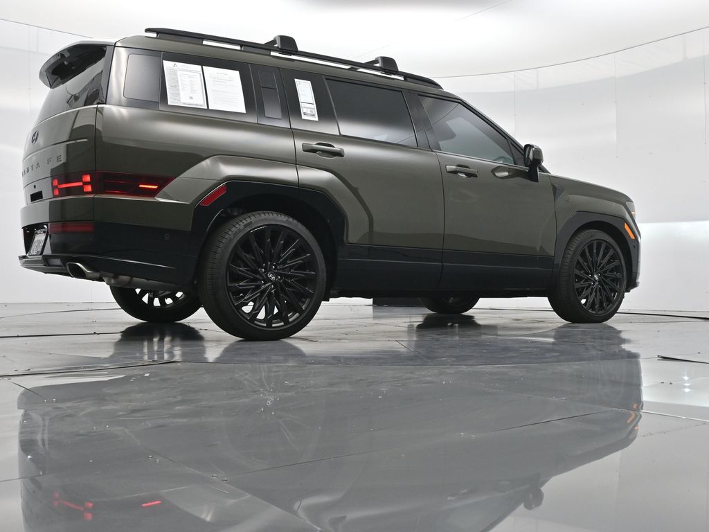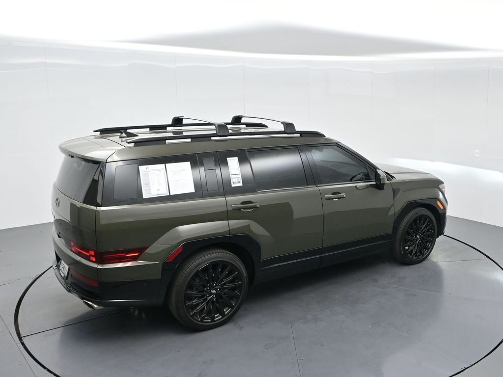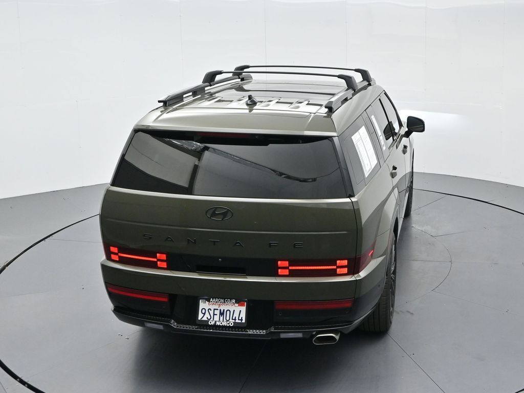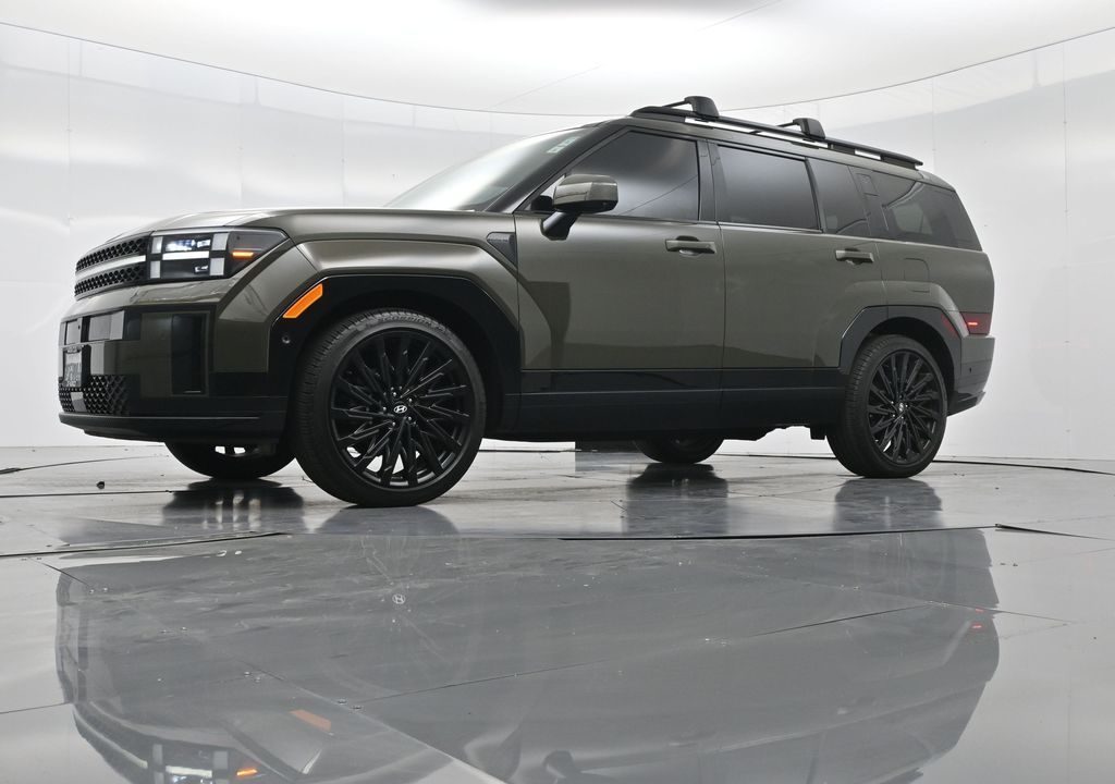 Experience next-level comfort, capability, and style in this 2025 Hyundai Santa Fe Calligraphy AWD, finished in elegant Rockwood Green with a Black Nappa leather interior and driven just 11,738 miles. Powered by a turbocharged 2.5 liter four cylinder engine paired with an eight speed dual clutch automatic transmission and HTRAC all wheel drive, this Santa Fe delivers 281 horsepower with refined performance and excellent traction, while achieving a combined EPA rating of 23 miles per gallon. As Hyundais flagship trim, the Calligraphy is loaded with premium features including quilted leather seating, heated and ventilated front seats, heated second row captains chairs, dual wireless phone chargers, ambient interior lighting, a panoramic sunroof, and a 12.3 inch touchscreen infotainment system with navigation, Apple CarPlay, Android Auto, and Harman Kardon premium audio. Additional highlights include a digital rearview mirror, head up display, remote smart parking assist, and a full digital gauge cluster. Safety is enhanced by Hyundai SmartSense with forward collision avoidance, blind spot view monitor, surround view camera, adaptive cruise control, lane keeping assist, and rear cross traffic alert. This one owner, personal use SUV boasts a clean Carfax with regular oil changes and is still under Hyundais 10 year 100,000 mile powertrain warranty. Designed with thoughtful details like a UV sanitizer compartment, hands free smart lift-gate, rain sensing wipers, and 21 inch alloy wheels, this Santa Fe Calligraphy blends sophistication, technology, and everyday practicality for drivers who demand luxury without compromise.