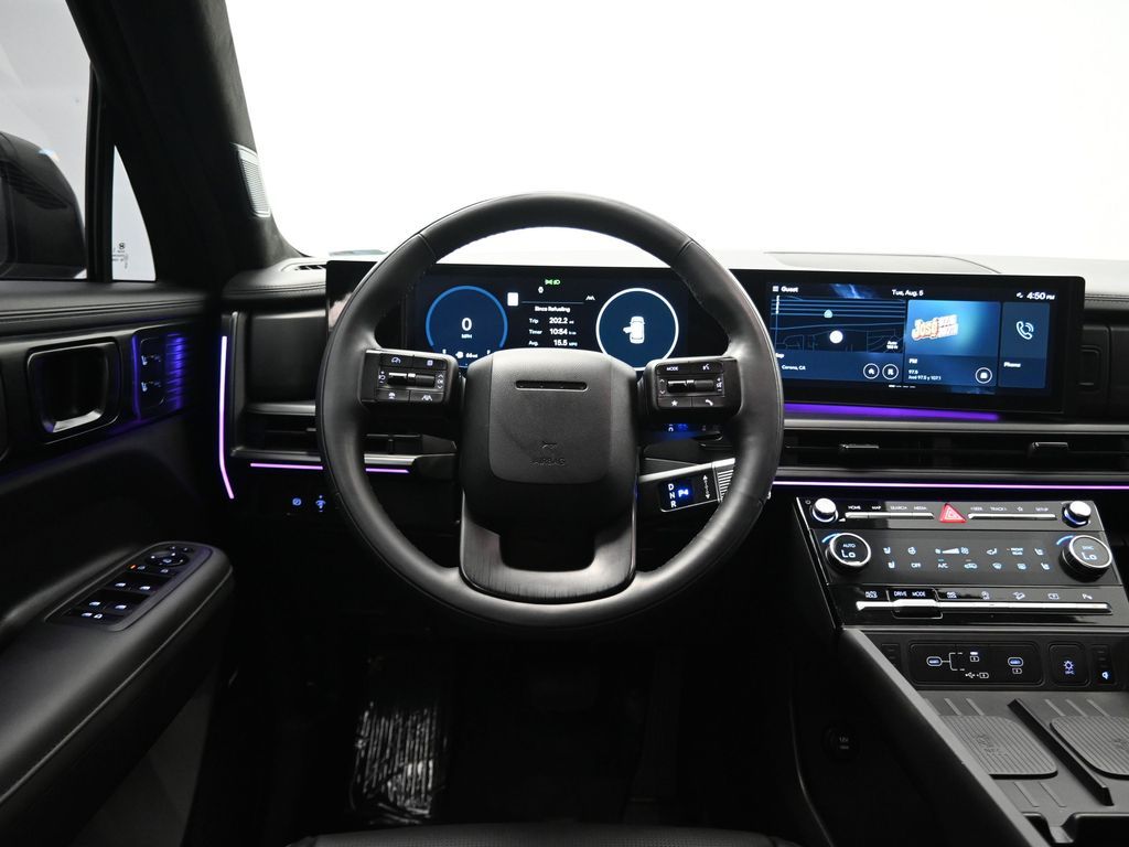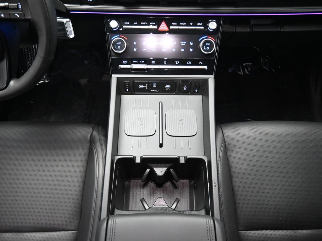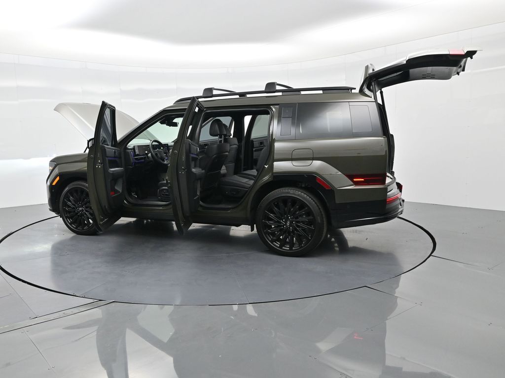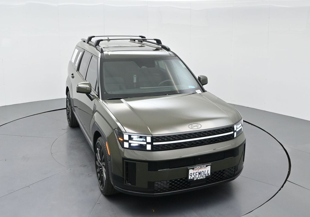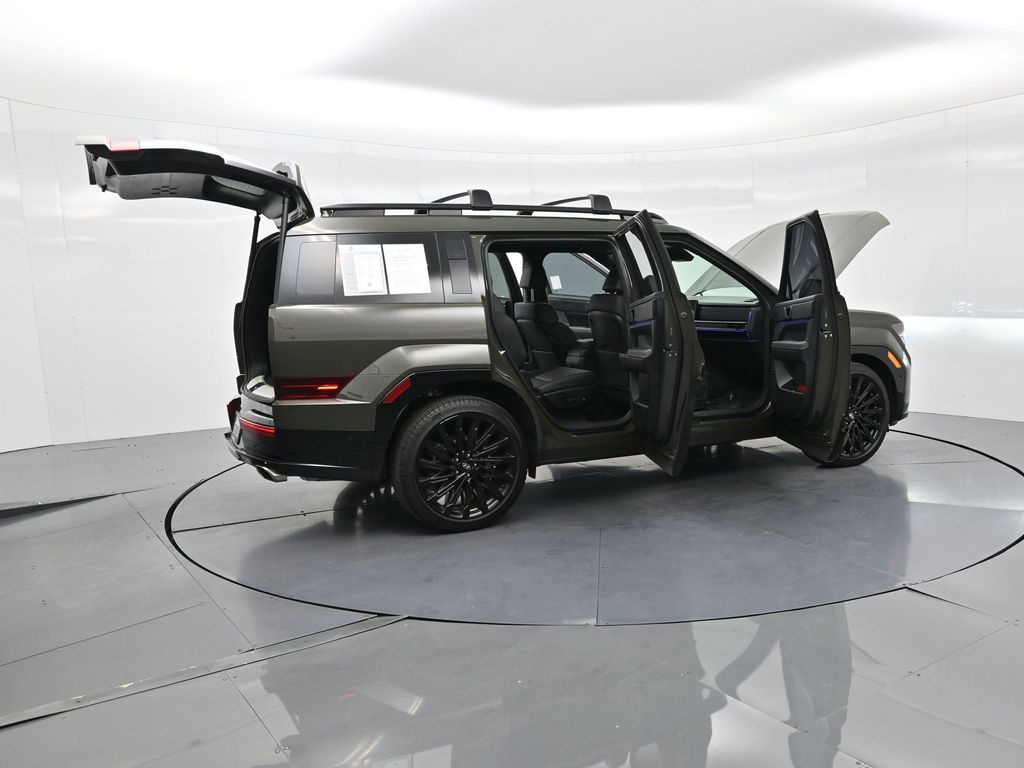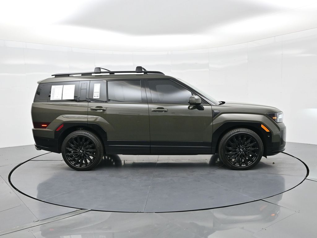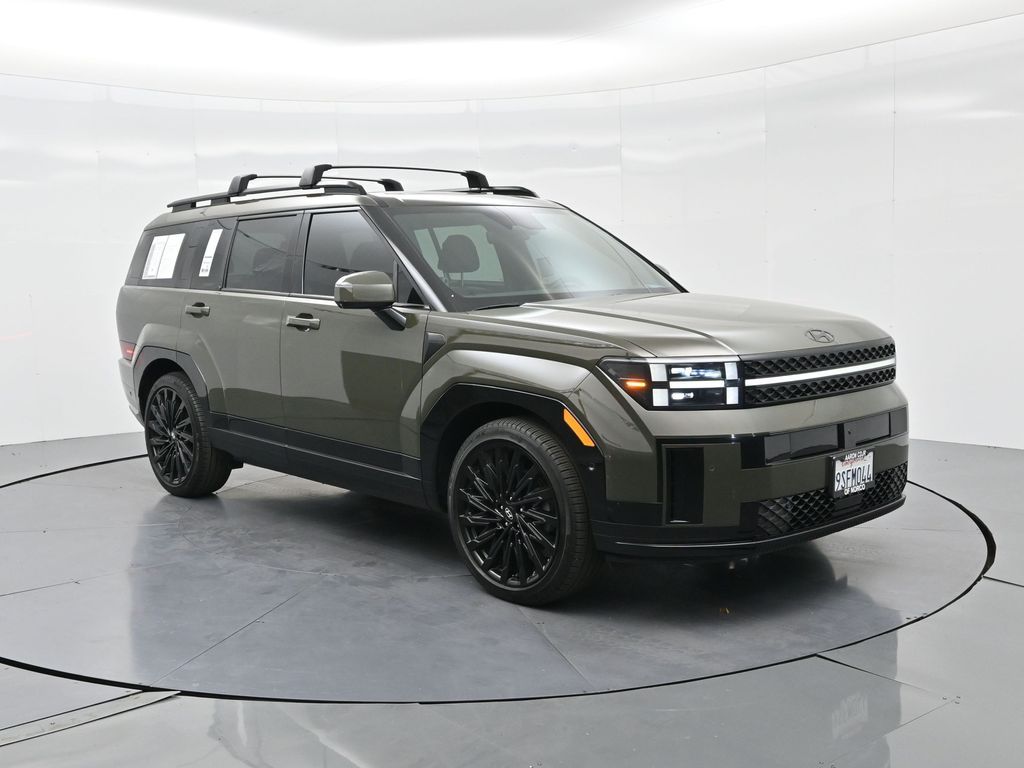 Experience next-level comfort, capability, and style in this 2025 Hyundai Santa Fe Calligraphy AWD, finished in elegant Rockwood Green with a Black Nappa leather interior and driven just 11,738 miles. Powered by a turbocharged 2.5 liter four cylinder engine paired with an eight speed dual clutch automatic transmission and HTRAC all wheel drive, this Santa Fe delivers 281 horsepower with refined performance and excellent traction, while achieving a combined EPA rating of 23 miles per gallon. As Hyundais flagship trim, the Calligraphy is loaded with premium features including quilted leather seating, heated and ventilated front seats, heated second row captains chairs, dual wireless phone chargers, ambient interior lighting, a panoramic sunroof, and a 12.3 inch touchscreen infotainment system with navigation, Apple CarPlay, Android Auto, and Harman Kardon premium audio. Additional highlights include a digital rearview mirror, head up display, remote smart parking assist, and a full digital gauge cluster. Safety is enhanced by Hyundai SmartSense with forward collision avoidance, blind spot view monitor, surround view camera, adaptive cruise control, lane keeping assist, and rear cross traffic alert. This one owner, personal use SUV boasts a clean Carfax with regular oil changes and is still under Hyundais 10 year 100,000 mile powertrain warranty. Designed with thoughtful details like a UV sanitizer compartment, hands free smart lift-gate, rain sensing wipers, and 21 inch alloy wheels, this Santa Fe Calligraphy blends sophistication, technology, and everyday practicality for drivers who demand luxury without compromise.