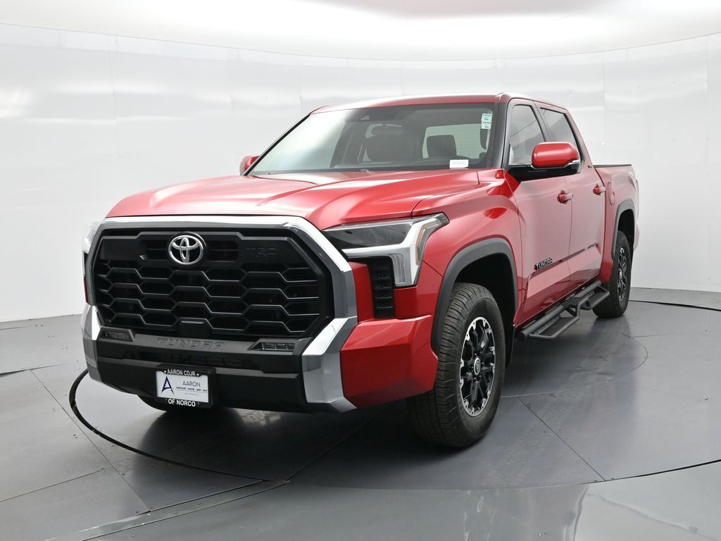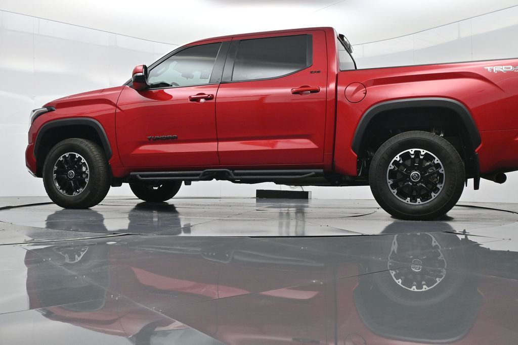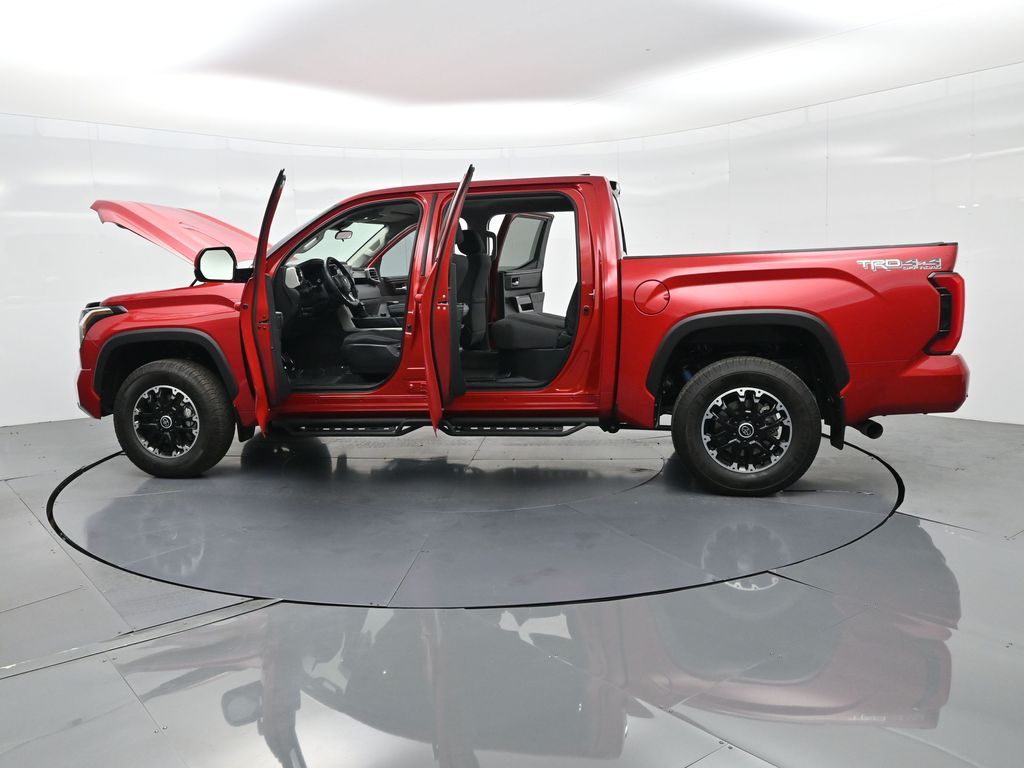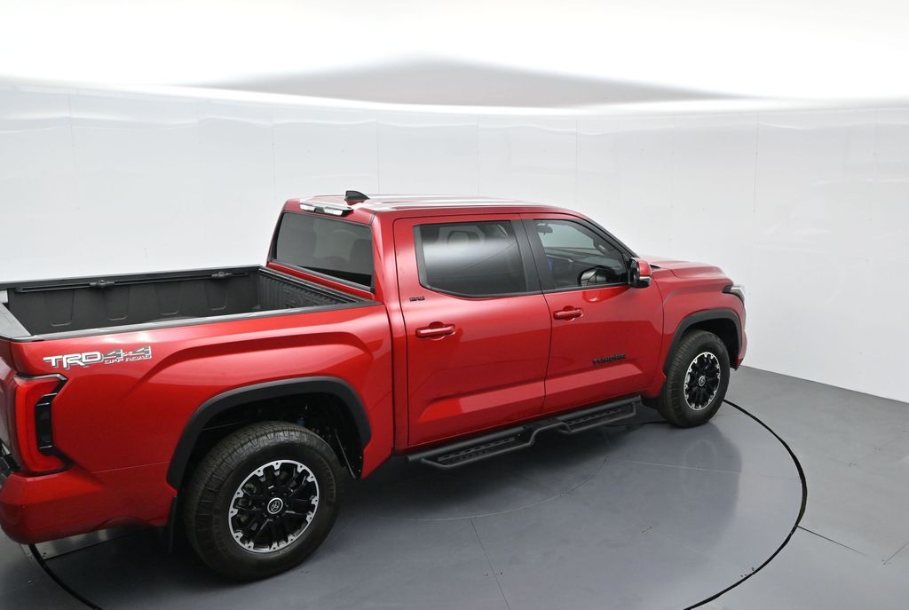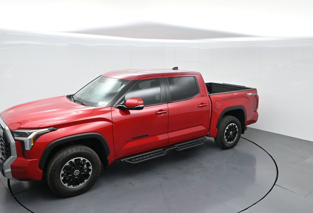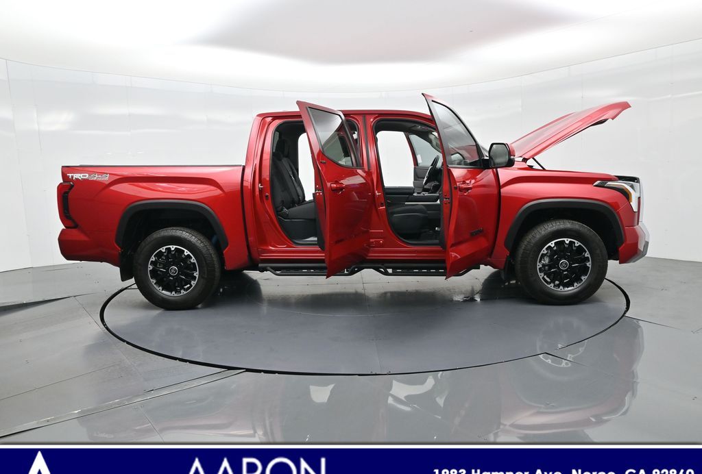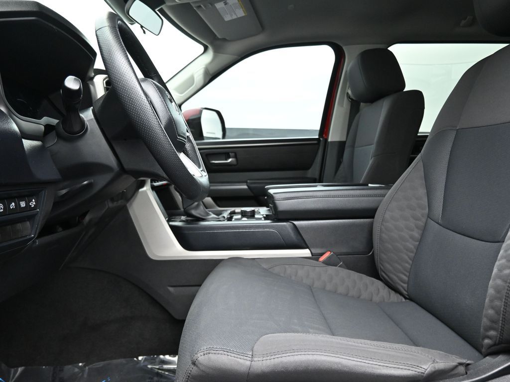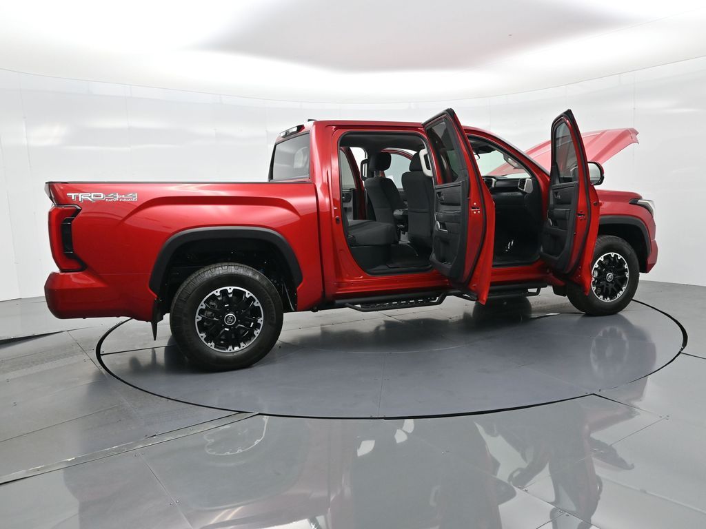 Commanding in presence and capability, this 2024 Toyota Tundra SR5 CrewMax 4x4 blends powerful performance with modern utility, showing just 18,920 miles and finished in striking Supersonic Red with a clean Black fabric interior. Under the hood, the 3.4 liter twin turbo V6 engine delivers a robust 389 horsepower, paired with a refined 10 speed electronically controlled automatic transmission and part time four wheel drive for confident performance on pavement or trail. This Tundra is equipped with the popular SR5 Convenience Package and TRD Off Road Package, adding upgraded shocks, skid plates, off road tuned suspension, and 18 inch alloy wheels wrapped in all terrain tires for serious trail readiness. Comfort meets durability inside the spacious CrewMax cabin, featuring power adjustable front seats, a leather wrapped heated steering wheel, rear under seat storage, rear seat vents, dual zone automatic climate control, and all weather floor liners. Technology is seamlessly integrated with the Uconnect 8 inch touchscreen infotainment system that includes Bluetooth, smartphone compatibility, voice control, SiriusXM radio, integrated backup camera, and multiple USB charge ports to keep devices powered. The off road package further enhances safety and control with hill descent control, Multi Terrain Select, Crawl Control, and an electronically controlled transfer case with locking rear differential. Additional features include a spray in bedliner, power sliding rear window, black exterior accents, LED headlights and fog lamps, and a factory installed tow package with hitch and trailer sway control, giving you both rugged towing capacity and daily drivability. Backed by a clean one owner Carfax history with consistent service and no accidents reported, this personal use Tundra represents an outstanding value with low miles and proven reliability. Built with Toyota's reputation for durability and engineered for the real world, this 2024 Tundra SR5 is ready to handle your toughest jobs or next weekend escape with confidence. Come see why this full size pickup continues to set the benchmark for strength, technology, and everyday practicality.