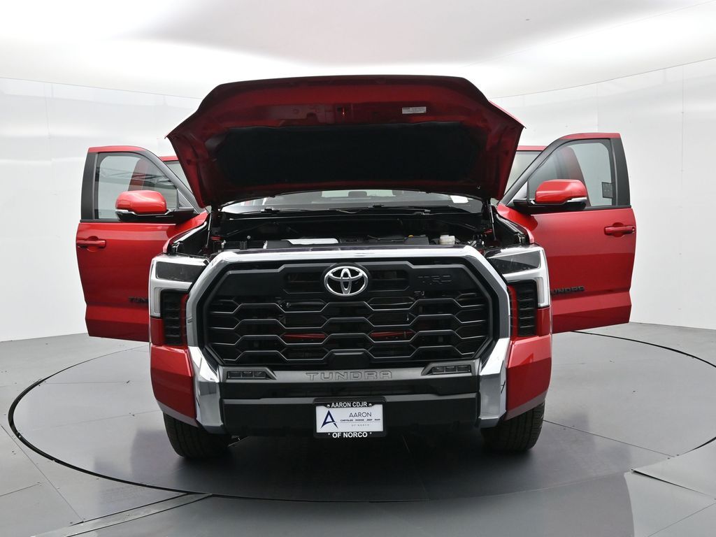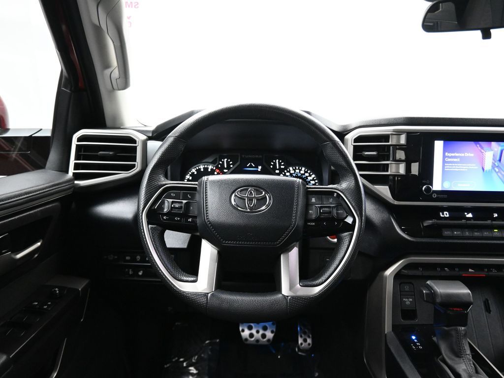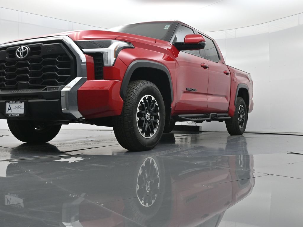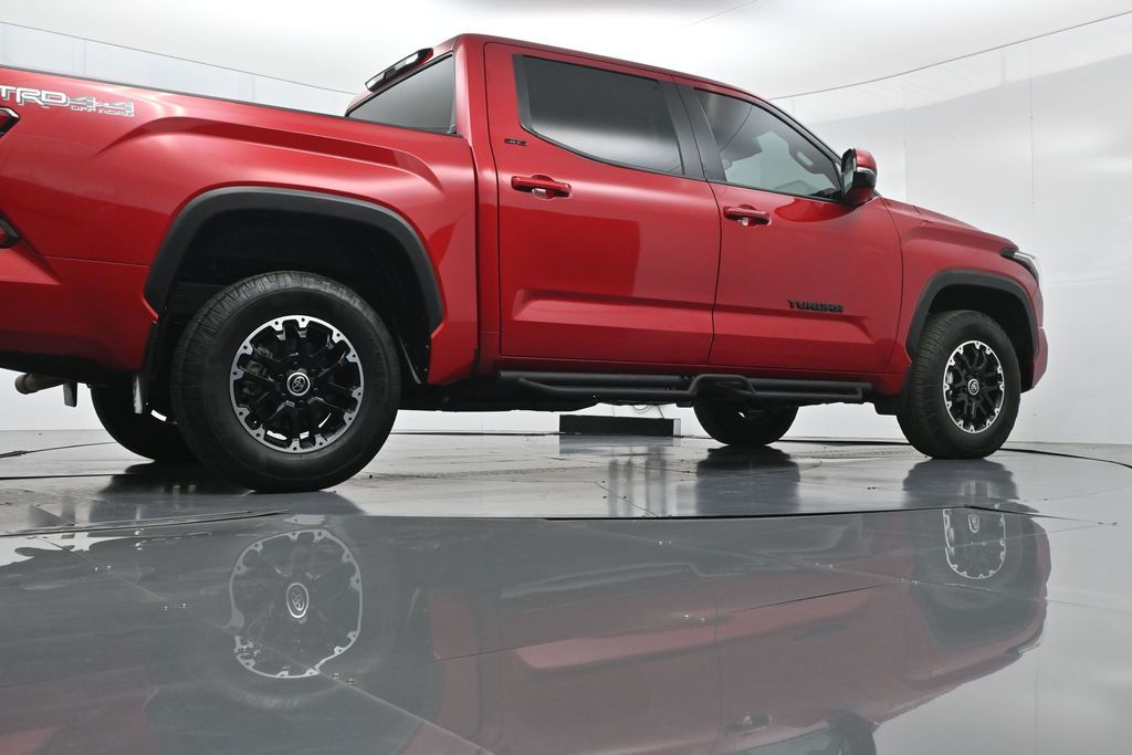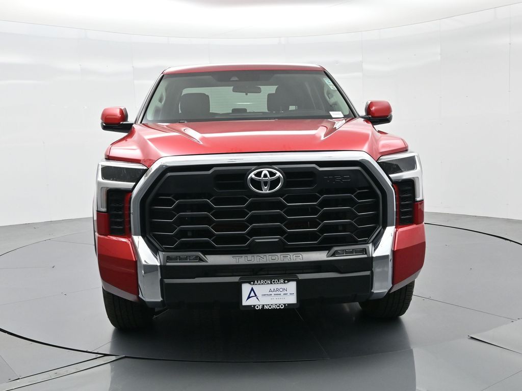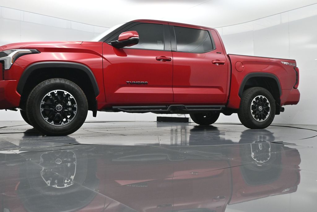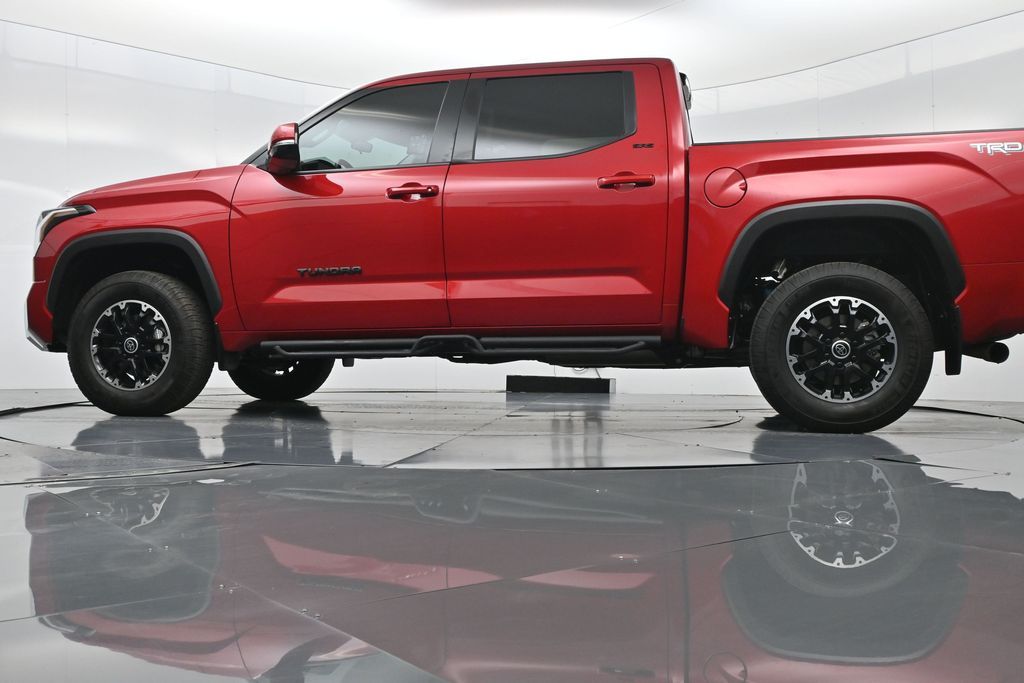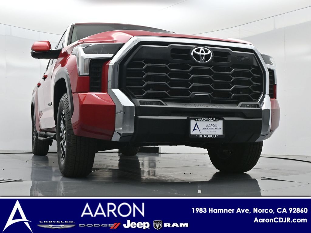 Commanding in presence and capability, this 2024 Toyota Tundra SR5 CrewMax 4x4 blends powerful performance with modern utility, showing just 18,920 miles and finished in striking Supersonic Red with a clean Black fabric interior. Under the hood, the 3.4 liter twin turbo V6 engine delivers a robust 389 horsepower, paired with a refined 10 speed electronically controlled automatic transmission and part time four wheel drive for confident performance on pavement or trail. This Tundra is equipped with the popular SR5 Convenience Package and TRD Off Road Package, adding upgraded shocks, skid plates, off road tuned suspension, and 18 inch alloy wheels wrapped in all terrain tires for serious trail readiness. Comfort meets durability inside the spacious CrewMax cabin, featuring power adjustable front seats, a leather wrapped heated steering wheel, rear under seat storage, rear seat vents, dual zone automatic climate control, and all weather floor liners. Technology is seamlessly integrated with the Uconnect 8 inch touchscreen infotainment system that includes Bluetooth, smartphone compatibility, voice control, SiriusXM radio, integrated backup camera, and multiple USB charge ports to keep devices powered. The off road package further enhances safety and control with hill descent control, Multi Terrain Select, Crawl Control, and an electronically controlled transfer case with locking rear differential. Additional features include a spray in bedliner, power sliding rear window, black exterior accents, LED headlights and fog lamps, and a factory installed tow package with hitch and trailer sway control, giving you both rugged towing capacity and daily drivability. Backed by a clean one owner Carfax history with consistent service and no accidents reported, this personal use Tundra represents an outstanding value with low miles and proven reliability. Built with Toyota's reputation for durability and engineered for the real world, this 2024 Tundra SR5 is ready to handle your toughest jobs or next weekend escape with confidence. Come see why this full size pickup continues to set the benchmark for strength, technology, and everyday practicality.