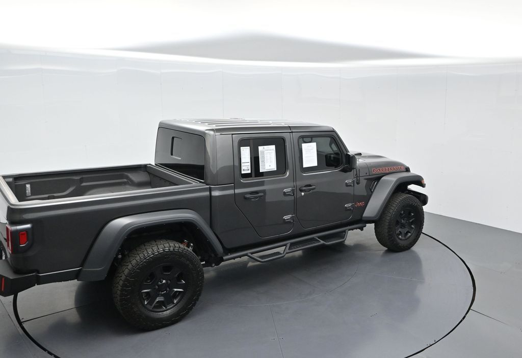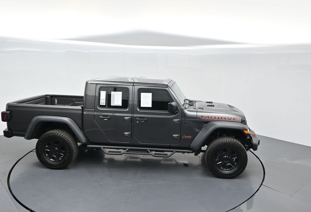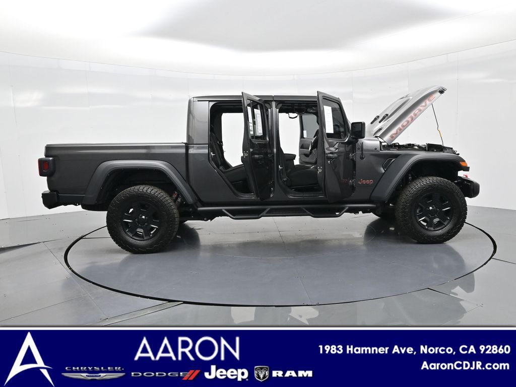 Built for high-speed desert running and off-road dominance, this 2023 Jeep Gladiator Mojave in Granite Crystal Metallic Clearcoat offers unmatched capability with the rugged versatility of a pickup. Powered by a 3.6L V6 engine paired with an 8-speed automatic transmission and a 4.10 rear axle ratio, its engineered for strength and precision over challenging terrain. The Mojave trim stands out with heavy-duty suspension featuring FOX internal bypass shocks, reinforced frame components, locking rear differential, and high-clearance fender flares over LT285/70R17 all-terrain tires mounted on black aluminum wheels. Off-road credentials are backed by Jeeps Command-Trac 4x4 system, skid plates, rock rails, and a Desert Rated badge signifying enhanced durability in extreme heat, sand, and dust. Inside, the cabin blends function and comfort with premium cloth bucket seats with sport bolsters, heated front seats, heated steering wheel, Uconnect 4C NAV with 8.4-inch touchscreen, Apple CarPlay, Android Auto, Alpine premium audio, and dual-zone automatic climate control. Added features include the Cold Weather Group, Mopar spray-in bedliner, body-color 3-piece hard top, remote start, rear sliding window, and Selec-Speed control for confident descents. With only 19,949 miles, a clean 1-owner CARFAX history, and well-documented maintenance, this Gladiator Mojave is in excellent condition and still under factory warranty. Perfect for those who want pickup practicality with the heart of a desert racer, this Gladiator Mojave delivers the capability, durability, and performance to conquer the toughest terrain. Come take it for a drive and see where it can take you next.