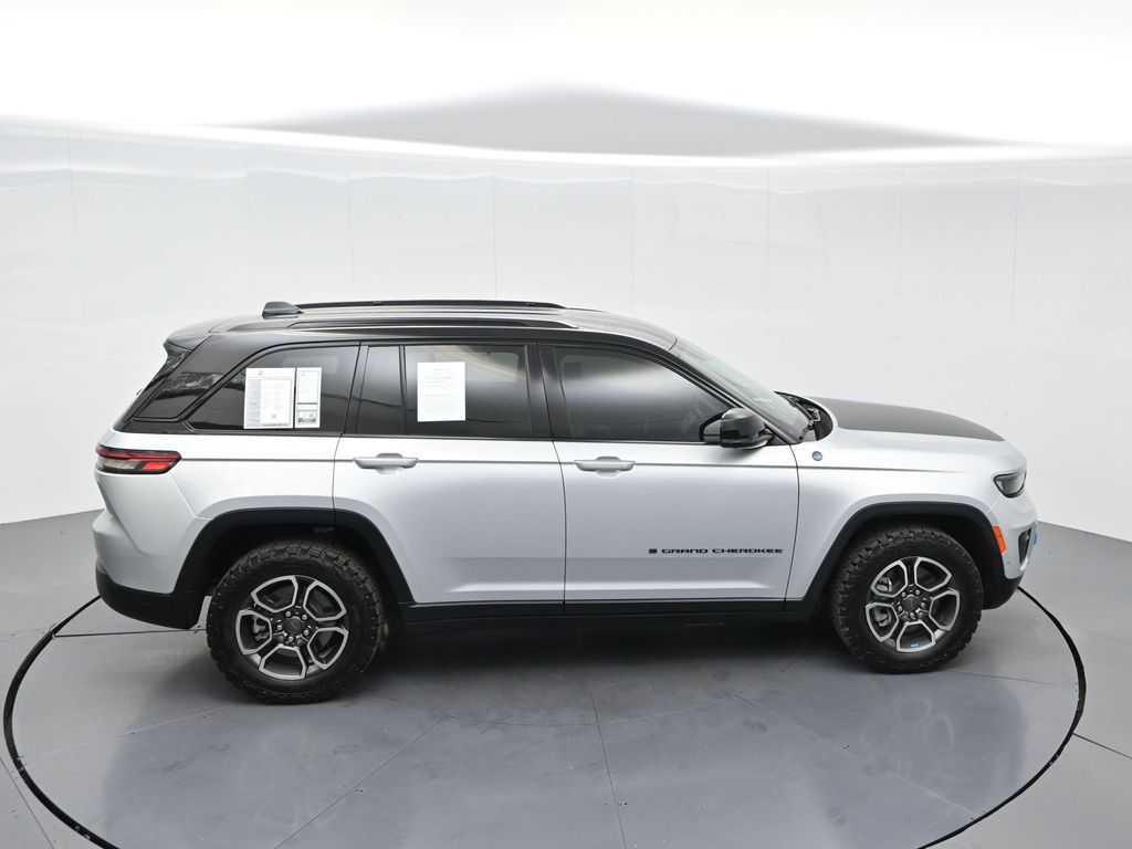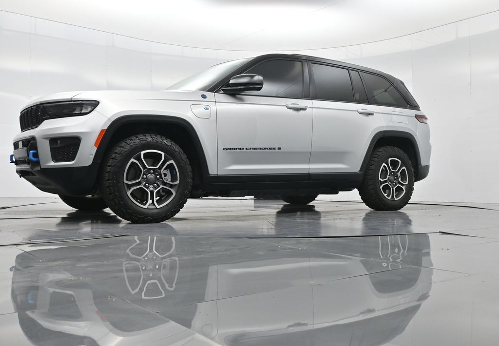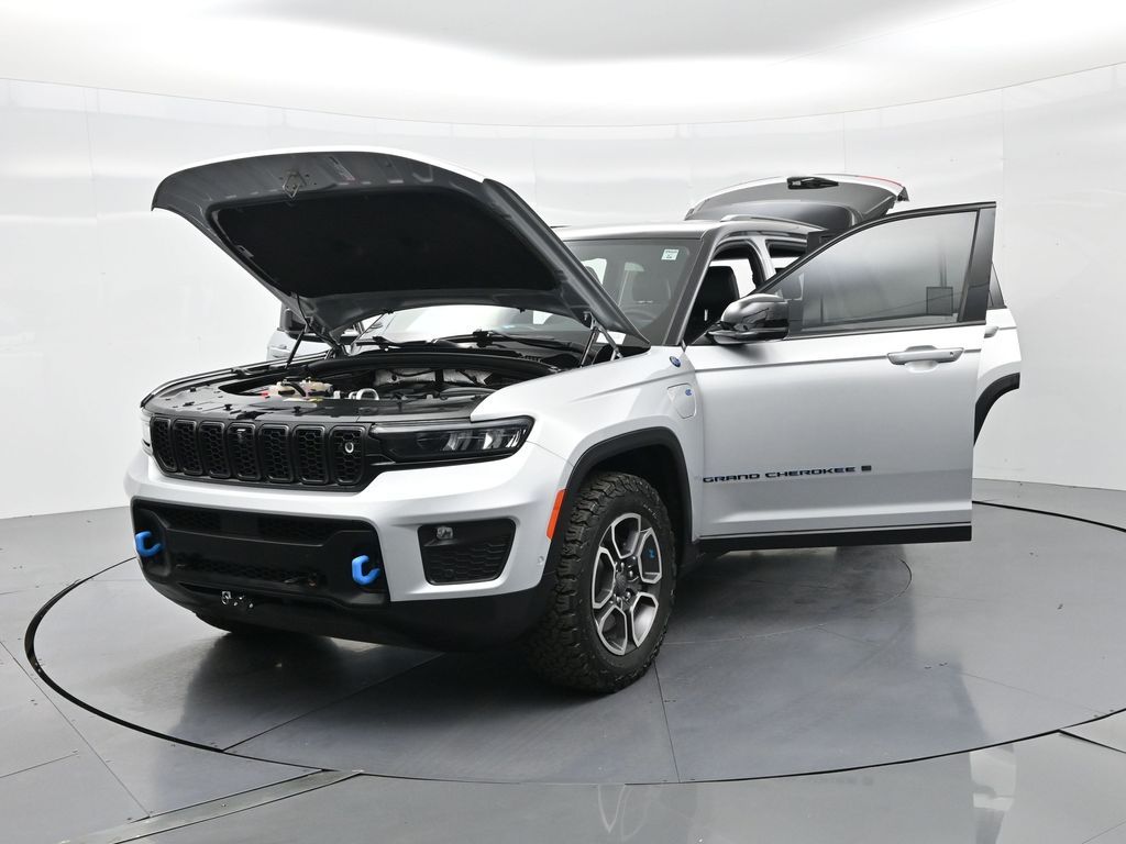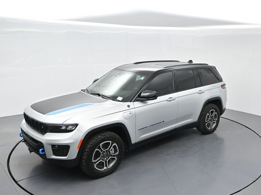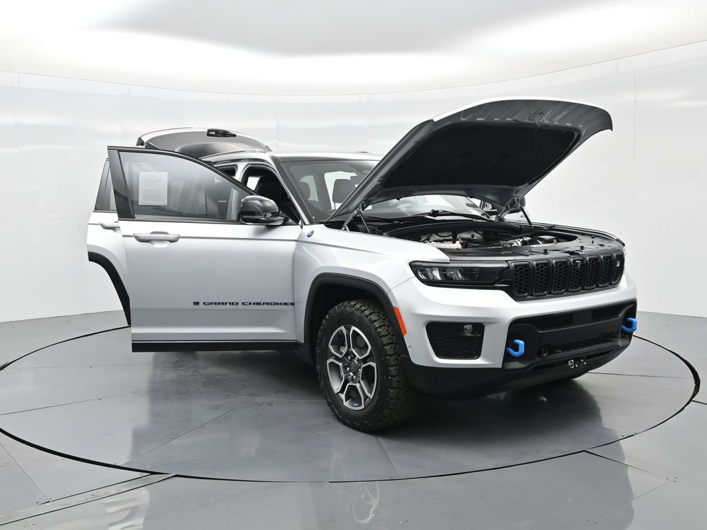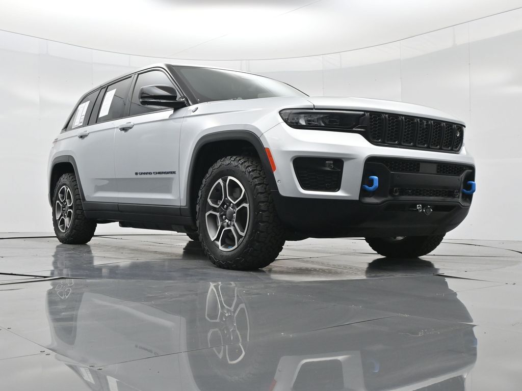This 2023 Jeep Grand Cherokee Trailhawk 4xe in striking Silver Zynith is the ultimate combination of rugged off-road capability, premium comfort, and advanced plug-in hybrid technology. Powered by a 2.0L DOHC turbocharged PHEV engine paired with an 8-speed automatic transmission and Jeeps legendary Quadra-Drive II 4x4 system, it delivers impressive torque, confident all-terrain performance, and the efficiency of electric-only driving for short trips. The Trailhawk trim is purpose-built for adventure, featuring front disconnecting sway bar, Selec-Terrain traction management, Quadra-Lift air suspension, skid plates, red tow hooks, and 265/60R18 all-terrain tires on machined/painted aluminum wheels. Off-road readiness is further enhanced with hill descent control, Selec-Speed control, and Jeeps Trail Rated durability. Inside, the Grand Cherokee Trailhawk pampers with a leather-trimmed interior, ventilated and heated front seats, heated rear seats, heated steering wheel, and a premium McIntosh audio system. The Uconnect 5 NAV system features a massive 10.1-inch display with navigation, Apple CarPlay, Android Auto, wireless charging pad, and a head-up display for key driving information. Additional highlights include a dual-pane panoramic sunroof, remote start, memory settings for the drivers seat and mirrors, adaptive cruise control, blind spot monitoring, rear cross path detection, surround-view camera, and night vision with pedestrian and animal detection. With only 18,842 miles, a clean 1-owner CARFAX history, and regular maintenance, this Trailhawk 4xe is in excellent condition and still under factory warranty. Combining trail-conquering capability, luxury appointments, and hybrid efficiency, this Grand Cherokee Trailhawk 4xe is ready to take you from city streets to remote trails with confidence and comfort. Experience it today!