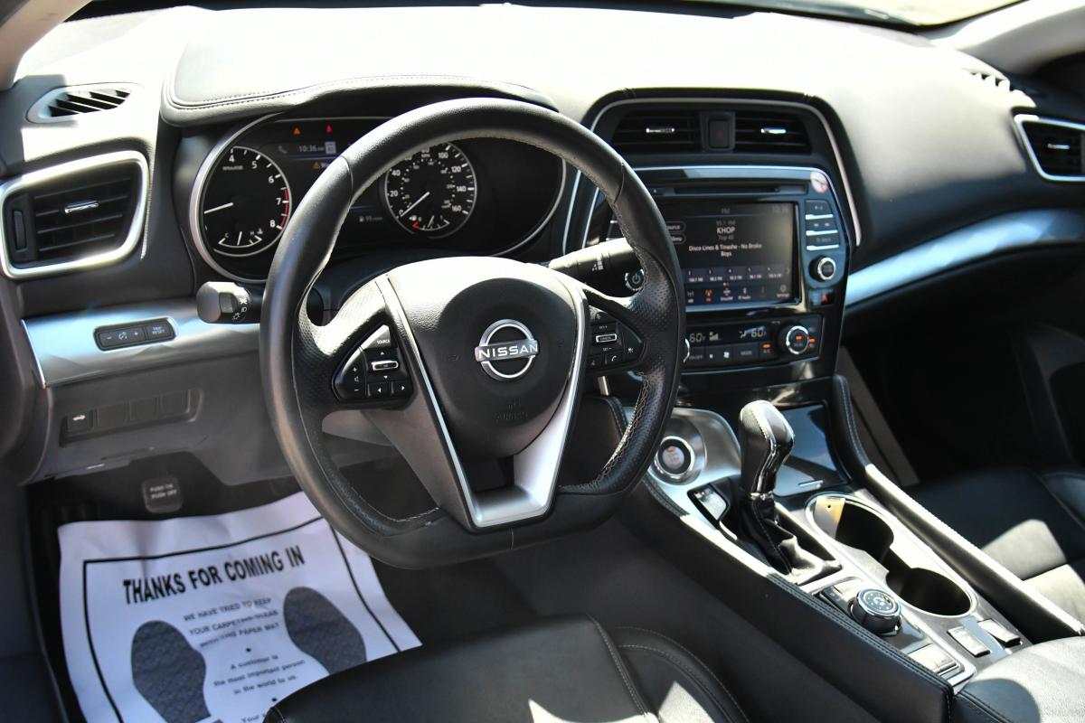 Boasts 30 Highway MPG and 20 City MPG! This Nissan Maxima boasts a Premium Unleaded V-6 3.5 L/213 engine powering this Variable transmission. SUPER BLACK, CHARCOAL, LEATHER-APPOINTED SEAT TRIM, [L92] FLOOR MAT GROUP -inc: Floor Mats, Trunk Mat, Bag Hooks, Trunk Net, First Aid Kit.*This Nissan Maxima Comes Equipped with These Options *Window Grid Diversity Antenna, Wheels: 18 Machined Aluminum Alloy, Valet Function, Turn-By-Turn Navigation Directions, Trunk Rear Cargo Access, Trip Computer, Transmission: Xtronic Continuously Variable (CVT), Transmission w/Driver Selectable Mode and Sequential Shift Control, Tires: 245/45R18 All-Season, Tire Pressure Monitoring System Tire Specific Low Tire Pressure Warning.