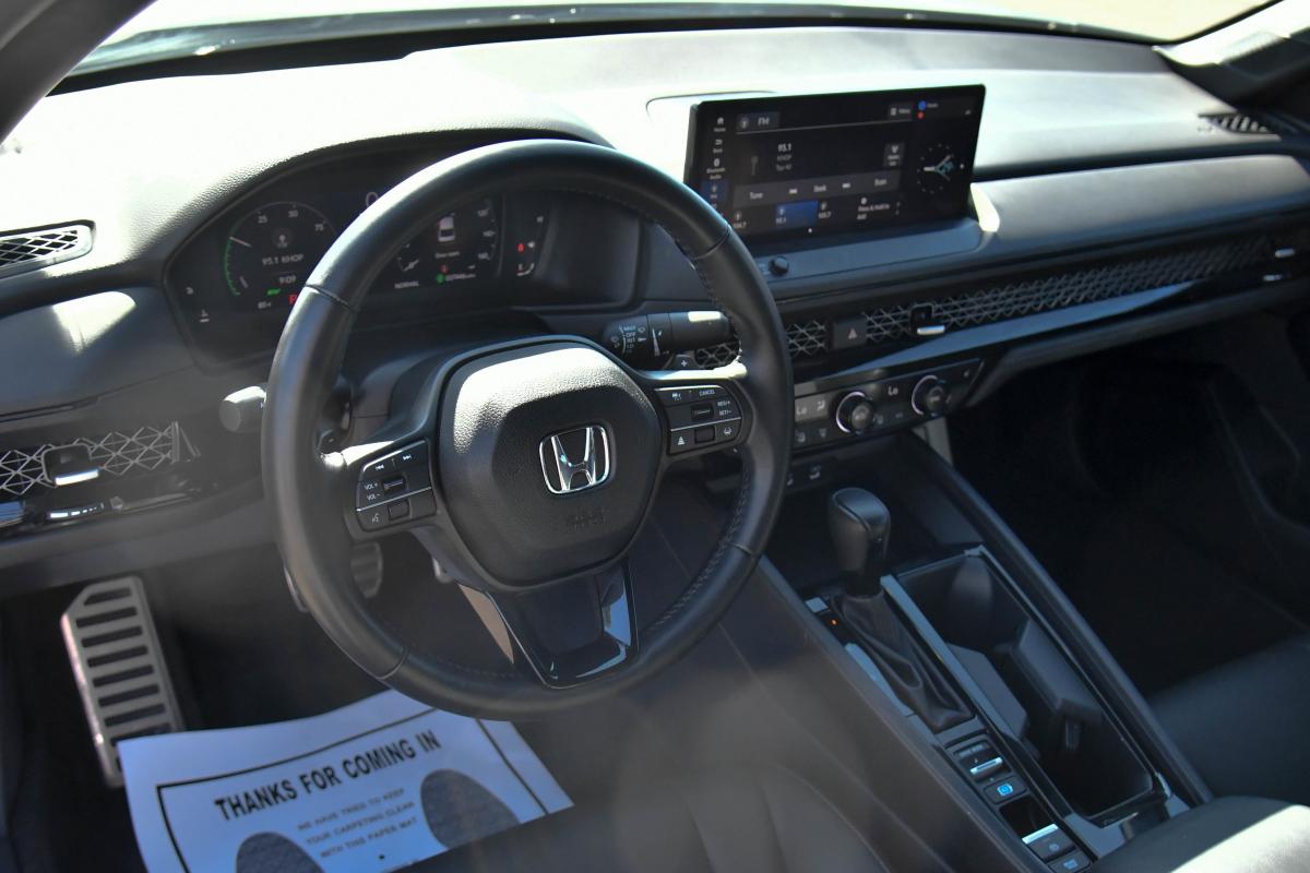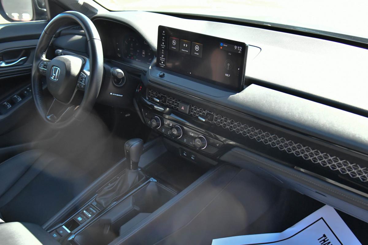 Delivers 41 Highway MPG and 46 City MPG! This Honda Accord Hybrid delivers a Gas/Electric I-4 2.0 L/122 engine powering this Variable transmission. Wheels: 19 x 8.5J Matte Berlina Black, Vehicle Stability Assist (VSA) Electronic Stability Control (ESC), Valet Function.*This Honda Accord Hybrid Features the Following Options *Trunk Rear Cargo Access, Trip Computer, Transmission: Electronic Continuously Variable -inc: econ, normal, sport and individual modes, Traffic Jam Assist, Tires: 235/40R19 96V AS, Tire Specific Low Tire Pressure Warning, Tire mobility kit, Strut Front Suspension w/Coil Springs, Speed Sensitive Variable Intermittent Wipers, Smart Device Remote Engine Start.