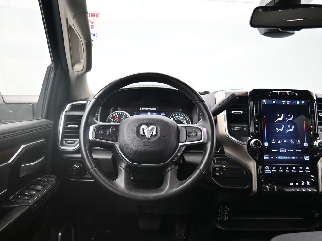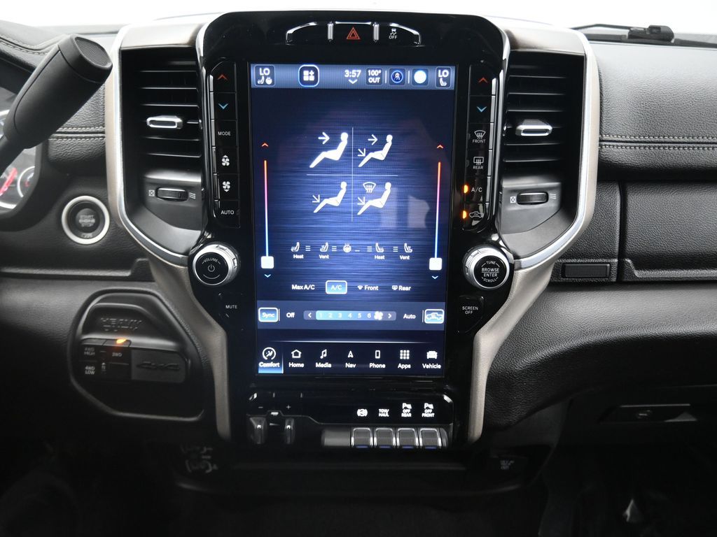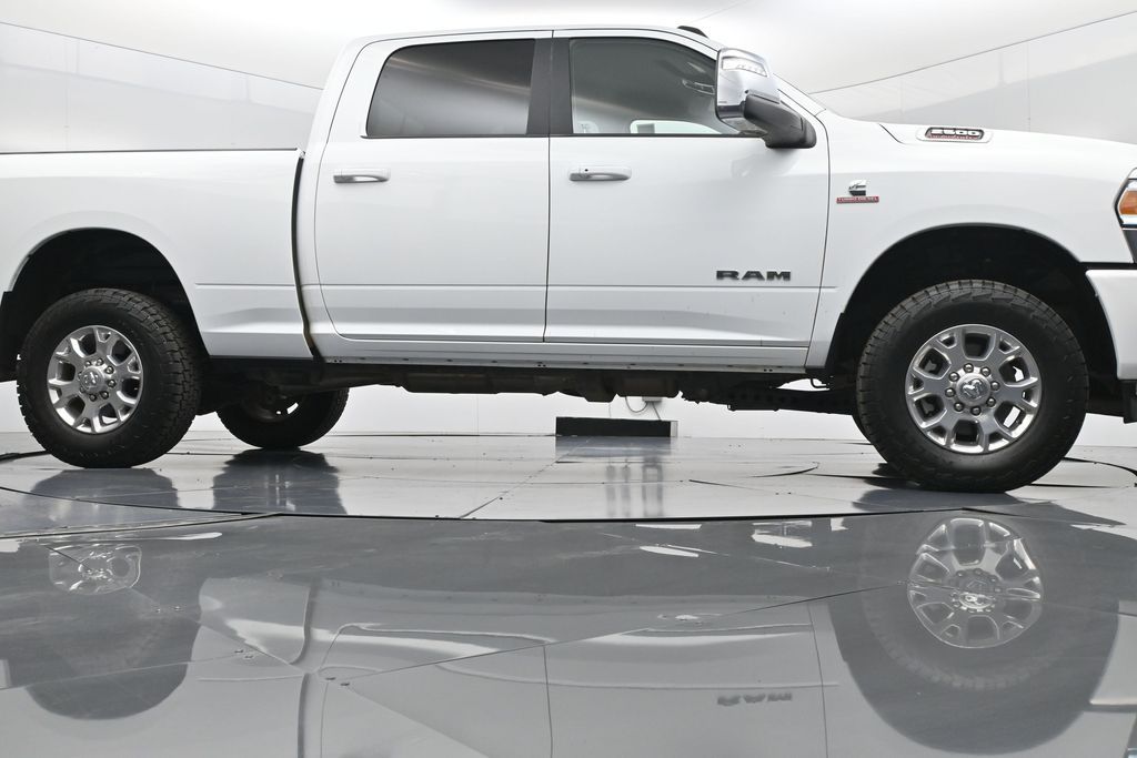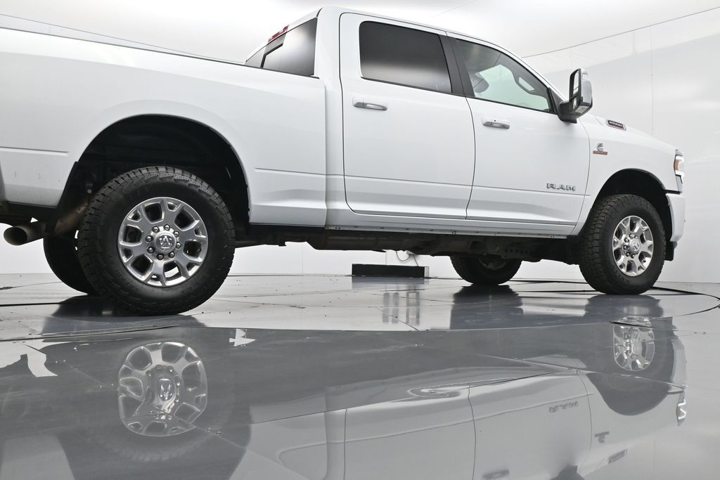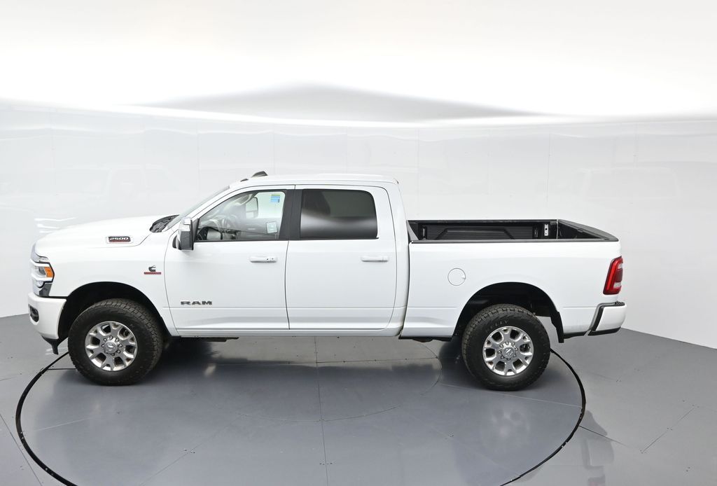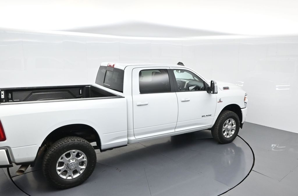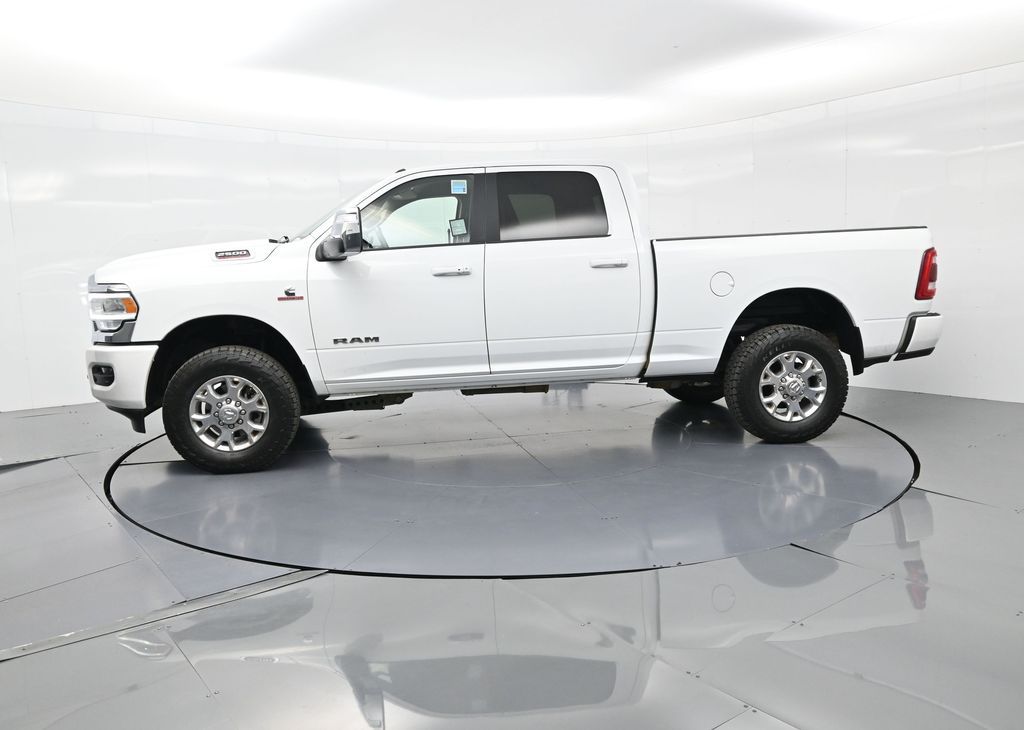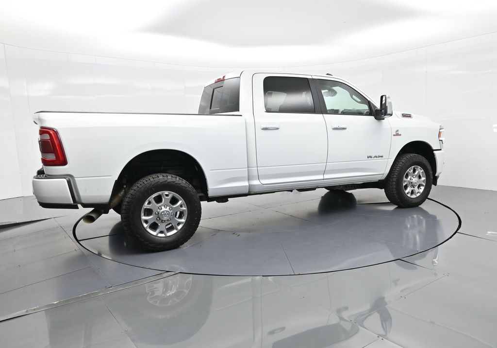This 2024 Ram 2500 Laramie Crew Cab 4x4 in Bright White Clearcoat is a heavy-duty pickup that blends uncompromising capability with refined comfort and advanced technology. Under the hood, the legendary 6.7L Cummins Turbo Diesel I6 engine paired with a 6-speed automatic transmission delivers immense torque for towing and hauling, supported by a Class V receiver hitch, integrated trailer brake controller, and trailer reverse guidance for confident handling of large loads. The 4x4 drivetrain, anti-spin rear differential, and HD suspension with front and rear stabilizer bars ensure traction and stability in all conditions. The Laramie trim exudes style and functionality with chrome bumpers and grille, LED lighting, tow hooks, power-folding trailer tow mirrors with memory, and 18-inch polished aluminum wheels wrapped in LT275/70R18 all-terrain tires. Inside, the cabin offers heated and ventilated leather-trimmed front seats, heated rear seats, a heated leather-wrapped steering wheel, dual-zone automatic climate control, power-adjustable pedals with memory, and a power driver seat with lumbar support. The Uconnect 12-inch touchscreen infotainment system includes Apple CarPlay, Android Auto, Bluetooth, navigation, and premium Alpine audio. Convenience is enhanced with remote start, keyless enter n go, multiple USB and 115V outlets, and abundant storage options, including rear under-seat compartments. Safety features include ParkSense front and rear park assist, blind spot monitoring with cross-path detection, and a rear backup camera. With 43,572 miles and a clean 1-owner CARFAX history, this Laramie is well-maintained and still within factory coverage. Perfect for both work and leisure, this Ram 2500 offers the strength and dependability to handle demanding jobs while surrounding you with comfort and premium features. Experience the unmatched blend of capability and luxury today!
