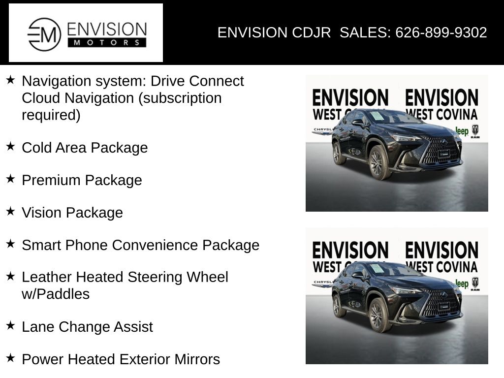 WE SPECIALIZE IN ALL CREDIT PROFILES! See what we can do for you! Call to find out (626) 899-9302.CARFAX One-Owner.21/28 City/Highway MPG Back Monitor, Cold Area Package, Lane Change Assist, Leather Heated Steering Wheel w/Paddles, Navigation system: Drive Connect Cloud Navigation (subscription required), Power Heated Exterior Mirrors, Premium Package, Smart Phone Convenience Package, Vision Package, Wiper & Window Deicer.Caviar2024 Lexus NX 350 Premium AWD 8-Speed Automatic 2.4L I4 DOHC 16V**********All Pricing and Advertised Prices for any/all vehicles offered for sale does not include dealer installed accessories which can be purchased for an additional cost.********** The Factory Rebates may not be available on this vehicle if you elect to take advantage of a Special Alternative APR or Special Lease program. Some Factory Rebates are California Resident specific and may vary for residents of other states. NO sales to Dealers, Brokers or Exporters. For out of state purchase, customers must be present to purchase. If shipping is required, dealership must facilitate; no exceptions. Please contact us for special Multi-Vehicle or Fleet pricing. Prices are plus government fees and taxes, any finance charges, $85 documentary fee, $29 electronic registration fee, any emission testing charge and $1.75 per new tire state tire fee. *** We make every effort to provide accurate information, but please verify before purchasing. Leasing & financing available on approved credit. Trade-ins accepted. Subject to prior sale.
