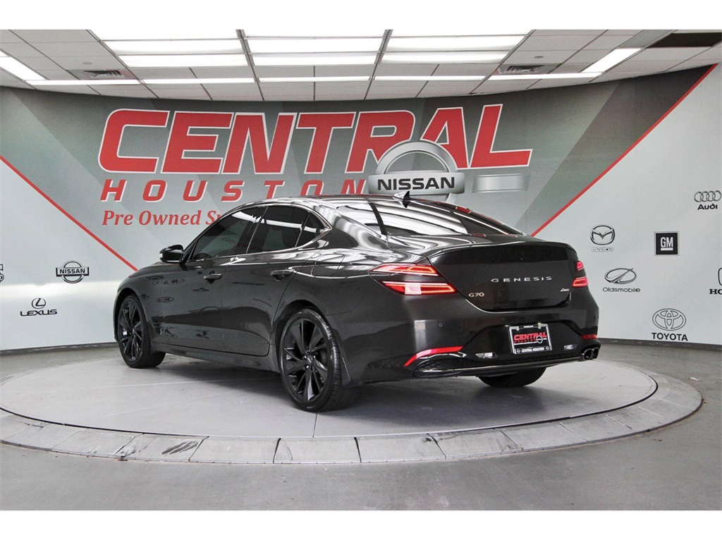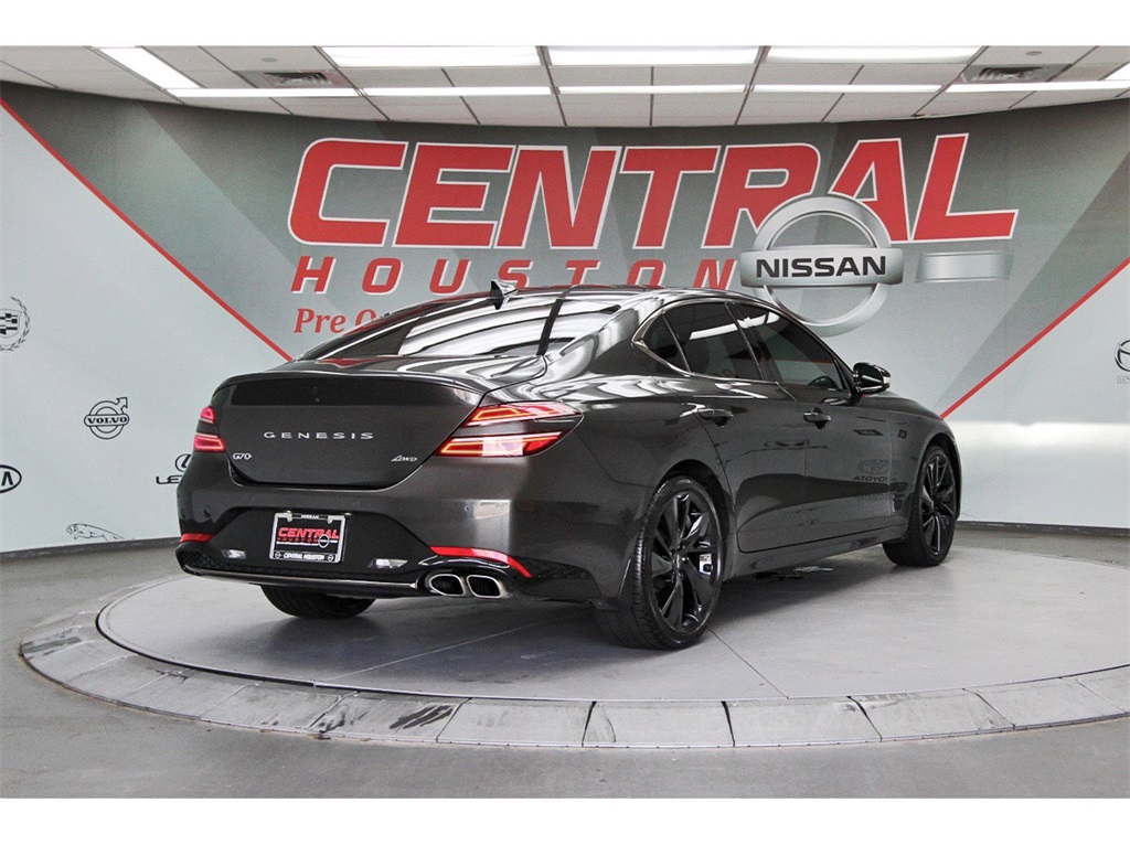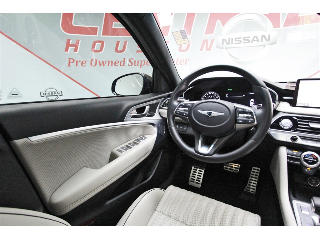 Central Houston Nissan is proud to present you with another True Market Priced Pre-Owned Vehicle. This 2023 Genesis G70 2.0T is loaded with the following Factory Options: Sport Prestige Package (4-Way Power Lumbar Front Passenger Seat, Acoustic Front Door Glass, Alloy Pedals, Dark Chrome Grille & Daylight Opening Trim, Forward & Reverse Parking Distance Warning, Front Passenger Seat Walk-In Device, Integrated Memory System (IMS), Leather Seating Surfaces, Option Group 02, Power Folding ECM Outside Mirrors, Power Telescoping Steering Wheel, Radio: AM/FM/SiriusXM/HD Lexicon Prem Audio System, Rain-Sensing Wipers, Sport Aluminum Trim, Ventilated Front Seats, Wheels: 19" x 8.0J Fr & 19" x 8.5J Rr Sport Alloy, Wide Sunroof, and Wireless Device Charging), 4-Wheel Disc Brakes, 6 Speakers, ABS brakes, Air Conditioning, Alloy wheels, AM/FM radio: SiriusXM, Android Auto & Apple CarPlay, Anti-whiplash front head restraints, Auto High-beam Headlights, Auto-dimming Rear-View mirror, Automatic temperature control, Brake assist, Bumpers: body-color, Delay-off headlights, Driver door bin, Driver vanity mirror, Dual front impact airbags, Dual front side impact airbags, Electronic Stability Control, Emergency communication system: Genesis Connected Services, Exterior Parking Camera Rear, Four wheel independent suspension, Front anti-roll bar, Front Bucket Seats, Front Center Armrest, Front dual zone A/C, Front reading lights, Fully automatic headlights, Garage door transmitter: HomeLink, Heated door mirrors, Heated front seats, Heated Multi-Adjustable Front Bucket Seats, Illuminated entry, Knee airbag, Leatherette Seating Surfaces, Low tire pressure warning, Mudguards, Navigation System, Occupant sensing airbag, Outside temperature display, Overhead airbag, Overhead console, Panic alarm, Passenger door bin, Passenger vanity mirror, Power door mirrors, Power driver seat, Power passenger seat, Power steering, Power windows, Premium First Aid Kit, Radio: AM/FM/SiriusXM/HD Audio System, Rear anti-roll bar, Rear reading lights, Rear seat center armrest, Rear window defroster, Remote keyless entry, Reversible Cargo Tray, Security system, Speed control, Speed-Sensitive Wipers, Split folding rear seat, Steering wheel mounted audio controls, Tachometer, Telescoping steering wheel, Traction control, Trip computer, Turn signal indicator mirrors, Variably intermittent wipers, Wheel Locks, and Wheels: 19" x 8.0J Fr & 19" x 8.5J Rr Alloy!!Central Houston Nissan is more than just your typical car dealership. When our customers visit us, our goal is to provide quality vehicles, exceptional service and a friendly atmosphere. Our staff has been trained to create ease during your purchase or service experience and we are always making sure you get everything you want and deserve out of your visit. Our vision and mission is an employee-centered and customer-focused environment. Vehicles may be subject to prep package and market adjustment. When you buy from Central Houston Nissan, we'll make it the best car buying experience you've ever had. When you purchase a New Nissan or a qualifying Pre-Owned vehicle from Central Houston Nissan, you are automatically enrolled into our Central Houston Nissan Central Care Program at no cost to you. You can’t beat that! Vehicles may be subject to prep package and market adjustment. Stop by 2901 S Loop W, Houston, Texas 77054 today!!!