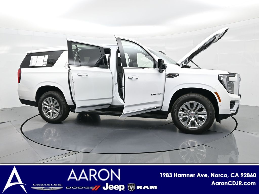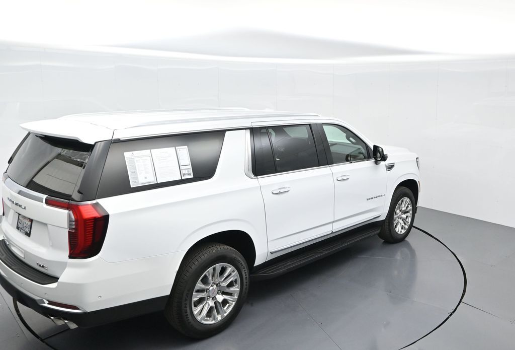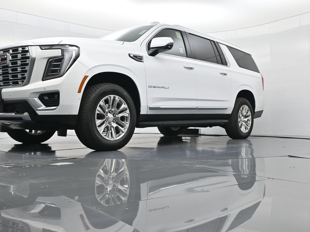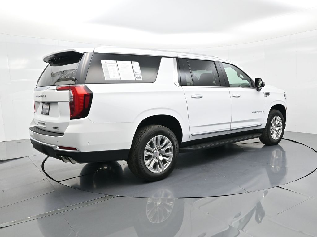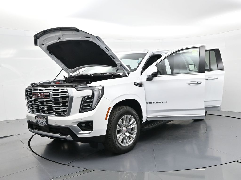 This 2025 GMC Yukon XL Denali 4WD in Summit White delivers full-size luxury, cutting-edge technology, and commanding performance, making it an exceptional choice for families and professionals who demand the best in comfort and capability. Powered by a robust 6.2L EcoTec3 V8 paired with a smooth-shifting 10-speed automatic transmission, it offers confident acceleration and towing power, while the advanced Magnetic Ride Control and mechanical limited-slip differential ensure a composed, stable ride. The exterior exudes sophistication with signature Denali chrome accents, 20-inch 6-spoke aluminum wheels, LED headlamps and taillamps, LED fog lamps, and dual exhaust with polished tips. Inside, the spacious Jet Black interior is appointed with heated and ventilated front bucket seats, heated second-row captains chairs, premium perforated leather seating surfaces, and a power-folding third-row bench for versatile cargo and passenger arrangements. Technology takes center stage with a massive 16.9-inch diagonal GMC Premium Infotainment touchscreen featuring Google Built-In, navigation, wireless Apple CarPlay, wireless Android Auto, a 10-speaker Bose audio system, head-up display, and wireless charging. Safety and driver assistance are top priorities, with Enhanced Automatic Emergency Braking, Forward Collision Alert, Front Pedestrian Braking, HD Surround Vision, Lane Keep Assist, Rear Cross Traffic Braking, and adaptive cruise control. Convenience features include a hands-free power liftgate, remote start, power-sliding center console, multiple USB and 120V outlets, and tri-zone automatic climate control. With only 5,841 miles and a clean CARFAX 1-owner history, this Yukon XL Denali is virtually new and still under factory warranty. Offering exceptional towing capability, unmatched interior space, and premium refinement, this SUV is ready to elevate every journey. Experience the pinnacle of GMC craftsmanship and performance today.