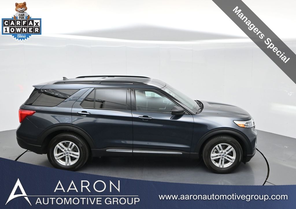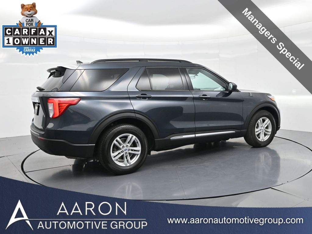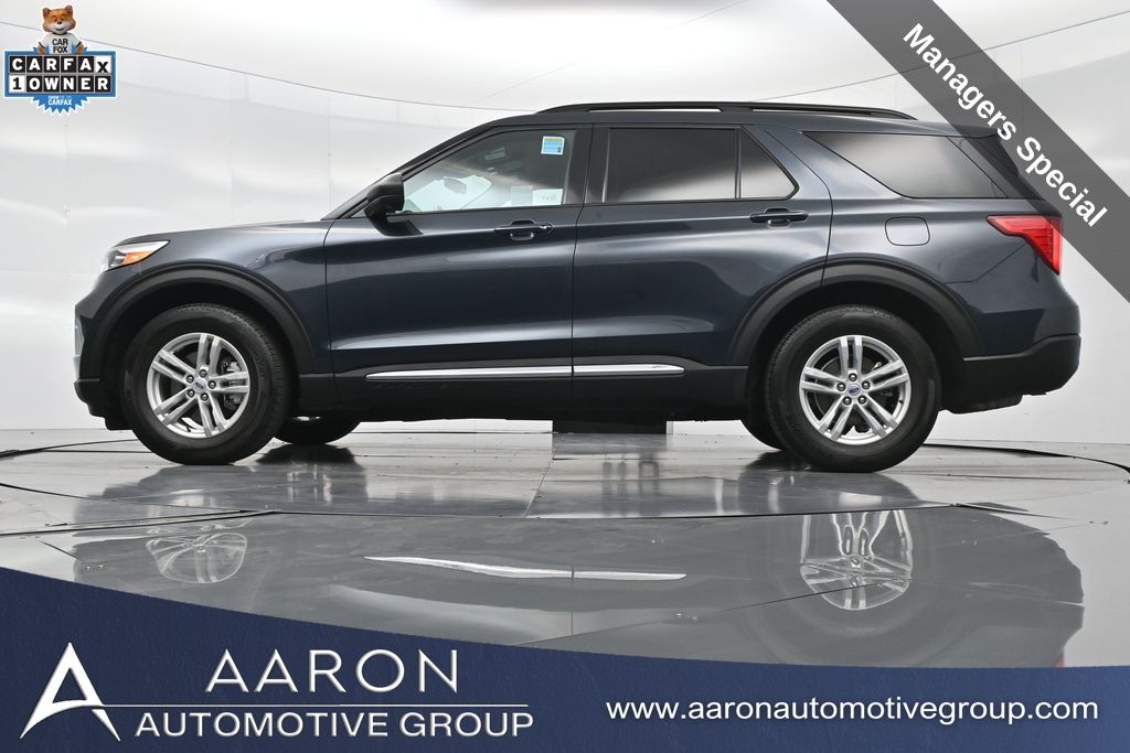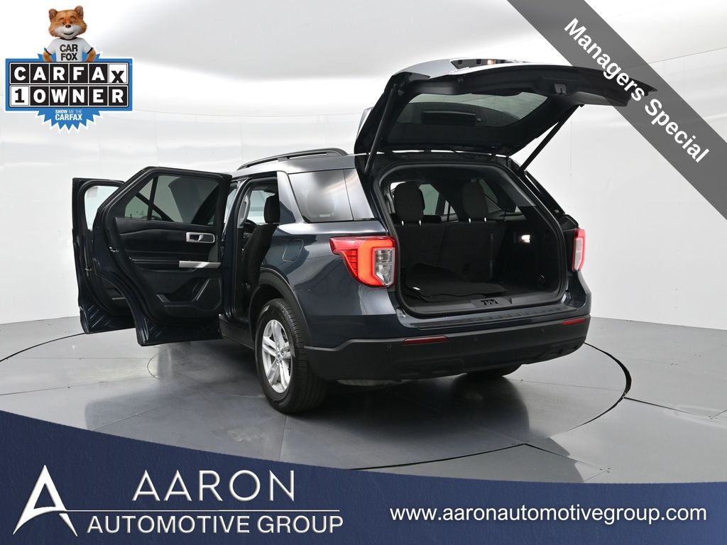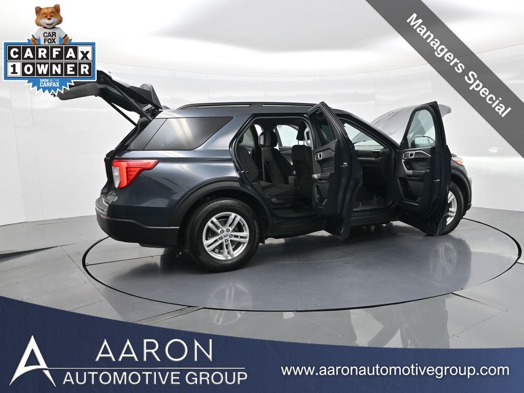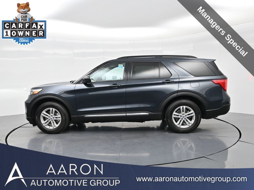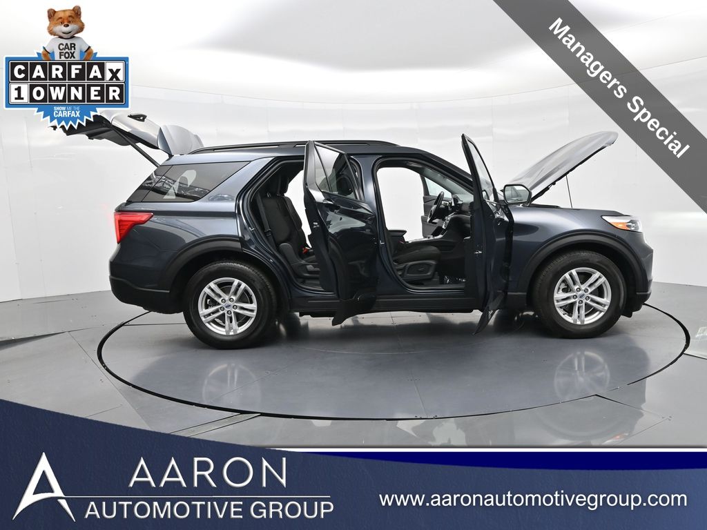 This 2023 Ford Explorer XLT in Blue Metallic is a well-equipped, family-friendly SUV that blends style, capability, and modern technology. Powered by a responsive 2.3L EcoBoost I4 engine paired with a smooth 10-speed automatic transmission, it delivers a strong balance of performance and efficiency, achieving an EPA-estimated 21 MPG city and 28 MPG highway. The rear-wheel-drive platform provides a composed, confident ride, while the XLT trim adds premium convenience and comfort features. Exterior highlights include 18-inch sparkle silver-painted aluminum wheels, LED signature lighting, roof rack rails, and a power liftgate for easy access to the spacious cargo area. Inside, the Ebony Unique Cloth interior features heated front seats, second-row captains chairs, a third-row bench with easy entry, and an 8-way power drivers seat. The SYNC 3 infotainment system with an 8-inch touchscreen offers Apple CarPlay, Android Auto, Bluetooth, SiriusXM, FordPass Connect with Wi-Fi hotspot capability, and a premium audio experience. Additional conveniences include tri-zone automatic climate control, intelligent access with push-button start, multiple USB ports, and ample interior storage. Safety is enhanced with Ford Co-Pilot360, including Pre-Collision Assist with Automatic Emergency Braking, Blind Spot Information System with Cross-Traffic Alert, Lane Keeping System, Rear View Camera, and Auto High-Beam Headlamps. With only 15,640 miles, a clean 1-owner CARFAX history, and regular oil change records, this Explorer is in excellent condition and still under factory warranty. Perfect for daily commutes, road trips, and active family life, the 2023 Explorer XLT offers the versatility, safety, and comfort that todays drivers demand. Experience it for yourself today.