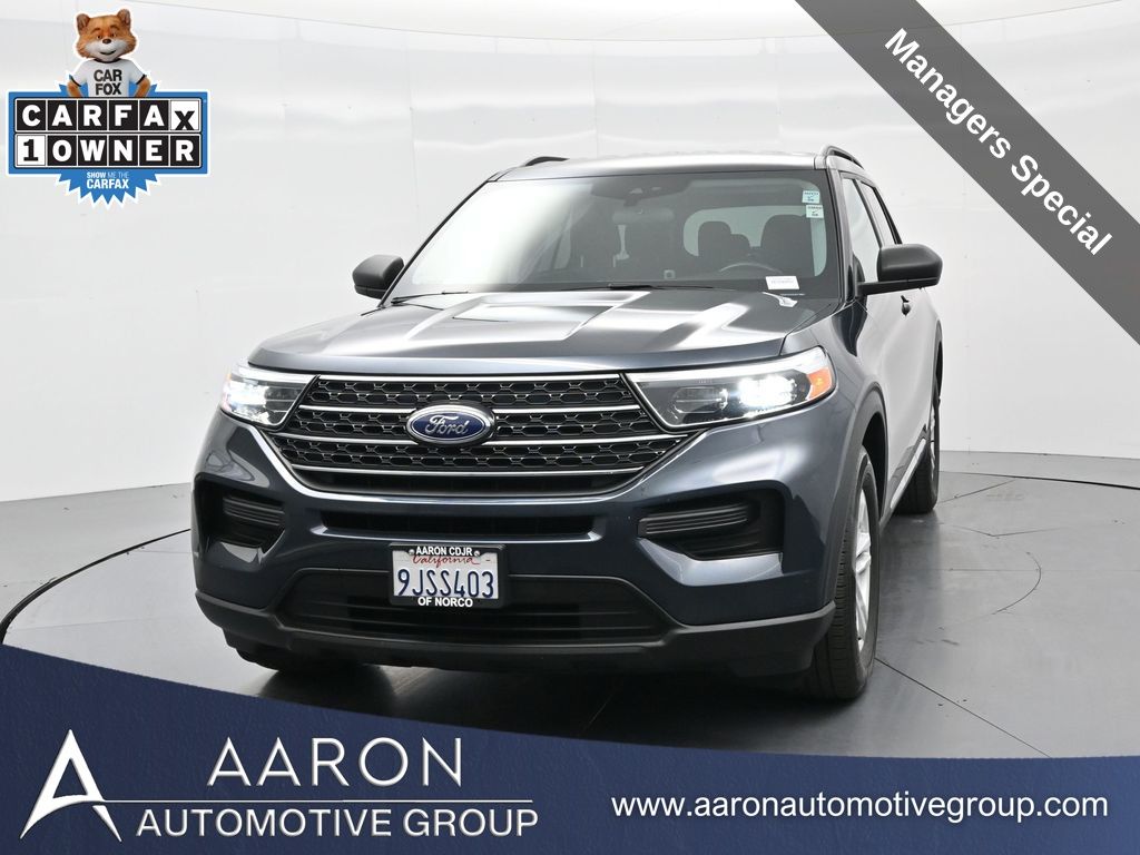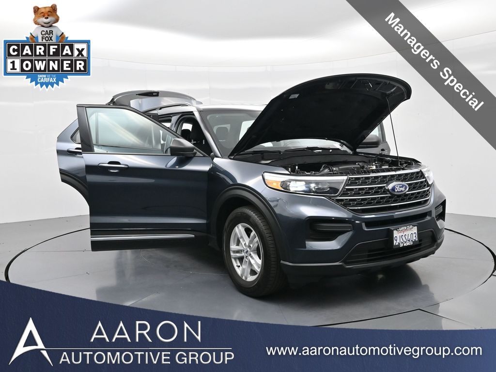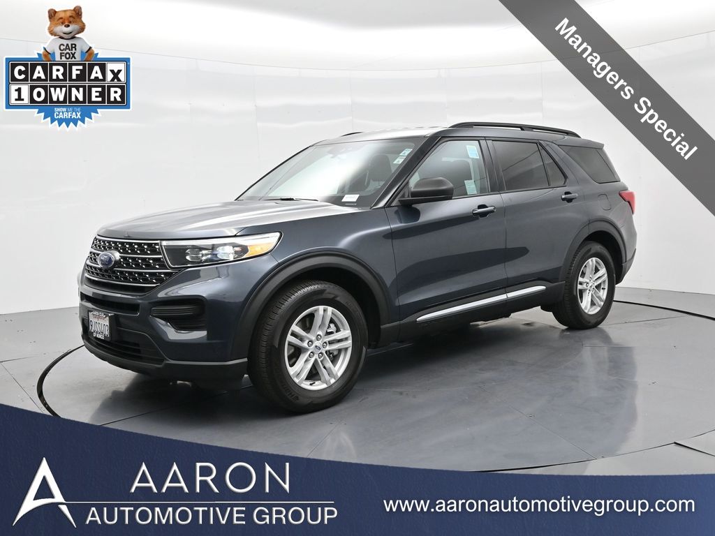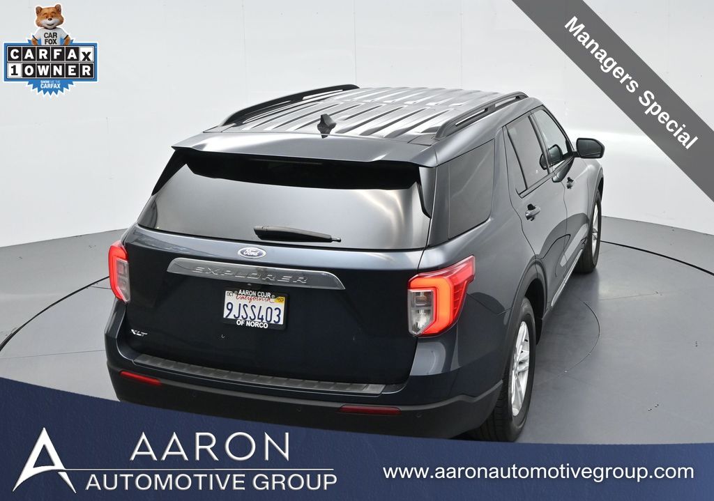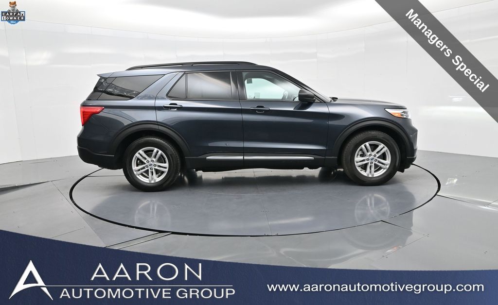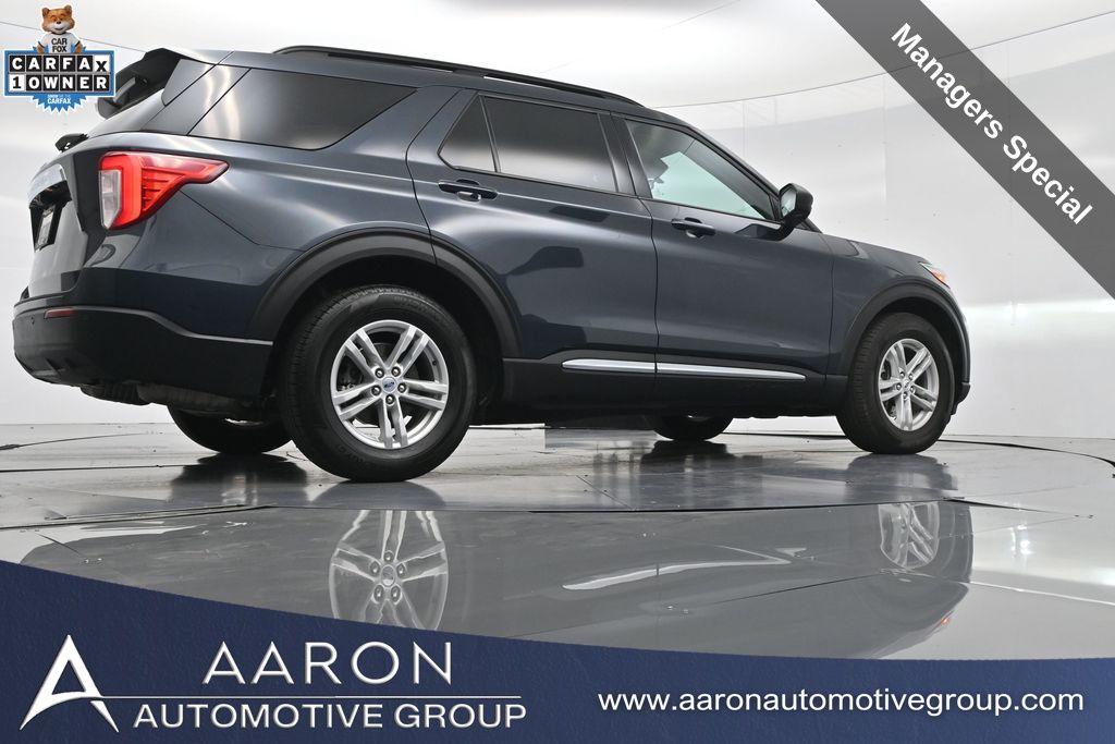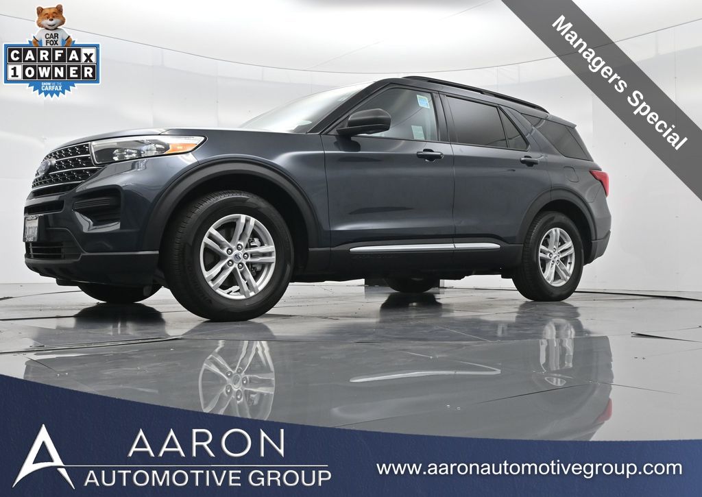 This 2023 Ford Explorer XLT in Blue Metallic is a well-equipped, family-friendly SUV that blends style, capability, and modern technology. Powered by a responsive 2.3L EcoBoost I4 engine paired with a smooth 10-speed automatic transmission, it delivers a strong balance of performance and efficiency, achieving an EPA-estimated 21 MPG city and 28 MPG highway. The rear-wheel-drive platform provides a composed, confident ride, while the XLT trim adds premium convenience and comfort features. Exterior highlights include 18-inch sparkle silver-painted aluminum wheels, LED signature lighting, roof rack rails, and a power liftgate for easy access to the spacious cargo area. Inside, the Ebony Unique Cloth interior features heated front seats, second-row captains chairs, a third-row bench with easy entry, and an 8-way power drivers seat. The SYNC 3 infotainment system with an 8-inch touchscreen offers Apple CarPlay, Android Auto, Bluetooth, SiriusXM, FordPass Connect with Wi-Fi hotspot capability, and a premium audio experience. Additional conveniences include tri-zone automatic climate control, intelligent access with push-button start, multiple USB ports, and ample interior storage. Safety is enhanced with Ford Co-Pilot360, including Pre-Collision Assist with Automatic Emergency Braking, Blind Spot Information System with Cross-Traffic Alert, Lane Keeping System, Rear View Camera, and Auto High-Beam Headlamps. With only 15,640 miles, a clean 1-owner CARFAX history, and regular oil change records, this Explorer is in excellent condition and still under factory warranty. Perfect for daily commutes, road trips, and active family life, the 2023 Explorer XLT offers the versatility, safety, and comfort that todays drivers demand. Experience it for yourself today.