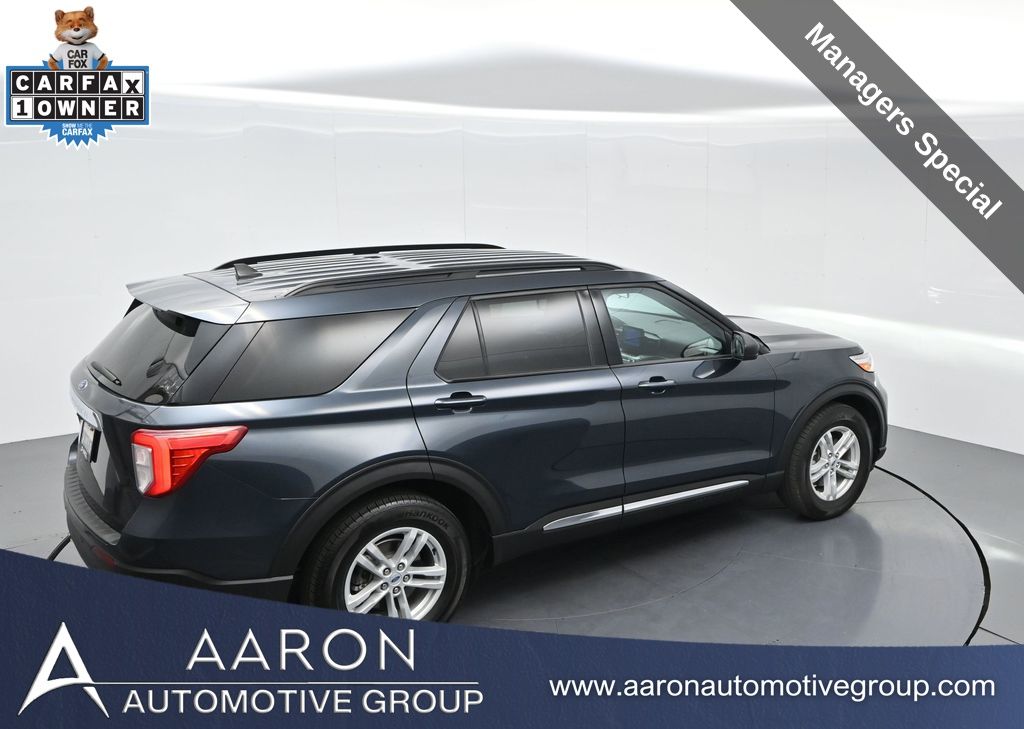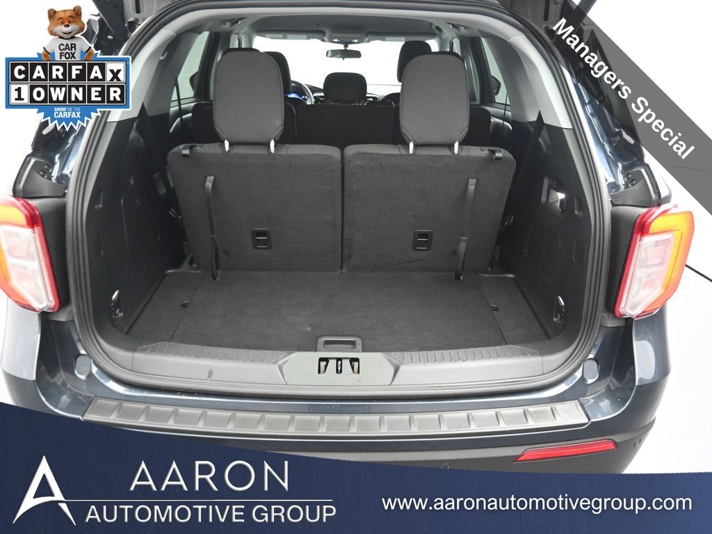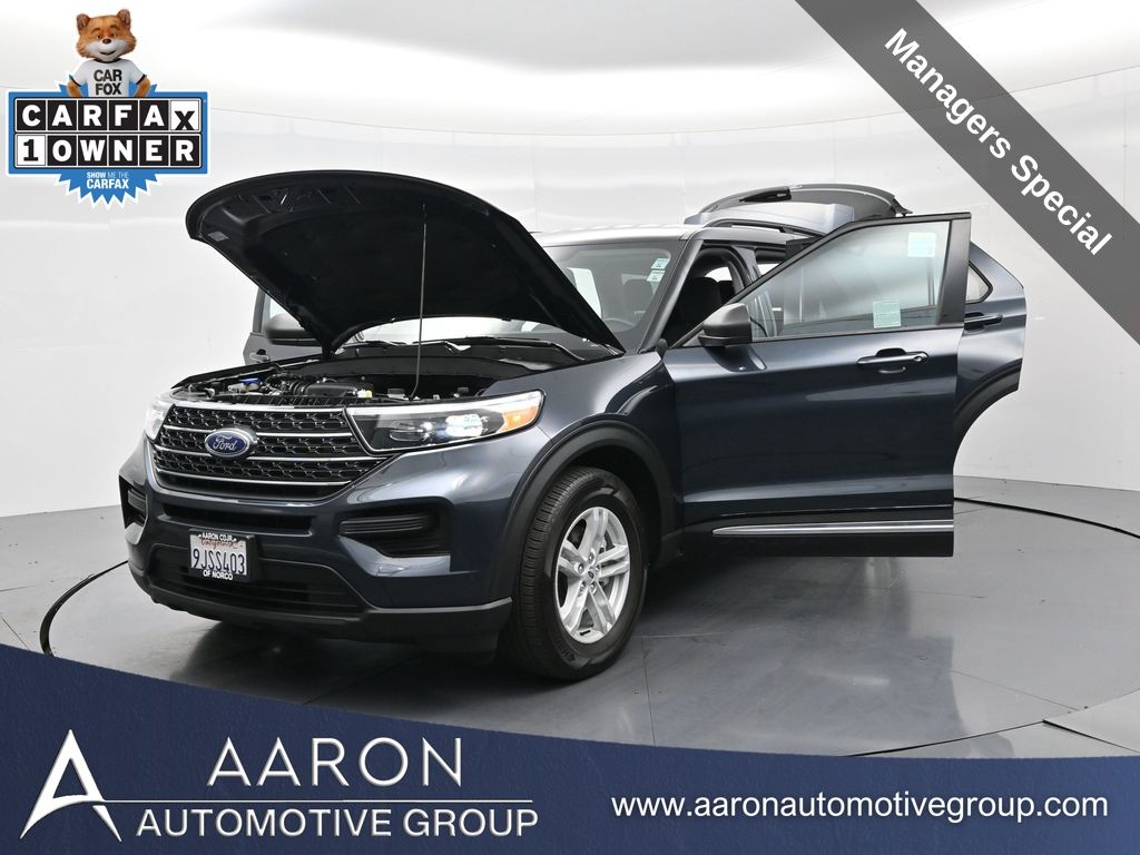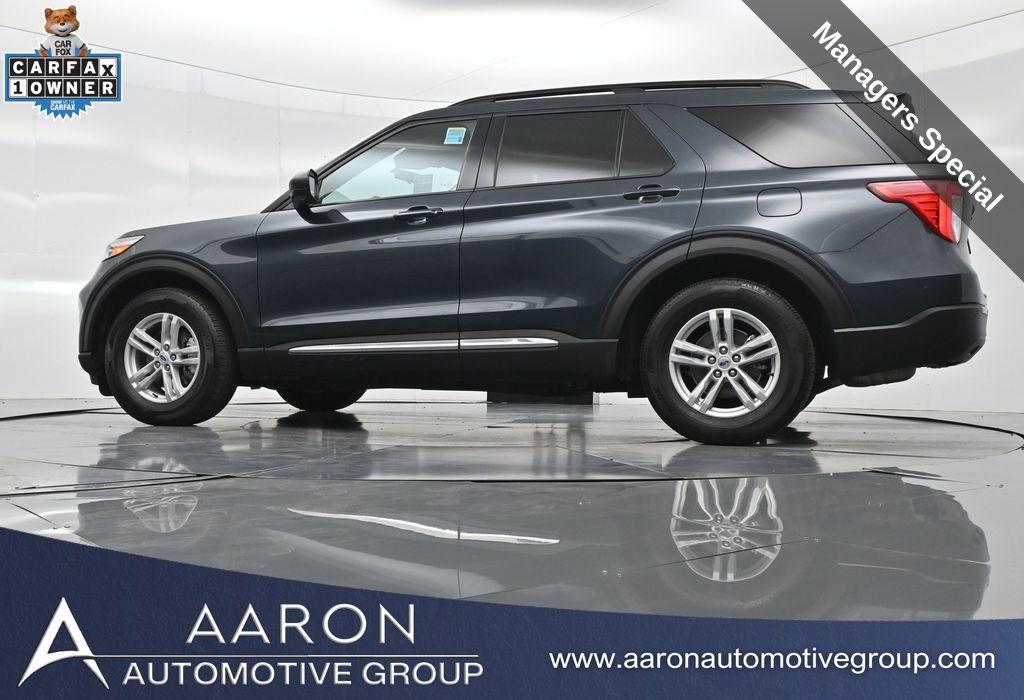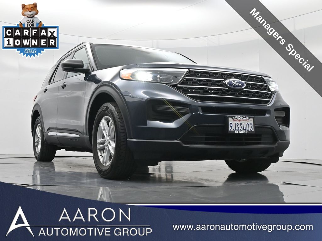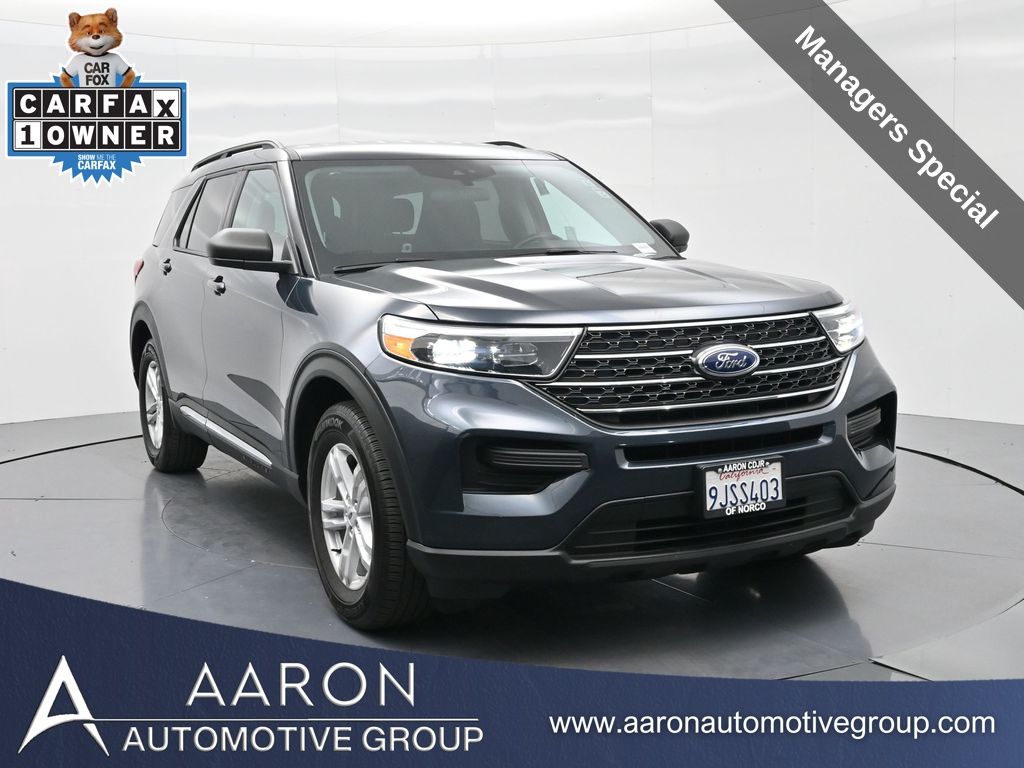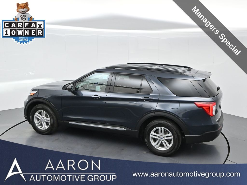 This 2023 Ford Explorer XLT in Blue Metallic is a well-equipped, family-friendly SUV that blends style, capability, and modern technology. Powered by a responsive 2.3L EcoBoost I4 engine paired with a smooth 10-speed automatic transmission, it delivers a strong balance of performance and efficiency, achieving an EPA-estimated 21 MPG city and 28 MPG highway. The rear-wheel-drive platform provides a composed, confident ride, while the XLT trim adds premium convenience and comfort features. Exterior highlights include 18-inch sparkle silver-painted aluminum wheels, LED signature lighting, roof rack rails, and a power liftgate for easy access to the spacious cargo area. Inside, the Ebony Unique Cloth interior features heated front seats, second-row captains chairs, a third-row bench with easy entry, and an 8-way power drivers seat. The SYNC 3 infotainment system with an 8-inch touchscreen offers Apple CarPlay, Android Auto, Bluetooth, SiriusXM, FordPass Connect with Wi-Fi hotspot capability, and a premium audio experience. Additional conveniences include tri-zone automatic climate control, intelligent access with push-button start, multiple USB ports, and ample interior storage. Safety is enhanced with Ford Co-Pilot360, including Pre-Collision Assist with Automatic Emergency Braking, Blind Spot Information System with Cross-Traffic Alert, Lane Keeping System, Rear View Camera, and Auto High-Beam Headlamps. With only 15,640 miles, a clean 1-owner CARFAX history, and regular oil change records, this Explorer is in excellent condition and still under factory warranty. Perfect for daily commutes, road trips, and active family life, the 2023 Explorer XLT offers the versatility, safety, and comfort that todays drivers demand. Experience it for yourself today.