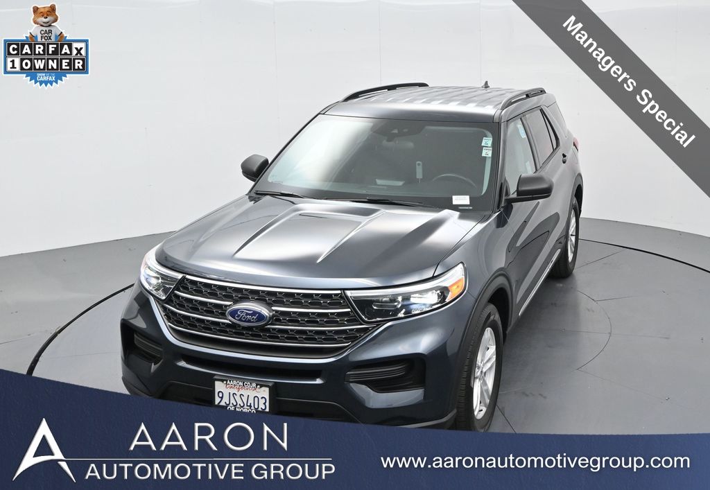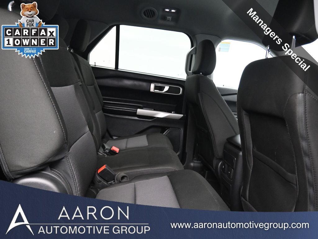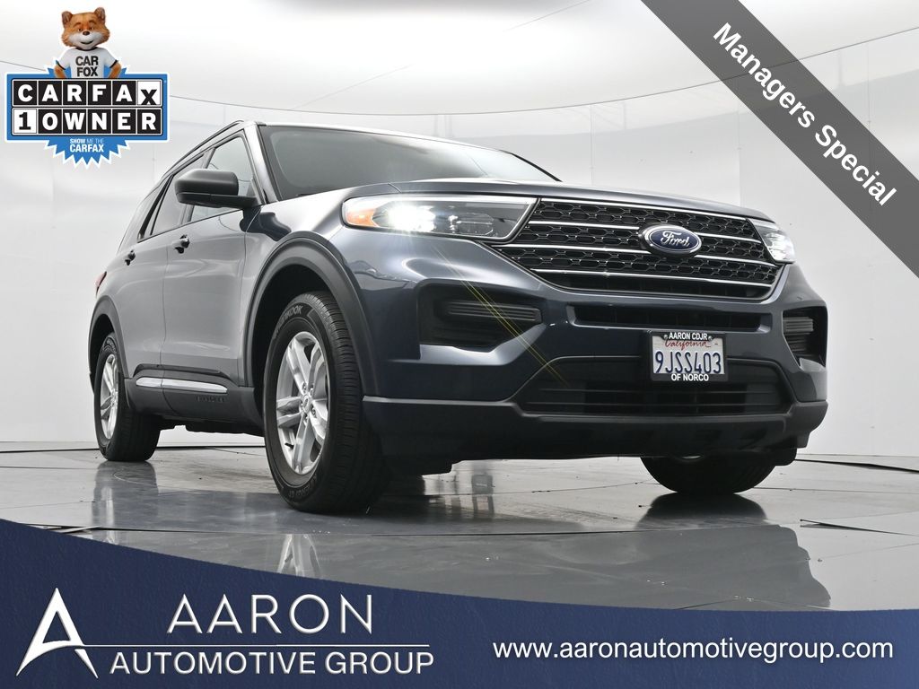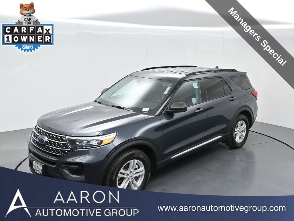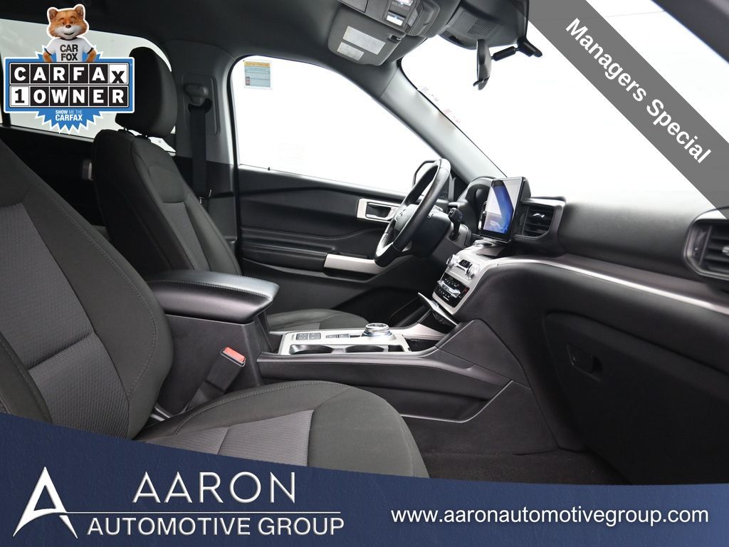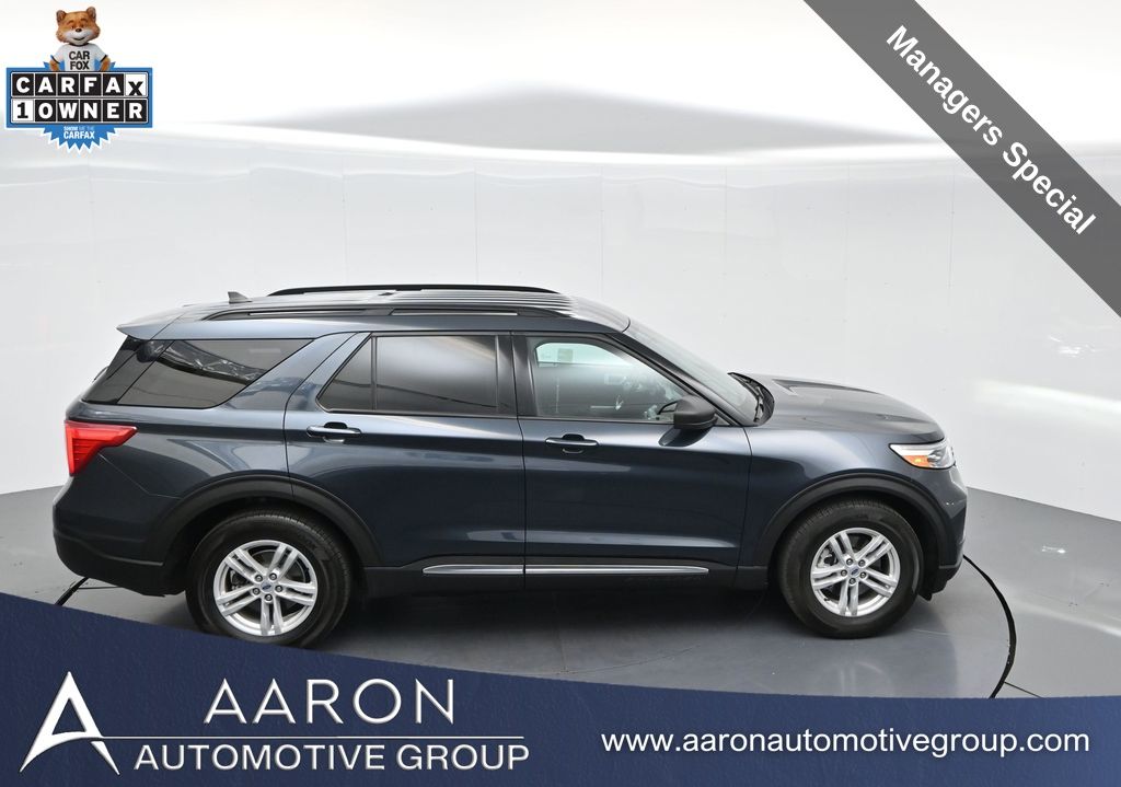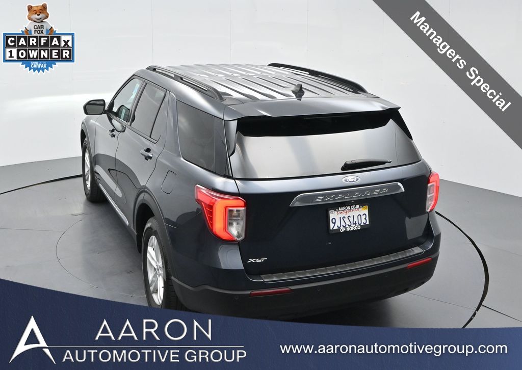 This 2023 Ford Explorer XLT in Blue Metallic is a well-equipped, family-friendly SUV that blends style, capability, and modern technology. Powered by a responsive 2.3L EcoBoost I4 engine paired with a smooth 10-speed automatic transmission, it delivers a strong balance of performance and efficiency, achieving an EPA-estimated 21 MPG city and 28 MPG highway. The rear-wheel-drive platform provides a composed, confident ride, while the XLT trim adds premium convenience and comfort features. Exterior highlights include 18-inch sparkle silver-painted aluminum wheels, LED signature lighting, roof rack rails, and a power liftgate for easy access to the spacious cargo area. Inside, the Ebony Unique Cloth interior features heated front seats, second-row captains chairs, a third-row bench with easy entry, and an 8-way power drivers seat. The SYNC 3 infotainment system with an 8-inch touchscreen offers Apple CarPlay, Android Auto, Bluetooth, SiriusXM, FordPass Connect with Wi-Fi hotspot capability, and a premium audio experience. Additional conveniences include tri-zone automatic climate control, intelligent access with push-button start, multiple USB ports, and ample interior storage. Safety is enhanced with Ford Co-Pilot360, including Pre-Collision Assist with Automatic Emergency Braking, Blind Spot Information System with Cross-Traffic Alert, Lane Keeping System, Rear View Camera, and Auto High-Beam Headlamps. With only 15,640 miles, a clean 1-owner CARFAX history, and regular oil change records, this Explorer is in excellent condition and still under factory warranty. Perfect for daily commutes, road trips, and active family life, the 2023 Explorer XLT offers the versatility, safety, and comfort that todays drivers demand. Experience it for yourself today.