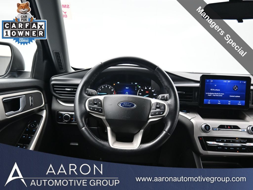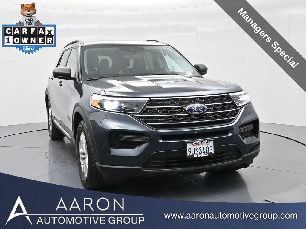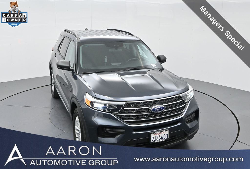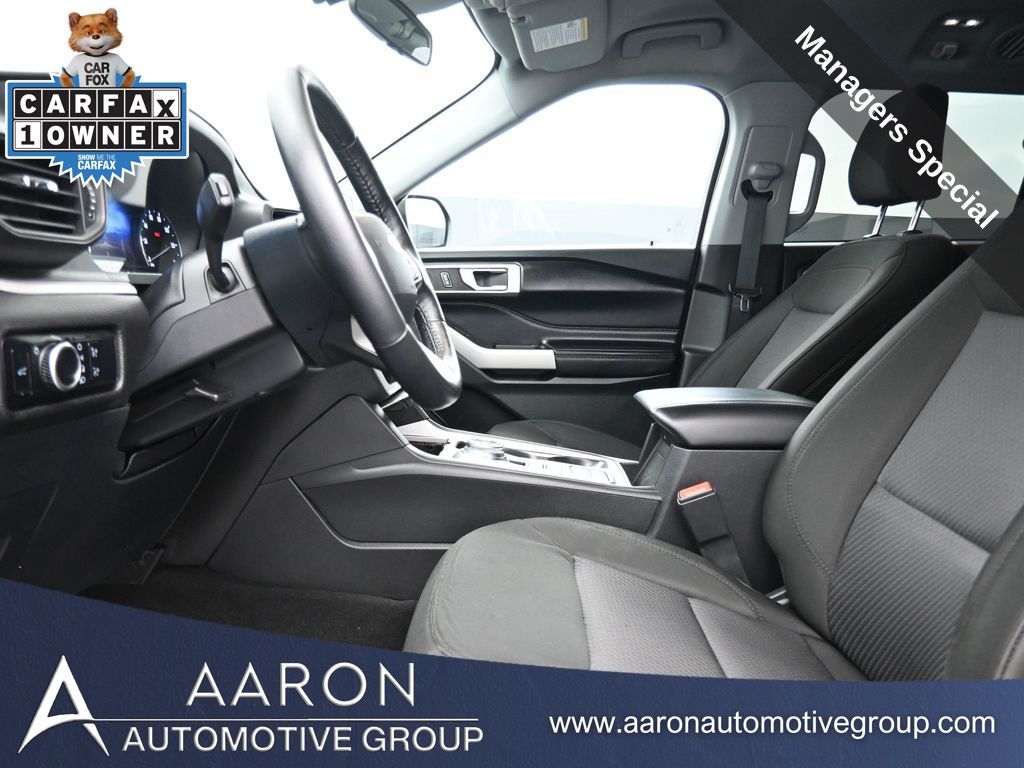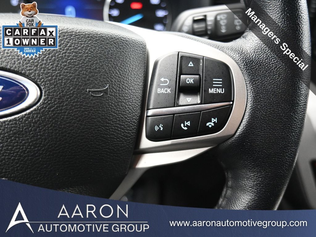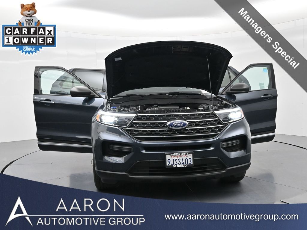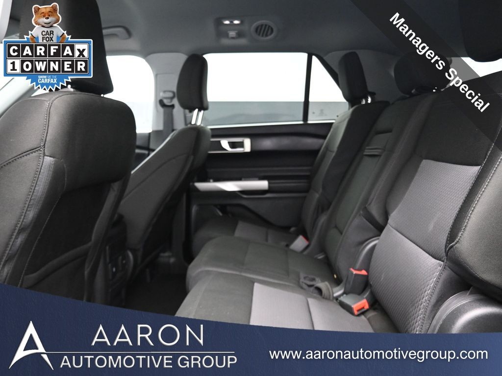 This 2023 Ford Explorer XLT in Blue Metallic is a well-equipped, family-friendly SUV that blends style, capability, and modern technology. Powered by a responsive 2.3L EcoBoost I4 engine paired with a smooth 10-speed automatic transmission, it delivers a strong balance of performance and efficiency, achieving an EPA-estimated 21 MPG city and 28 MPG highway. The rear-wheel-drive platform provides a composed, confident ride, while the XLT trim adds premium convenience and comfort features. Exterior highlights include 18-inch sparkle silver-painted aluminum wheels, LED signature lighting, roof rack rails, and a power liftgate for easy access to the spacious cargo area. Inside, the Ebony Unique Cloth interior features heated front seats, second-row captains chairs, a third-row bench with easy entry, and an 8-way power drivers seat. The SYNC 3 infotainment system with an 8-inch touchscreen offers Apple CarPlay, Android Auto, Bluetooth, SiriusXM, FordPass Connect with Wi-Fi hotspot capability, and a premium audio experience. Additional conveniences include tri-zone automatic climate control, intelligent access with push-button start, multiple USB ports, and ample interior storage. Safety is enhanced with Ford Co-Pilot360, including Pre-Collision Assist with Automatic Emergency Braking, Blind Spot Information System with Cross-Traffic Alert, Lane Keeping System, Rear View Camera, and Auto High-Beam Headlamps. With only 15,640 miles, a clean 1-owner CARFAX history, and regular oil change records, this Explorer is in excellent condition and still under factory warranty. Perfect for daily commutes, road trips, and active family life, the 2023 Explorer XLT offers the versatility, safety, and comfort that todays drivers demand. Experience it for yourself today.