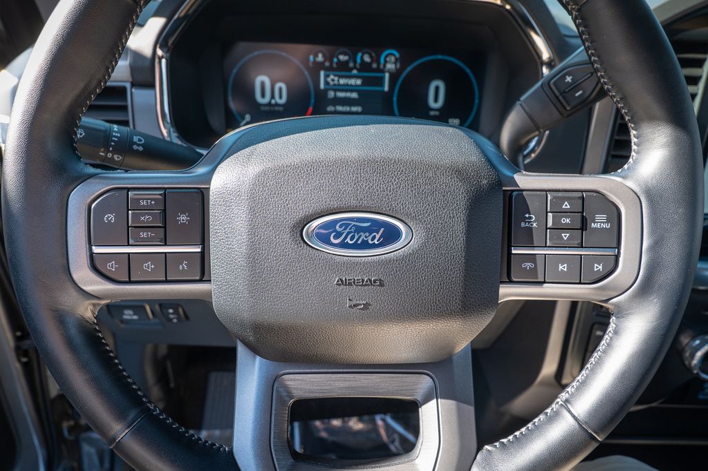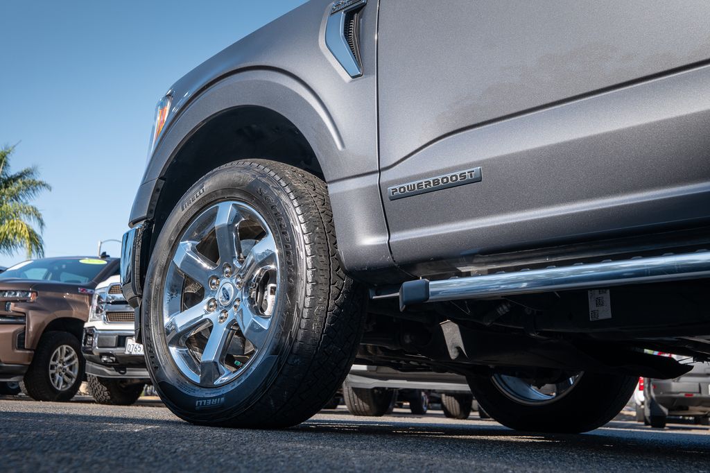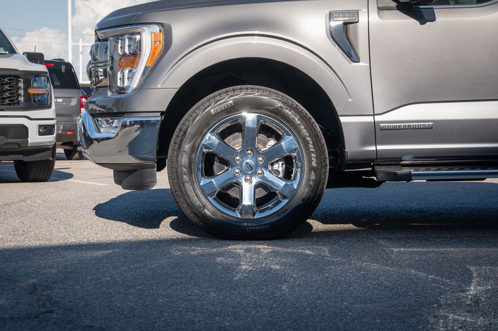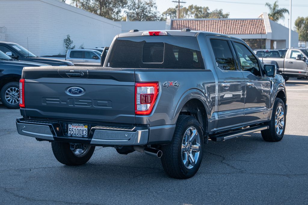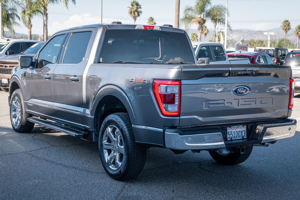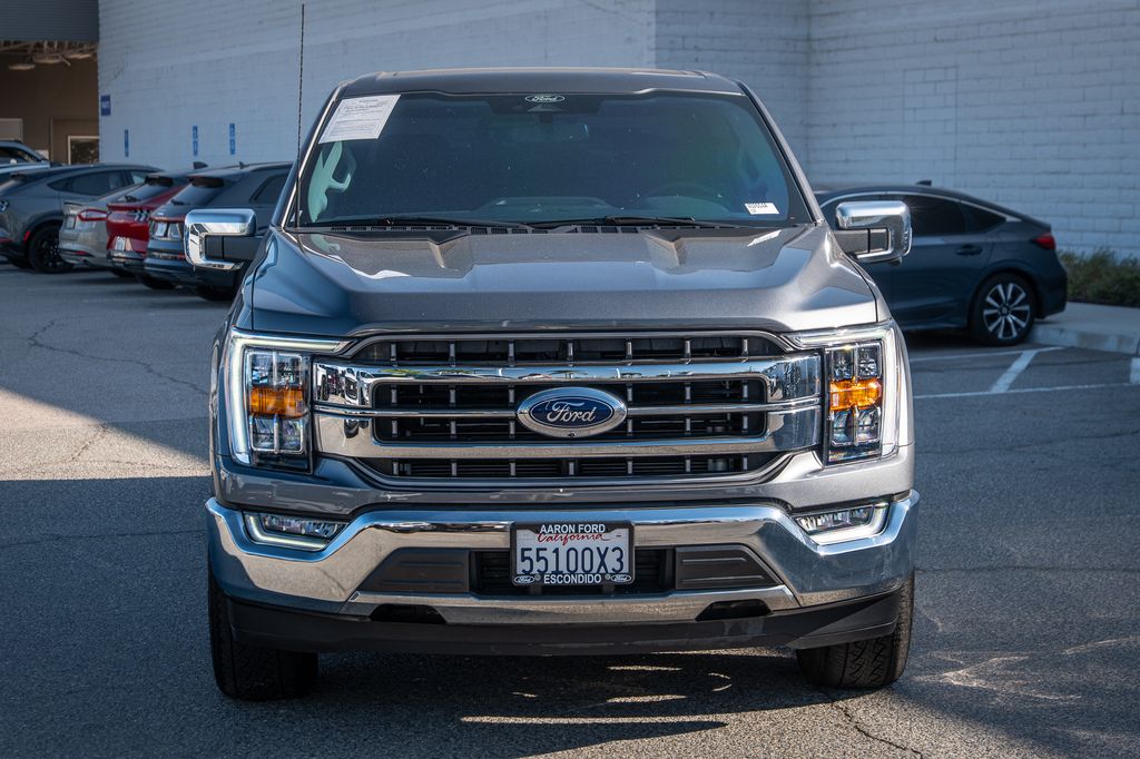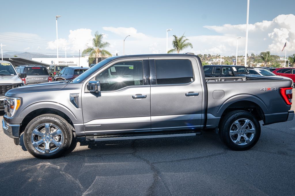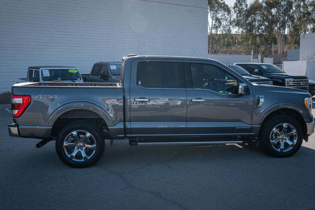 Gray Metallic 2022 Ford F-150 Lariat 4WD 10-Speed Automatic 3.5L PowerBoost Full-Hybrid V6 3.5L PowerBoost Full-Hybrid V6, 4WD, 6" Bright Polished Running Board, Chrome 2-Bar Grille w/4 Minor Bars, Chrome Door & Tailgate Handles w/Body-Color Bezel, Chrome Single-Tip Exhaust, Chrome Skull Caps on Exterior Mirrors, Class IV Trailer Hitch Receiver, Electronic Locking w/3.73 Axle Ratio, Equipment Group 501A Mid, Extended Range 36 Gallon Fuel Tank, Exterior Parking Camera Rear, Front dual zone A/C, Integrated Trailer Brake Controller, Lariat Chrome Appearance Package, Max Trailer Tow Package, Memory seat, Onboard 400W Outlet, Pedal memory, Power driver seat, Pro Trailer Backup Assist, Radio: B&O Sound System by Bang & Olufsen, Twin Panel Moonroof, Universal Garage Door Opener, Wheels: 18" Chrome-Like PVD.Odometer is 2821 miles below market average!