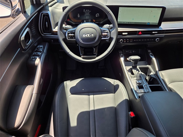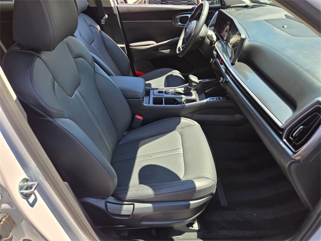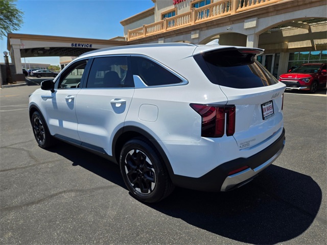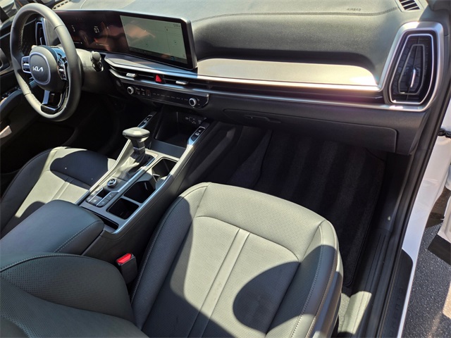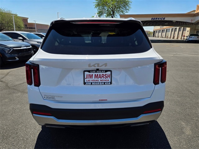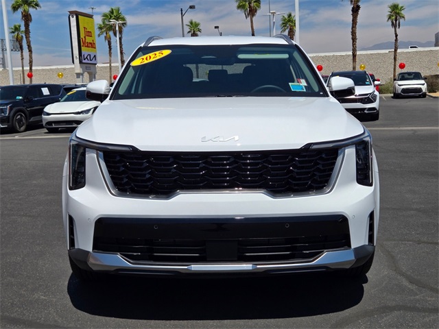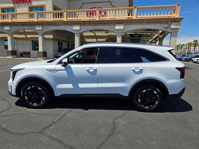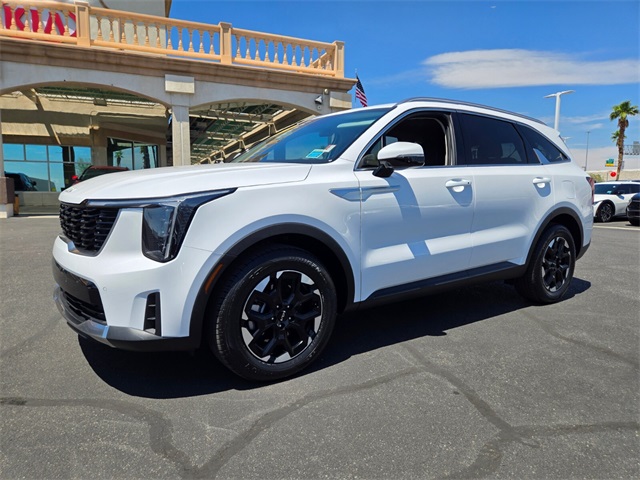 CARFAX One-Owner.Odometer is 5555 miles below market average!23/31 City/Highway MPGGlacial White Pearl 2025 Kia Sorento S FWD 8-Speed Automatic 2.5L I4 DGI DOHC 16V LEV3-SULEV30 191hpIf you don't drive here, you can't save here!Price may not include recon fee. 3rd row seats: split-bench, 4-Wheel Disc Brakes, 6 Speakers, ABS brakes, Air Conditioning, Alloy wheels, AM/FM radio: SiriusXM, Apple CarPlay & Android Auto, Auto High-beam Headlights, Automatic temperature control, Brake assist, Bumpers: body-color, Cargo Cover, Cargo Net, Carpet Cargo Mat w/Seatback Protection, Carpeted Floor Mats, Delay-off headlights, Driver door bin, Driver vanity mirror, Dual front impact airbags, Dual front side impact airbags, Electronic Stability Control, Emergency communication system: 911 Connect, Exterior Parking Camera Rear, Four wheel independent suspension, Front anti-roll bar, Front Bucket Seats, Front Center Armrest, Front dual zone A/C, Front reading lights, Fully automatic headlights, Heated door mirrors, Heated Front Bucket Seats, Heated front seats, Illuminated entry, Knee airbag, Leather Shift Knob, Leather steering wheel, Low tire pressure warning, Navigation System, Occupant sensing airbag, Outside temperature display, Overhead airbag, Overhead console, Panic alarm, Passenger door bin, Passenger vanity mirror, Power door mirrors, Power driver seat, Power steering, Power windows, Radio data system, Radio: AM/FM Standard Sound System, Rear anti-roll bar, Rear reading lights, Rear seat center armrest, Rear side impact airbag, Rear window defroster, Rear window wiper, Remote keyless entry, Security system, Smart Key w/ Push Button and Remote Start, Speed control, Speed-sensing steering, Split folding rear seat, Spoiler, Steering wheel mounted audio controls, SynTex Artificial Leather Seat Trim, Tachometer, Telescoping steering wheel, Tilt steering wheel, Traction control, Trip computer, Turn signal indicator mirrors, Variably intermittent wipers, and Wheels: 18" Gloss Black Alloy.