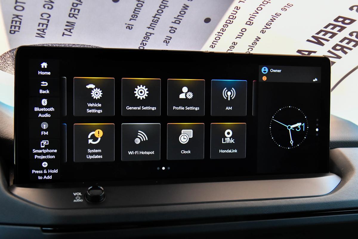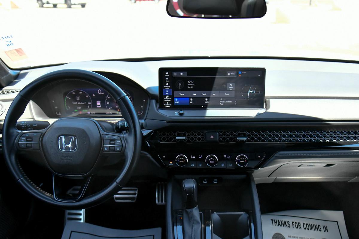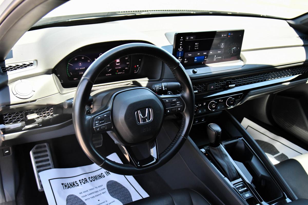 Scores 41 Highway MPG and 46 City MPG! This Honda Accord Hybrid delivers a Gas/Electric I-4 2.0 L/122 engine powering this Variable transmission. Wheels: 19 x 8.5J Matte Berlina Black, Vehicle Stability Assist (VSA) Electronic Stability Control (ESC), Valet Function.*This Honda Accord Hybrid Features the Following Options *Trunk Rear Cargo Access, Trip Computer, Transmission: Electronic Continuously Variable -inc: econ, normal, sport and individual modes, Traffic Jam Assist, Tires: 235/40R19 96V AS, Tire Specific Low Tire Pressure Warning, Tire mobility kit, Strut Front Suspension w/Coil Springs, Speed Sensitive Variable Intermittent Wipers, Smart Device Remote Engine Start.