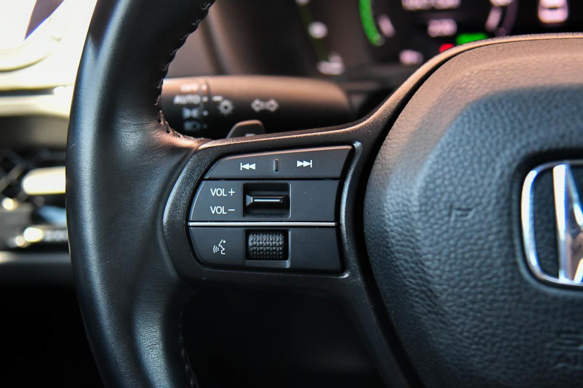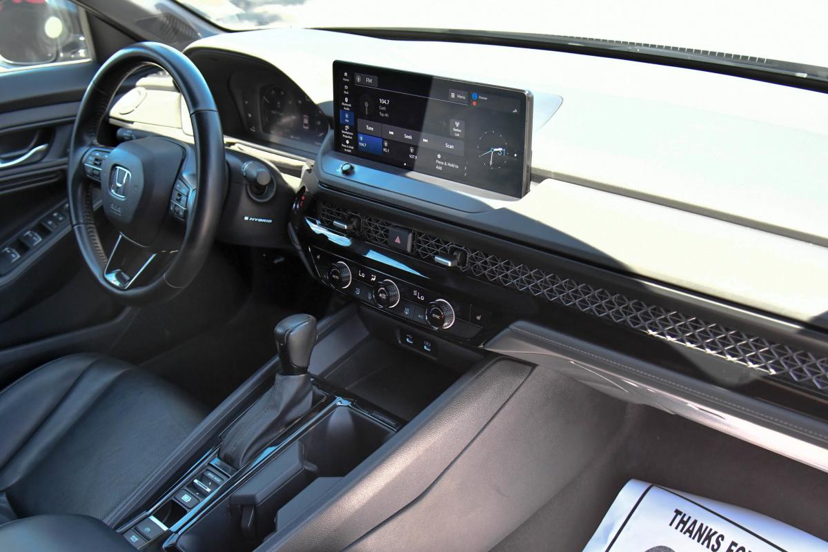 Scores 41 Highway MPG and 46 City MPG! This Honda Accord Hybrid delivers a Gas/Electric I-4 2.0 L/122 engine powering this Variable transmission. Wheels: 19 x 8.5J Matte Berlina Black, Vehicle Stability Assist (VSA) Electronic Stability Control (ESC), Valet Function.*This Honda Accord Hybrid Features the Following Options *Trunk Rear Cargo Access, Trip Computer, Transmission: Electronic Continuously Variable -inc: econ, normal, sport and individual modes, Traffic Jam Assist, Tires: 235/40R19 96V AS, Tire Specific Low Tire Pressure Warning, Tire mobility kit, Strut Front Suspension w/Coil Springs, Speed Sensitive Variable Intermittent Wipers, Smart Device Remote Engine Start.