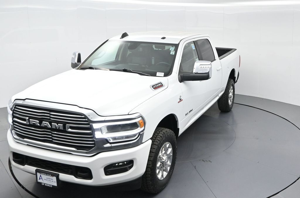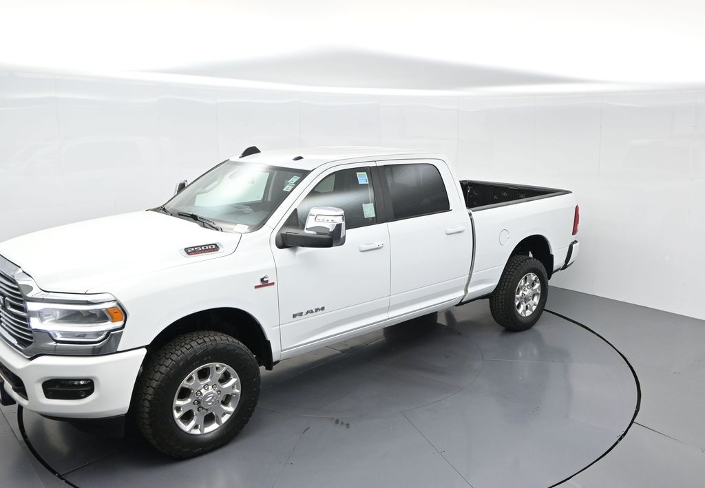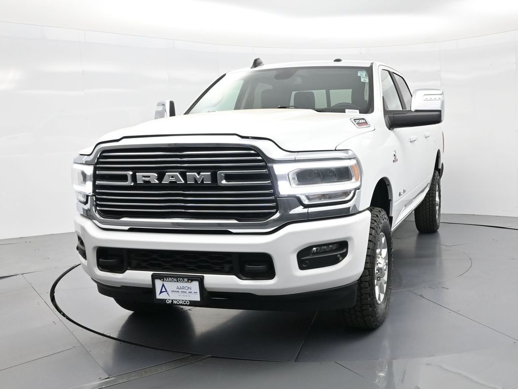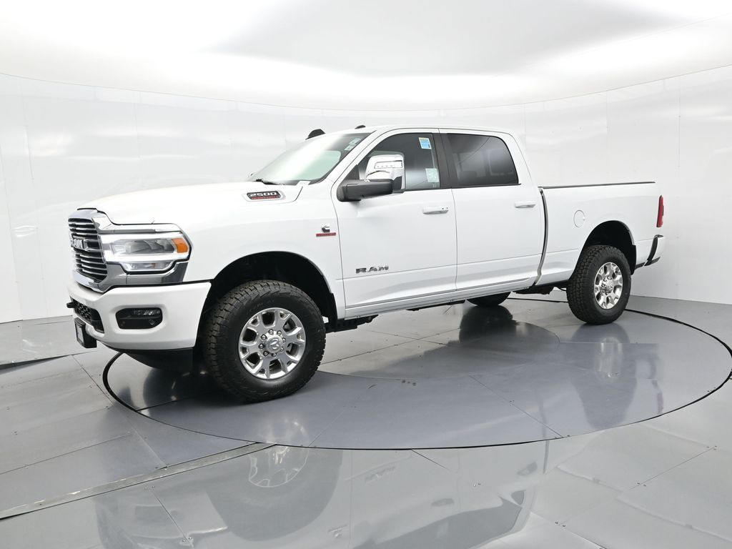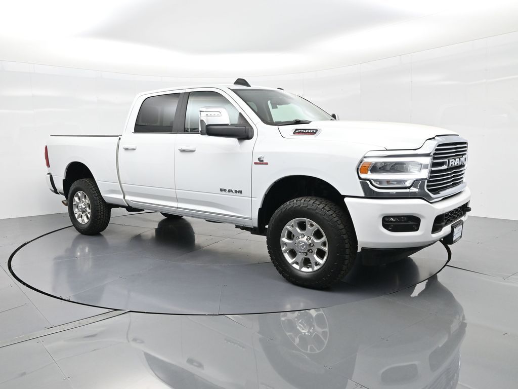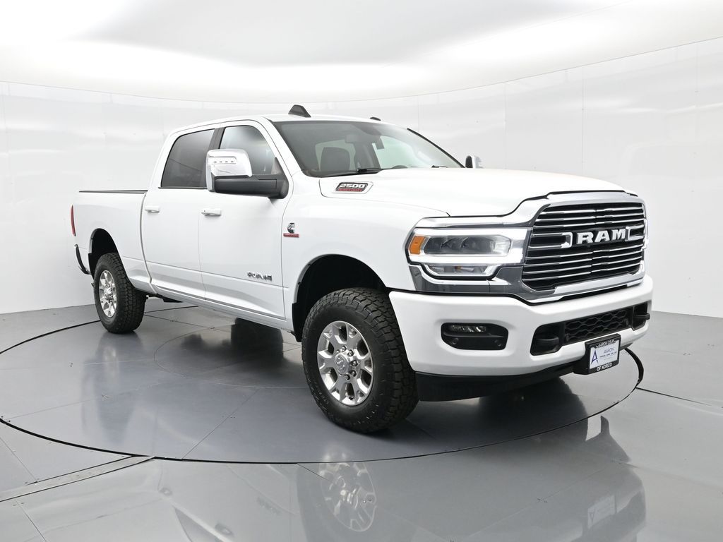 Make no compromises with this exceptional, nearly-new 2024 RAM 2500 Laramie Crew Cab 4x4, strikingly presented in Bright White Clearcoat with a refined Black leather interior. Power and performance are unmatched thanks to the legendary 6.7-liter Cummins Turbo Diesel engine and smooth-shifting 6-speed automatic transmission, ensuring top-tier towing capabilities and outstanding dependability. This premium Laramie comes fully loaded with the Level 1 Equipment Group, offering luxurious heated and ventilated front seats, heated rear seats, dual-zone automatic climate control, and convenient power-adjustable pedals with memory. Stay seamlessly connected and entertained through the advanced Uconnect 5 infotainment system with a large 12-inch touchscreen, integrated GPS navigation, Apple CarPlay, Android Auto, Amazon Alexa built-in, and SiriusXM 360L radio, all powered by a superior Alpine 9-speaker audio system. Enhanced capability is delivered by the included Off-Road Package, featuring performance-tuned Bilstein shocks, rugged skid plates, Hill Descent Control, and distinctive 18-inch aluminum wheels. Drive confidently with advanced safety and convenience technologies like adaptive cruise control, ParkSense front and rear park assist, blind-spot detection with cross-path monitoring, trailer reverse guidance, rain-sensitive windshield wipers, and automatic high-beam LED headlights. As a CARFAX-certified 1-owner vehicle with only 1,801 miles, accident-free history, and priced attractively below the KBB Fair Purchase Price, this RAM 2500 represents an exceptional opportunity and unbeatable value. Meticulously maintained and practically new, it is ready to provide the ultimate combination of luxury and capability for work or adventure. Visit our dealership today and see firsthand why this RAM 2500 Laramie is the truck you've been waiting for!